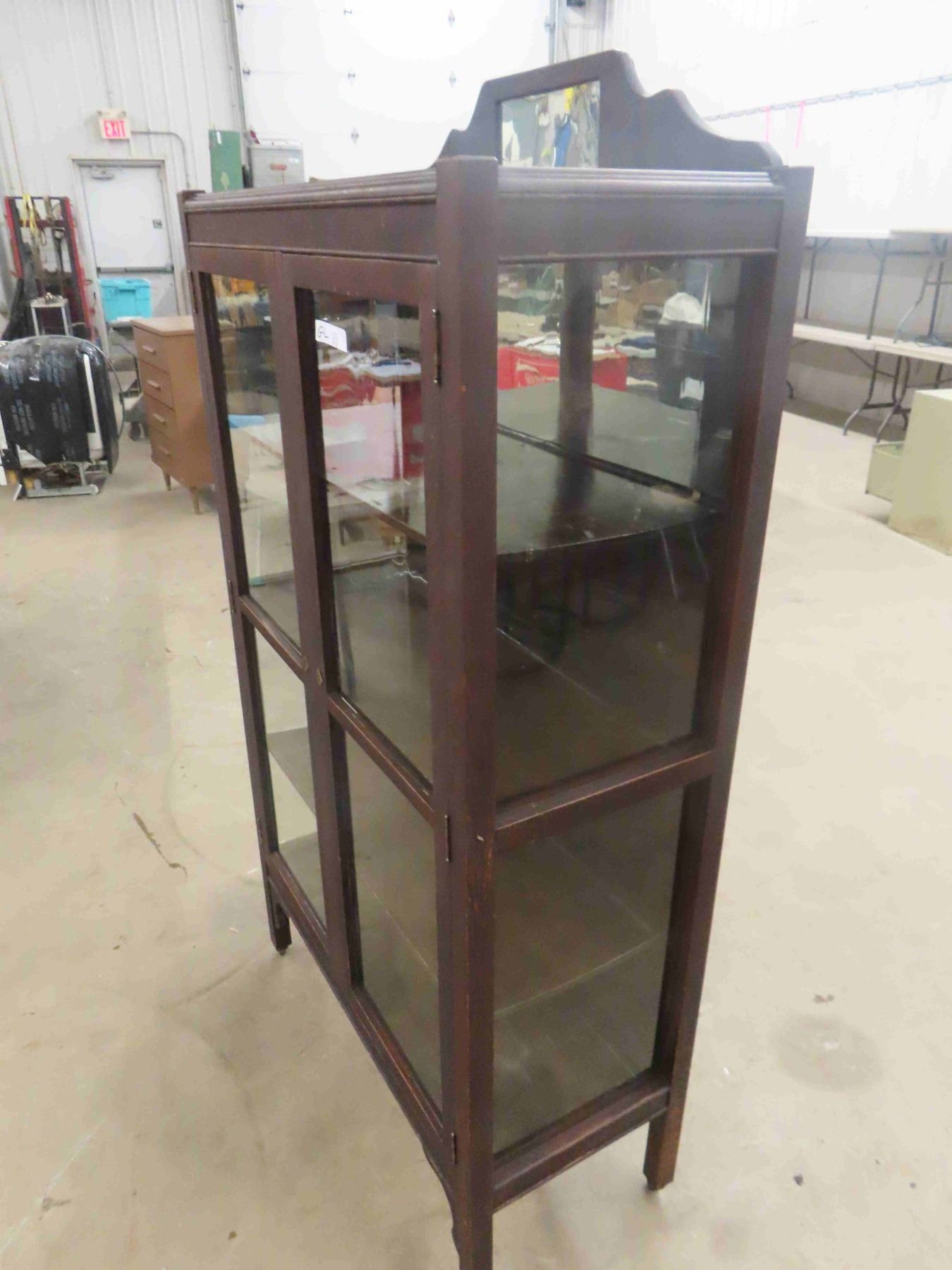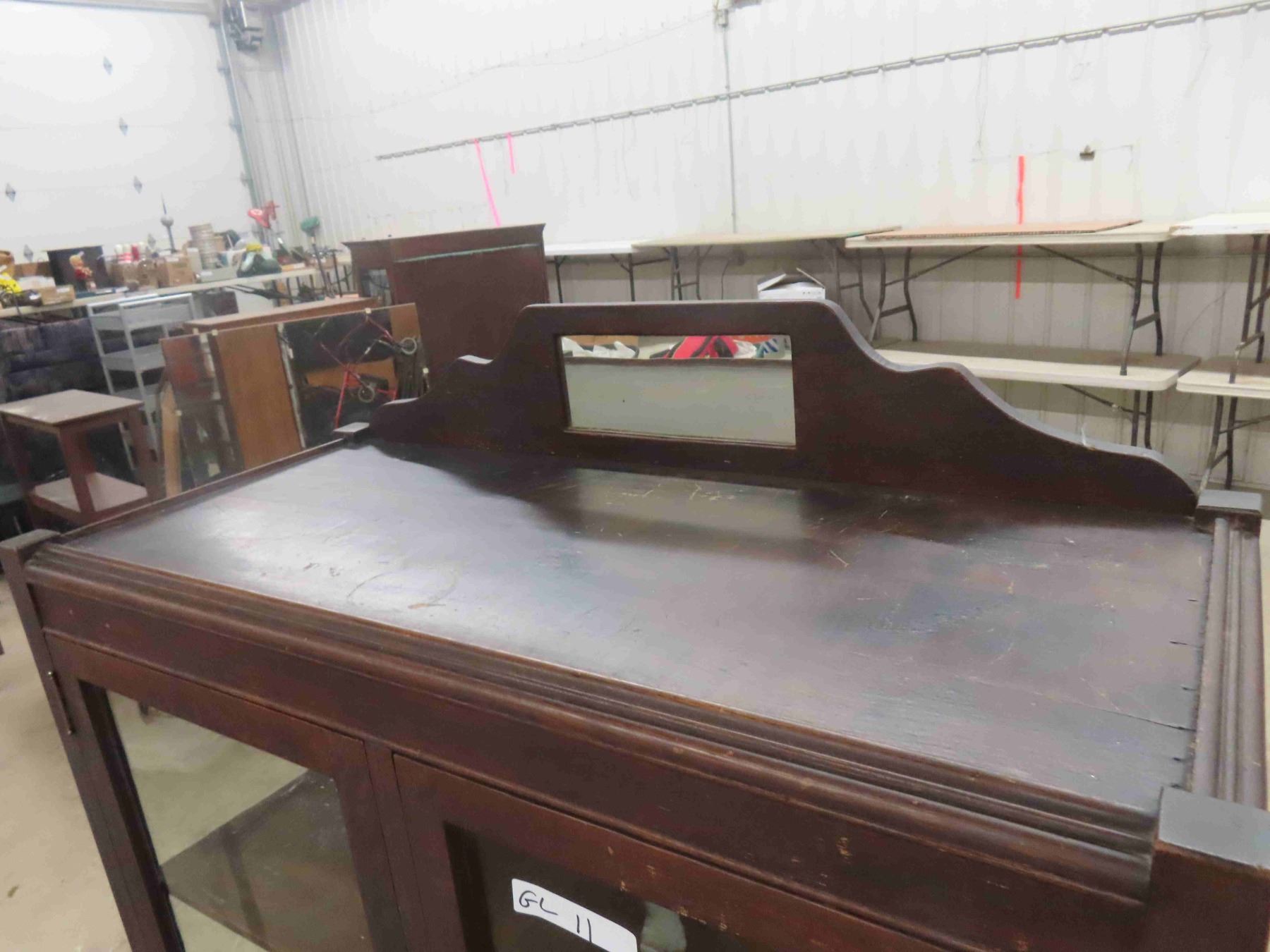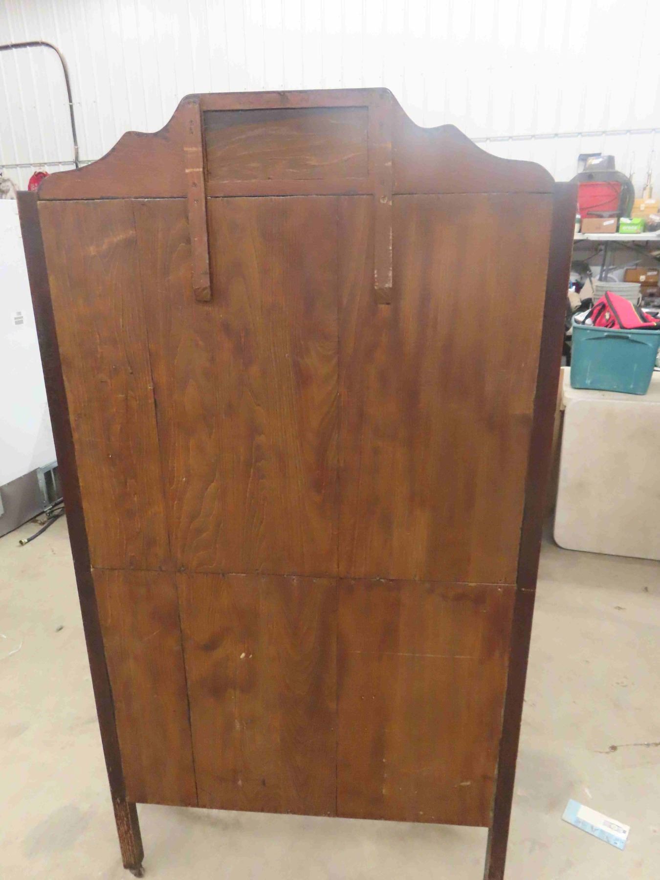 Oak 2 Door China Cabint with Key Side Glass + Mirrored Topper 16" x 36" x 68"