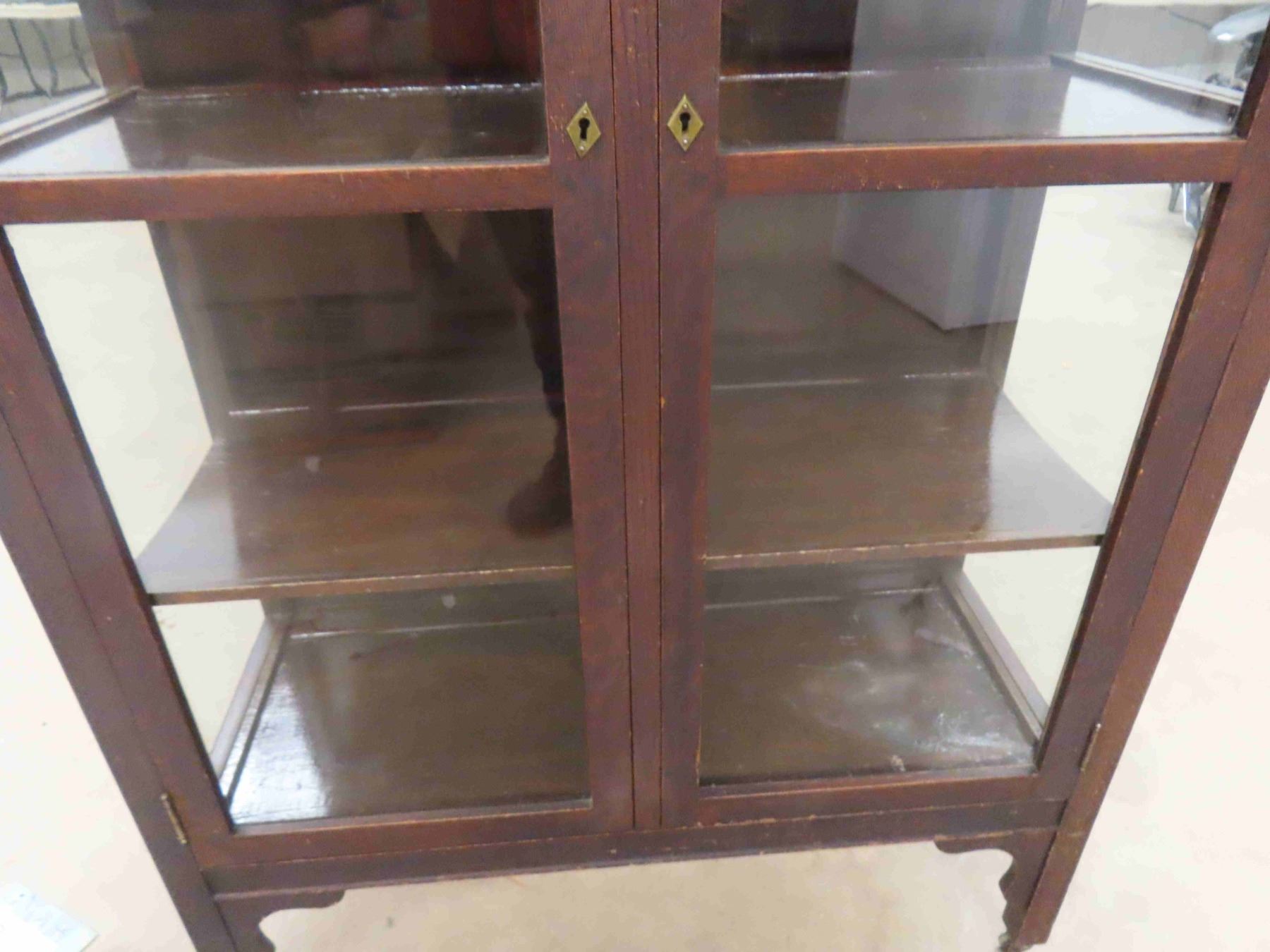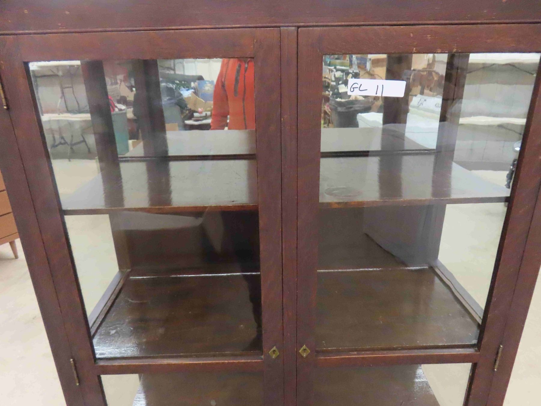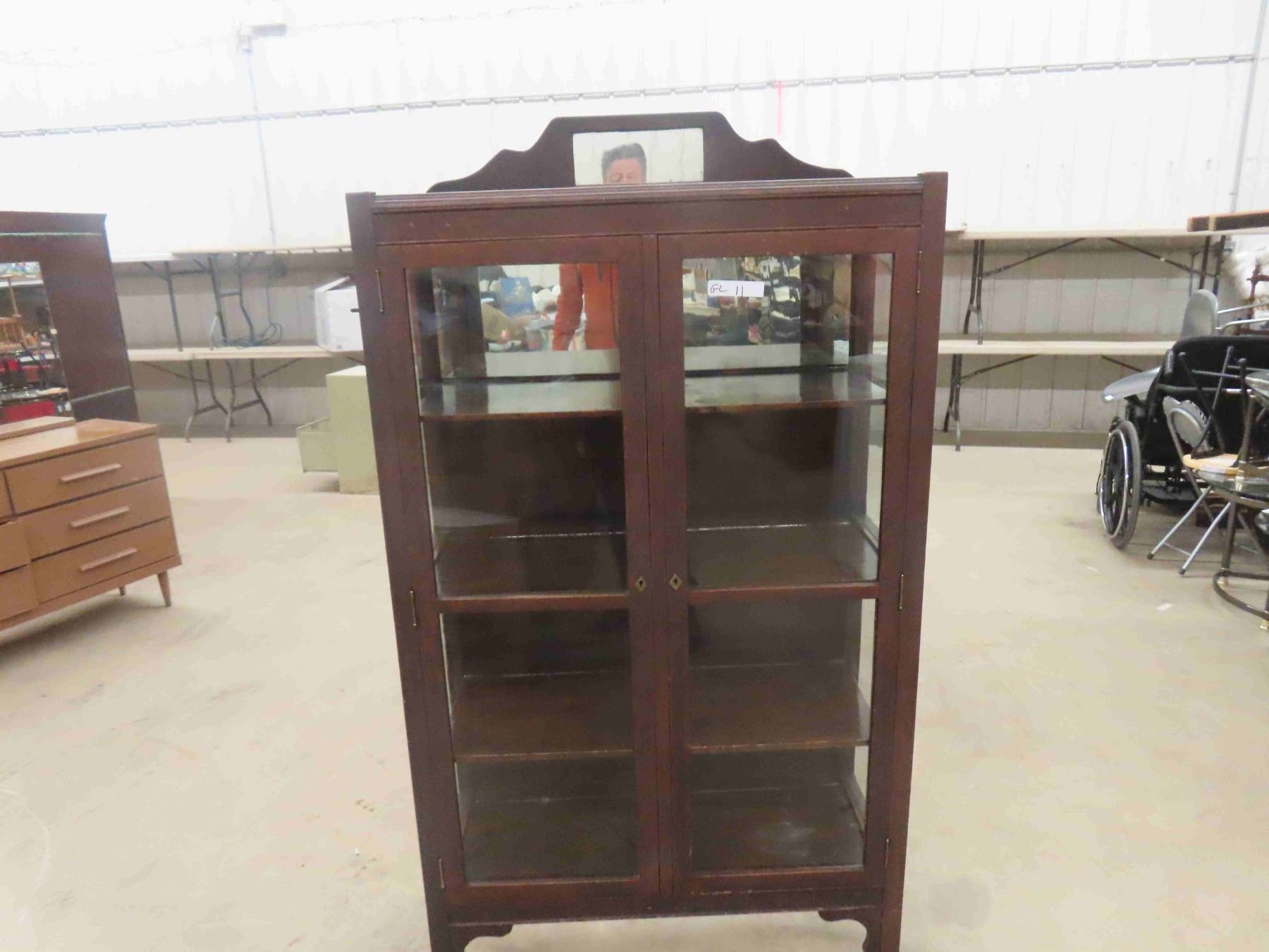 Oak 2 Door China Cabint with Key Side Glass + Mirrored Topper 16" x 36" x 68"