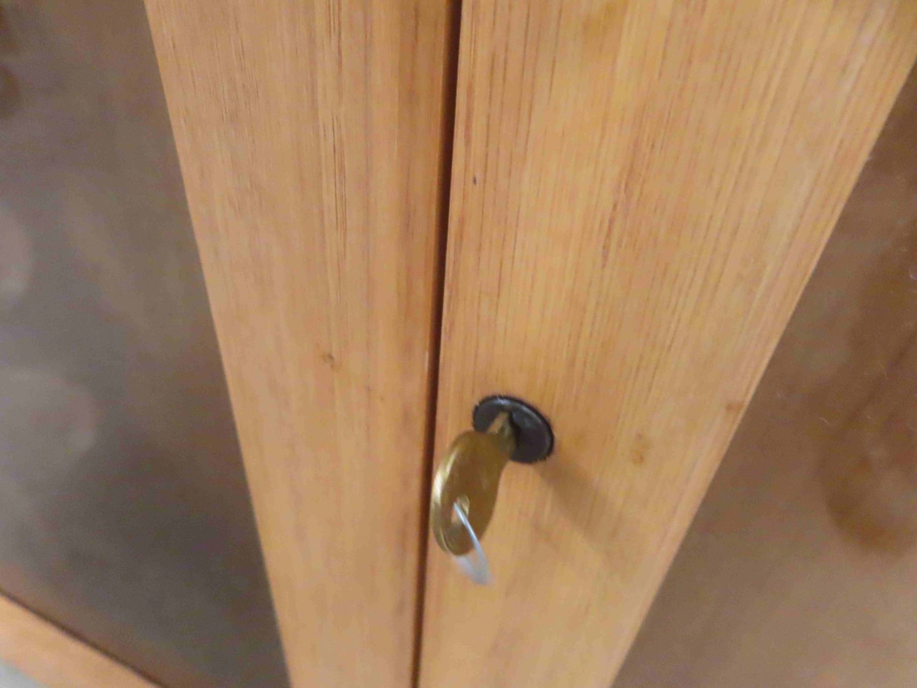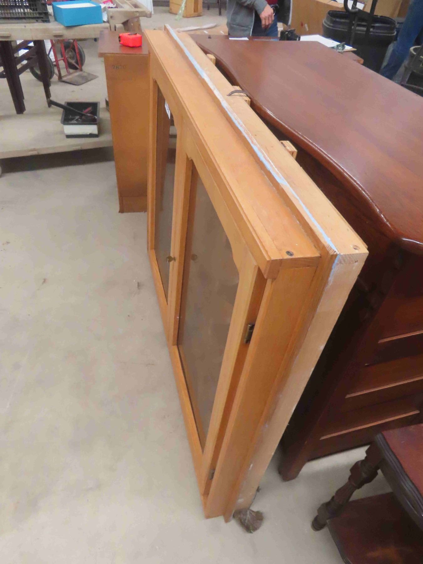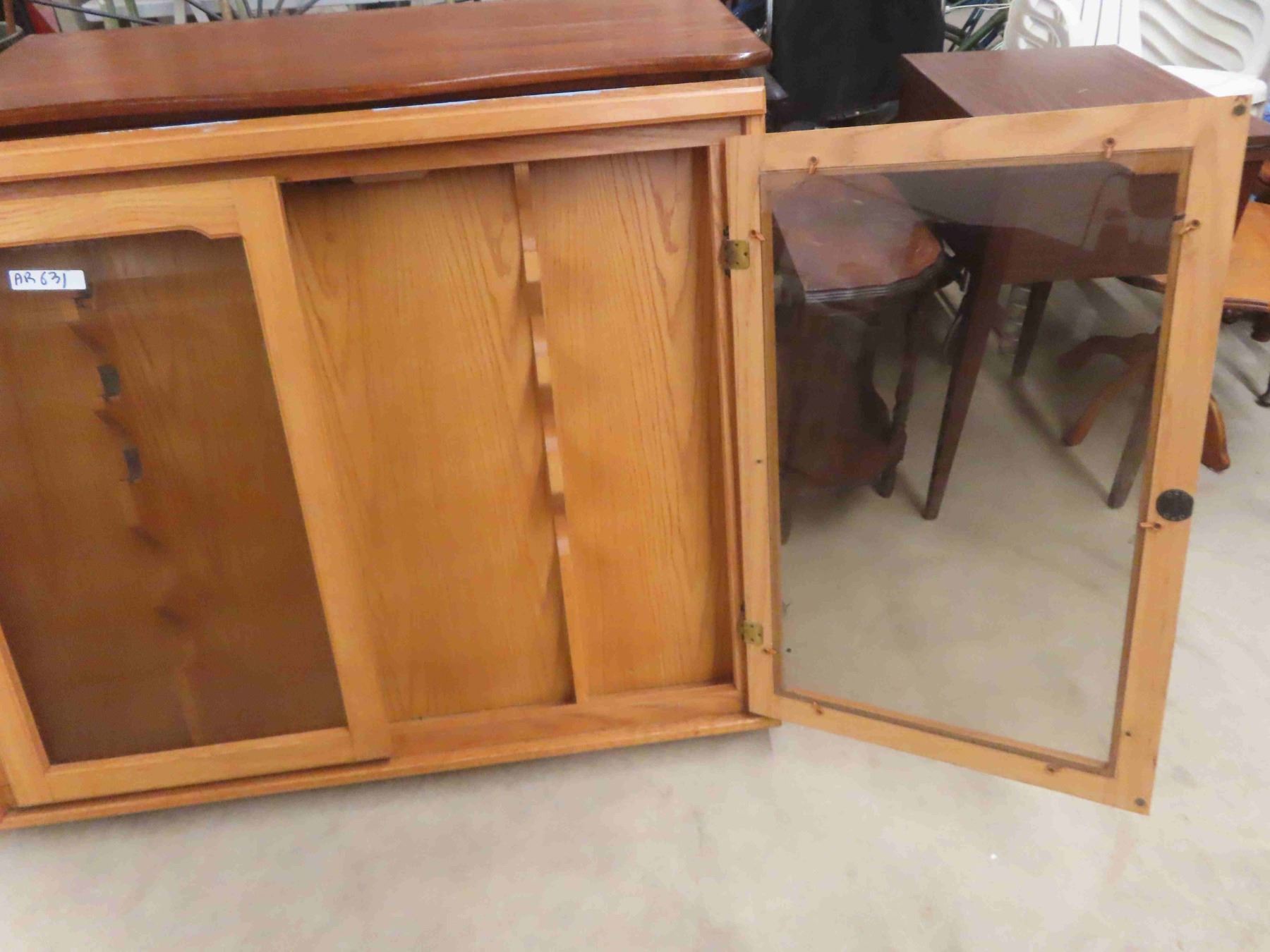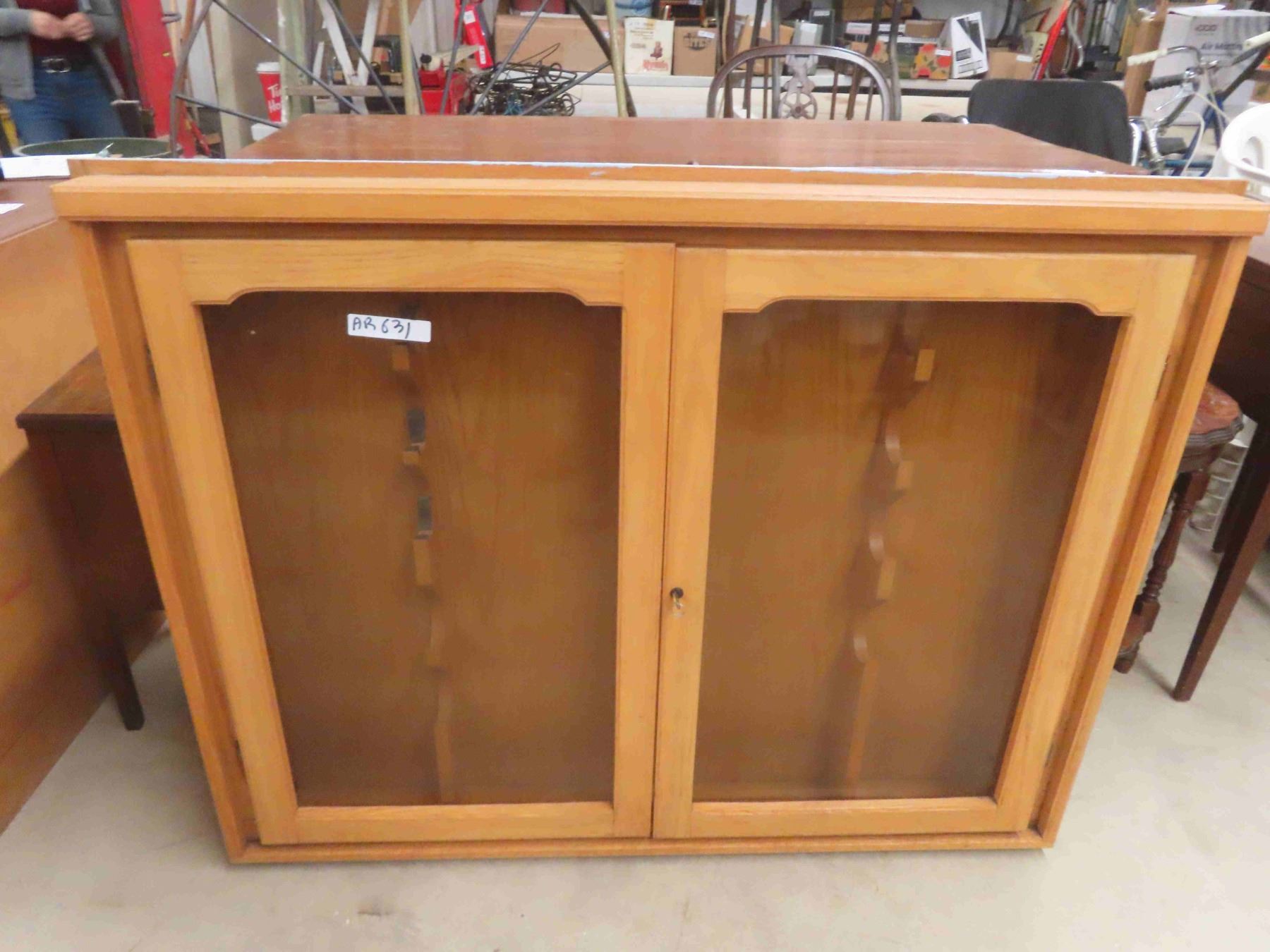 Oak 2 Door Gun Wall Mount Cabinet with 2 Glass Doors, Lock & Key 6" x 39" x 49"