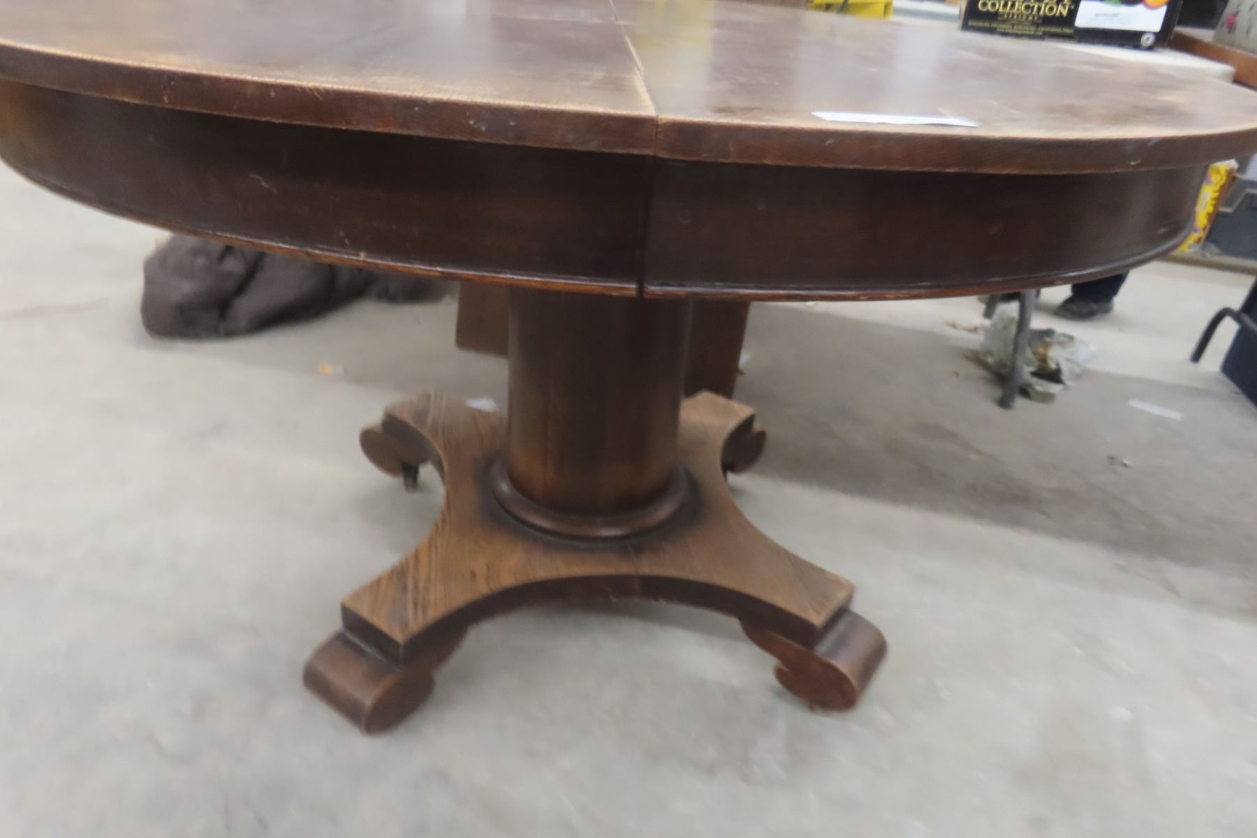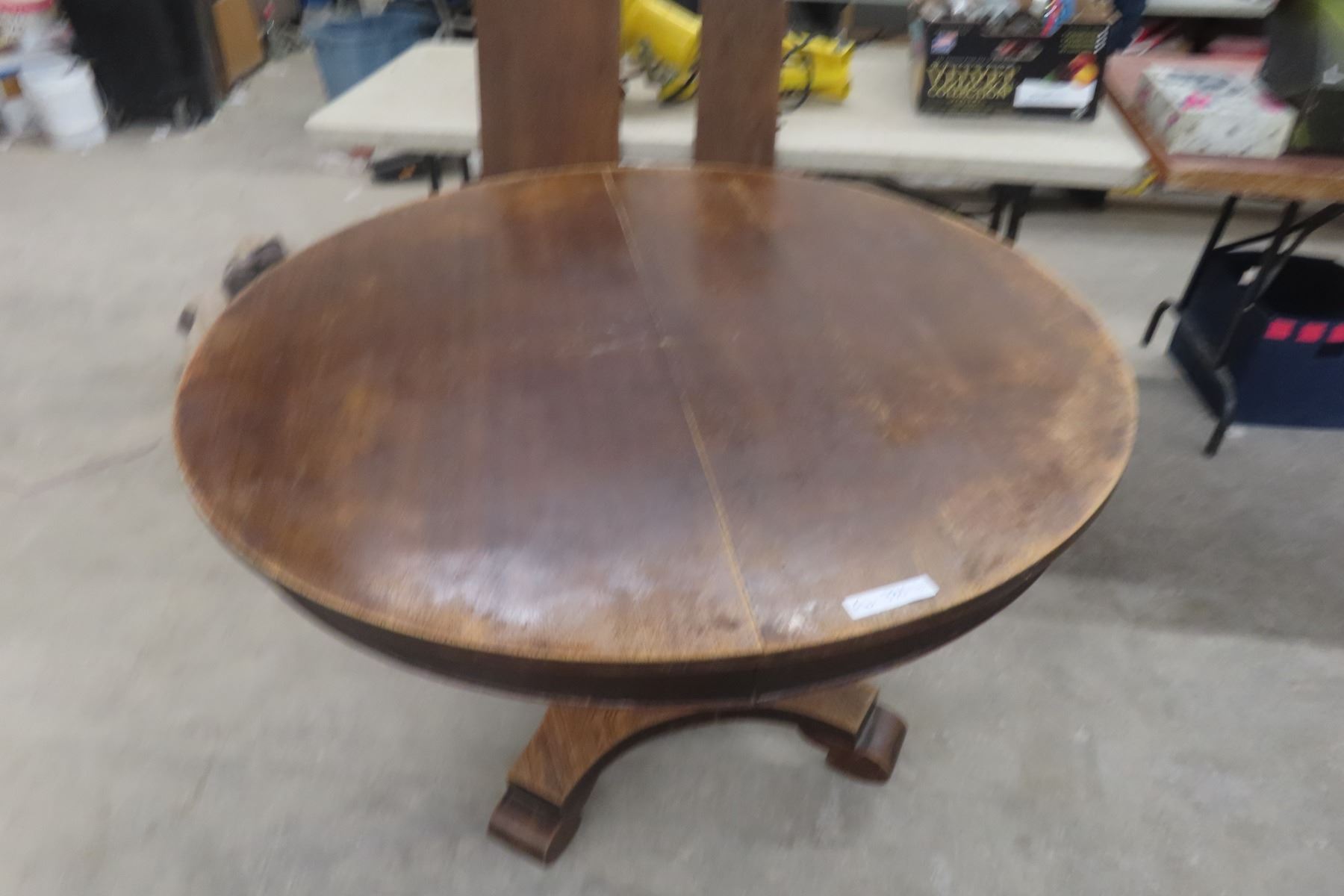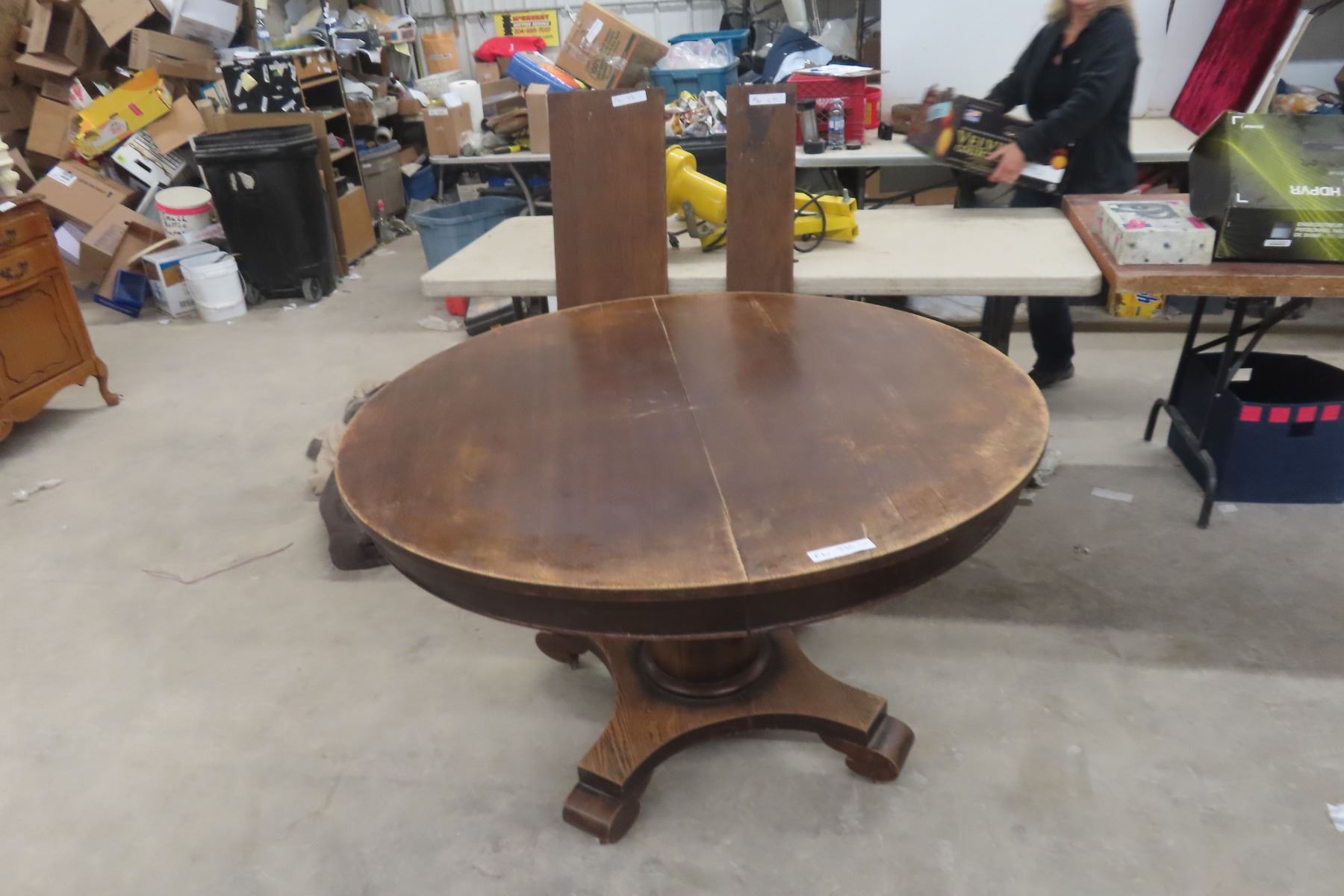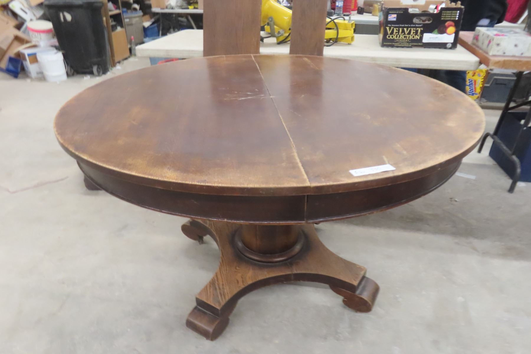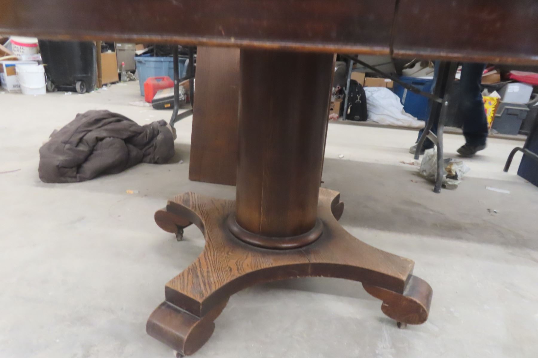 Oak Antique Pedestal Table, 30" High x 49" Plus Two Extra Leafs (7" Diameter and 12" Diameter)