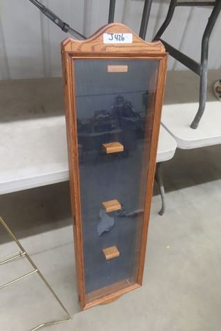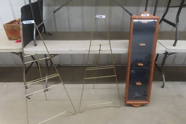 Oak Collector Plate Display Cabinet 2.5"×12.5"×49"  + 2 Brass Easle Stands 20"×46.5"