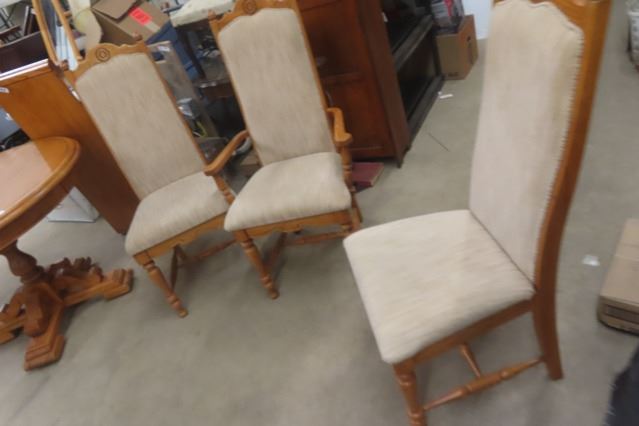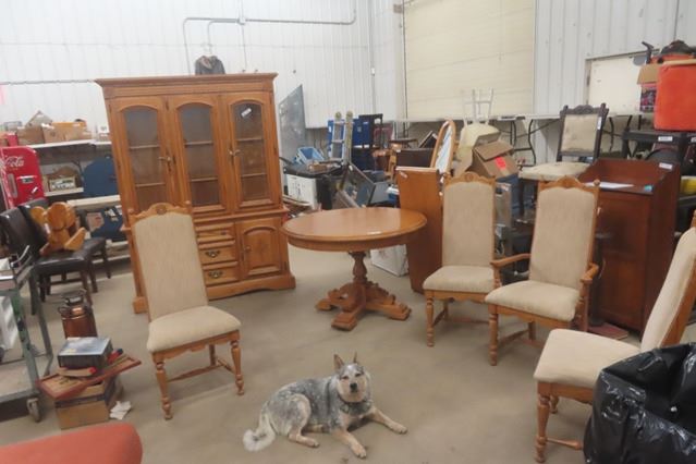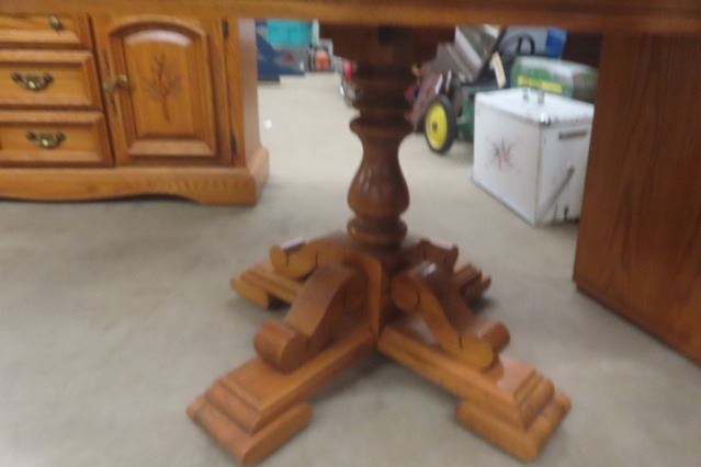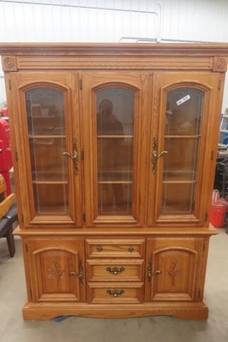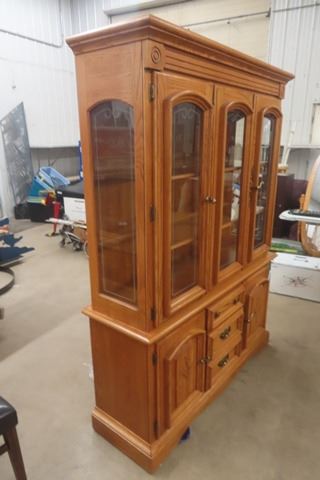 Oak Dining Room Suite : China Cabinet 18"×58"×79", Table 30"×44" plus 18" Leaf & 4 Chairs