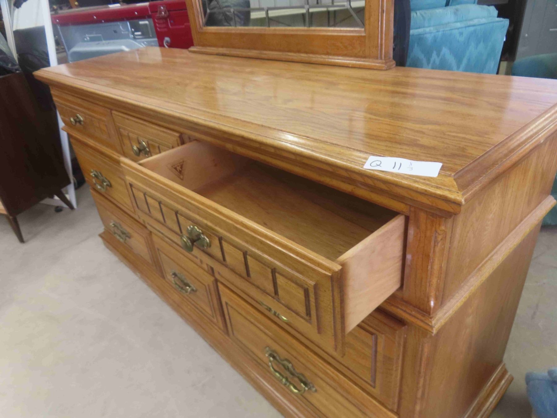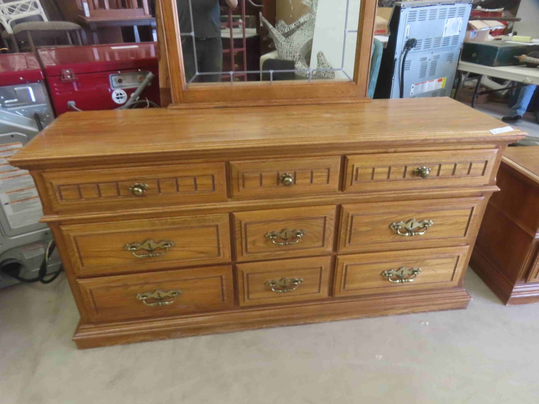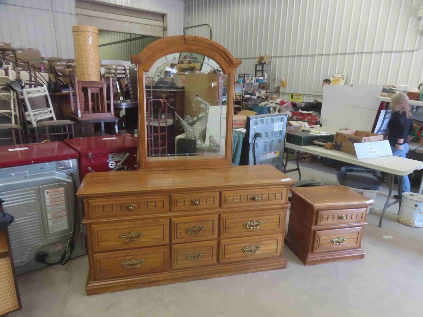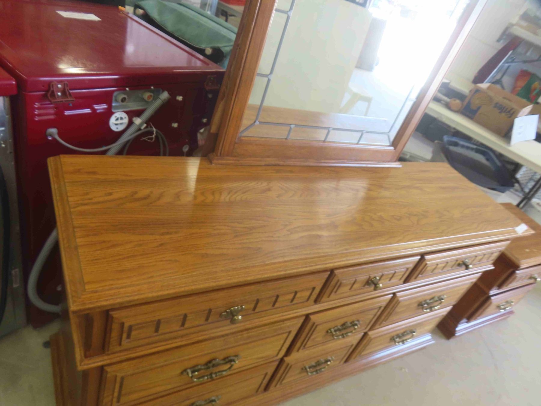 Oak Dresser 32'' x 19'' x 60'' , Mirror 33'' x 43'' & Night Stand 24'' x 24'' x 17''