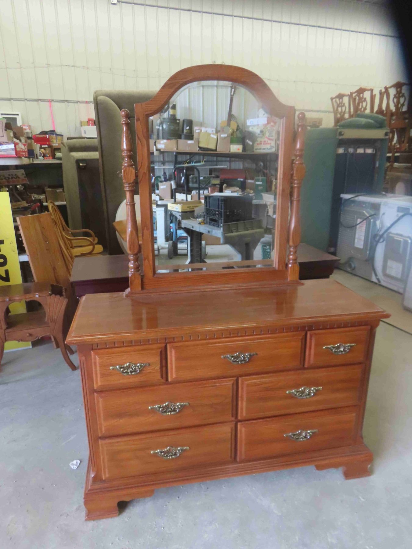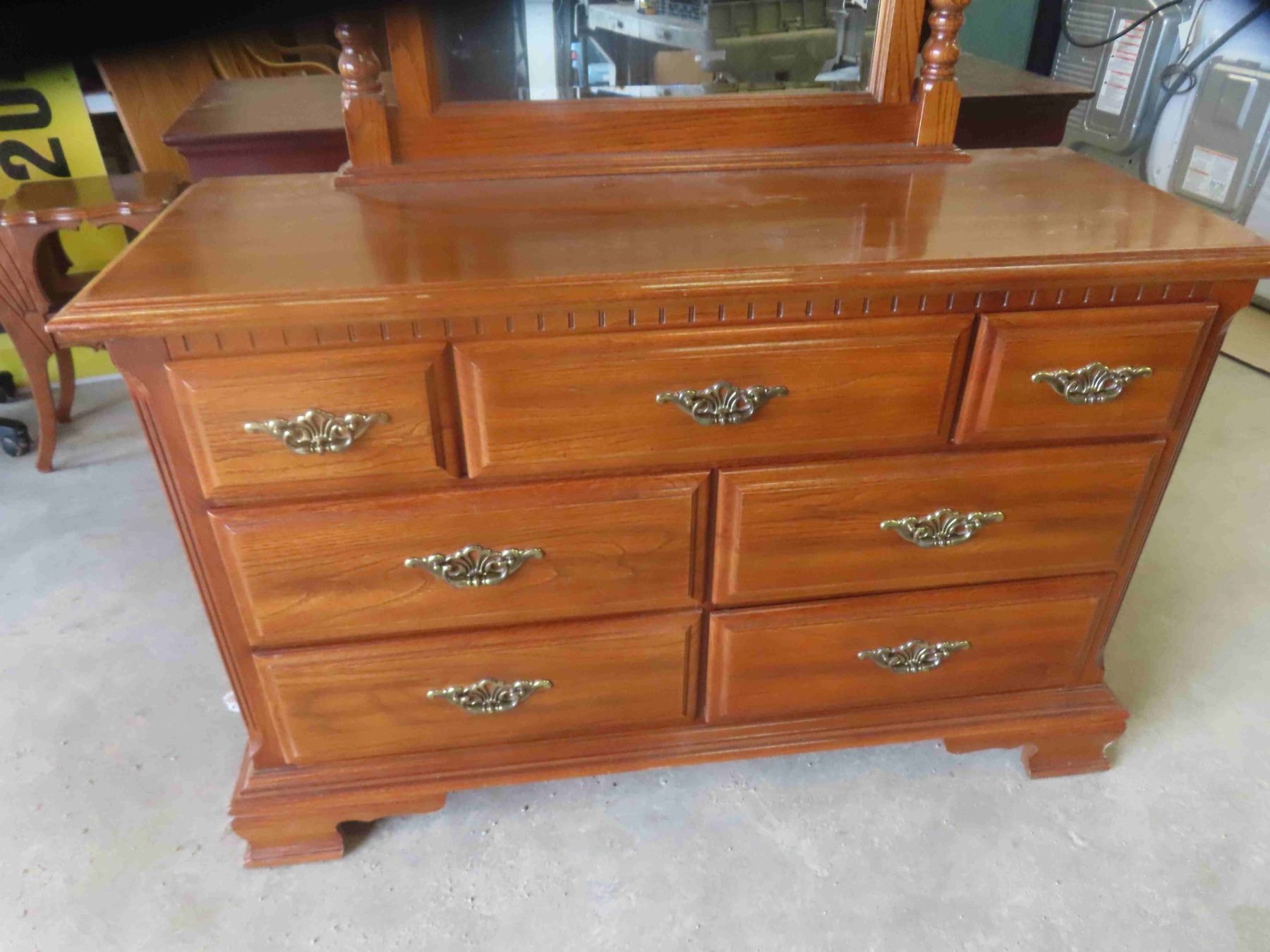 Oak Dresser 33'' x 51'' x 19'' with Mirror 32'' x 39'' & 1 Night Stand 24'' x 21'' x 17''