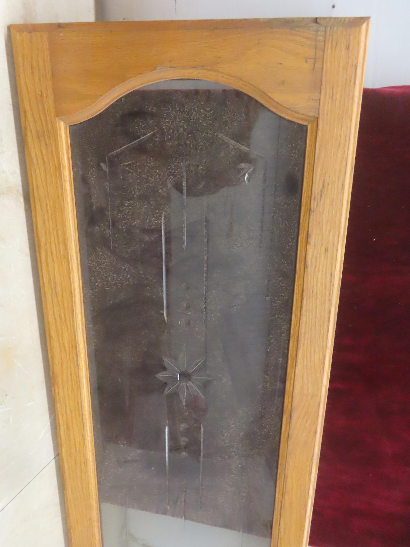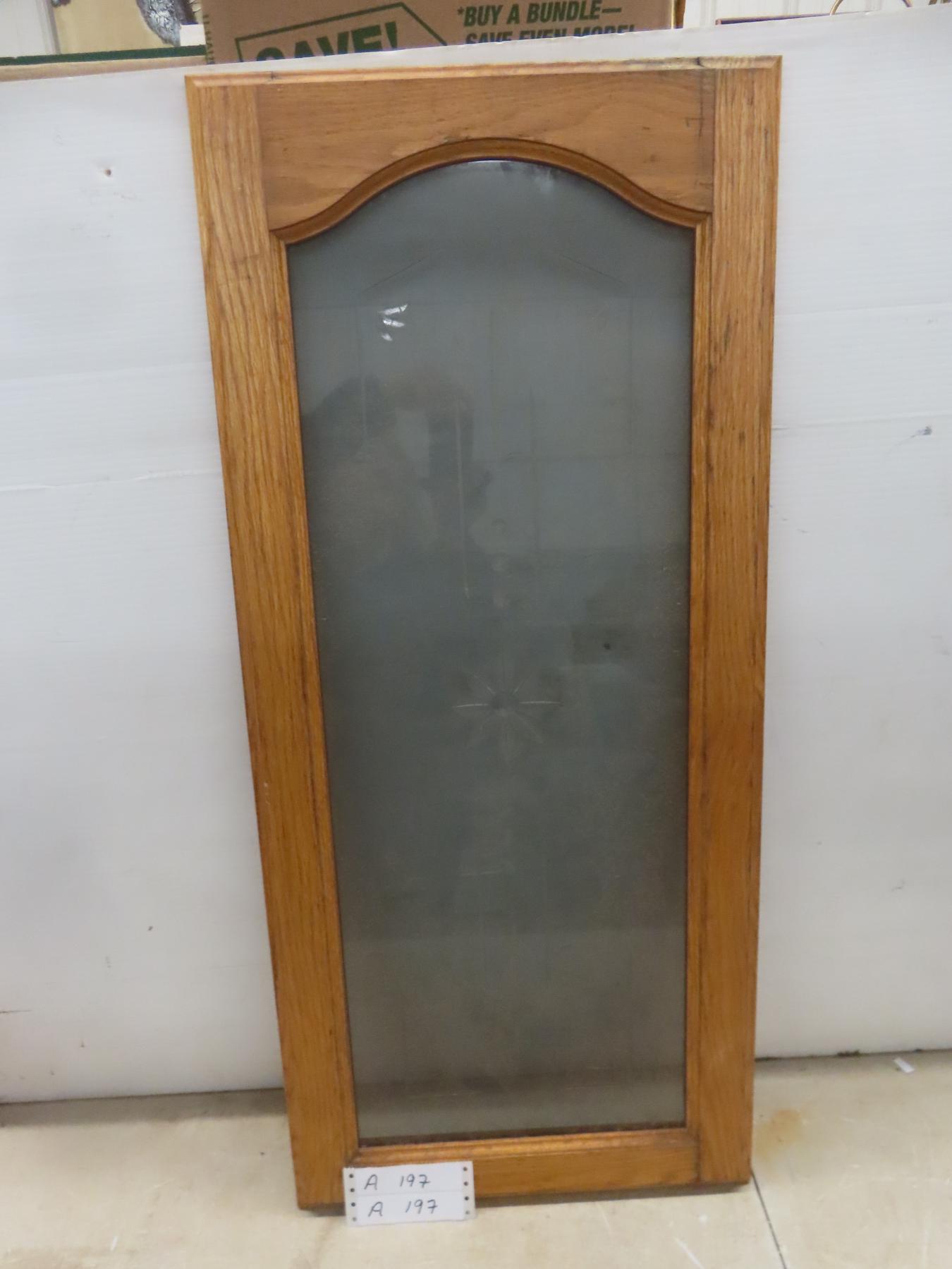 Oak-Framed Cabinet Door with Etched Glass Insert, 34 1/2" x 15 1/2"
