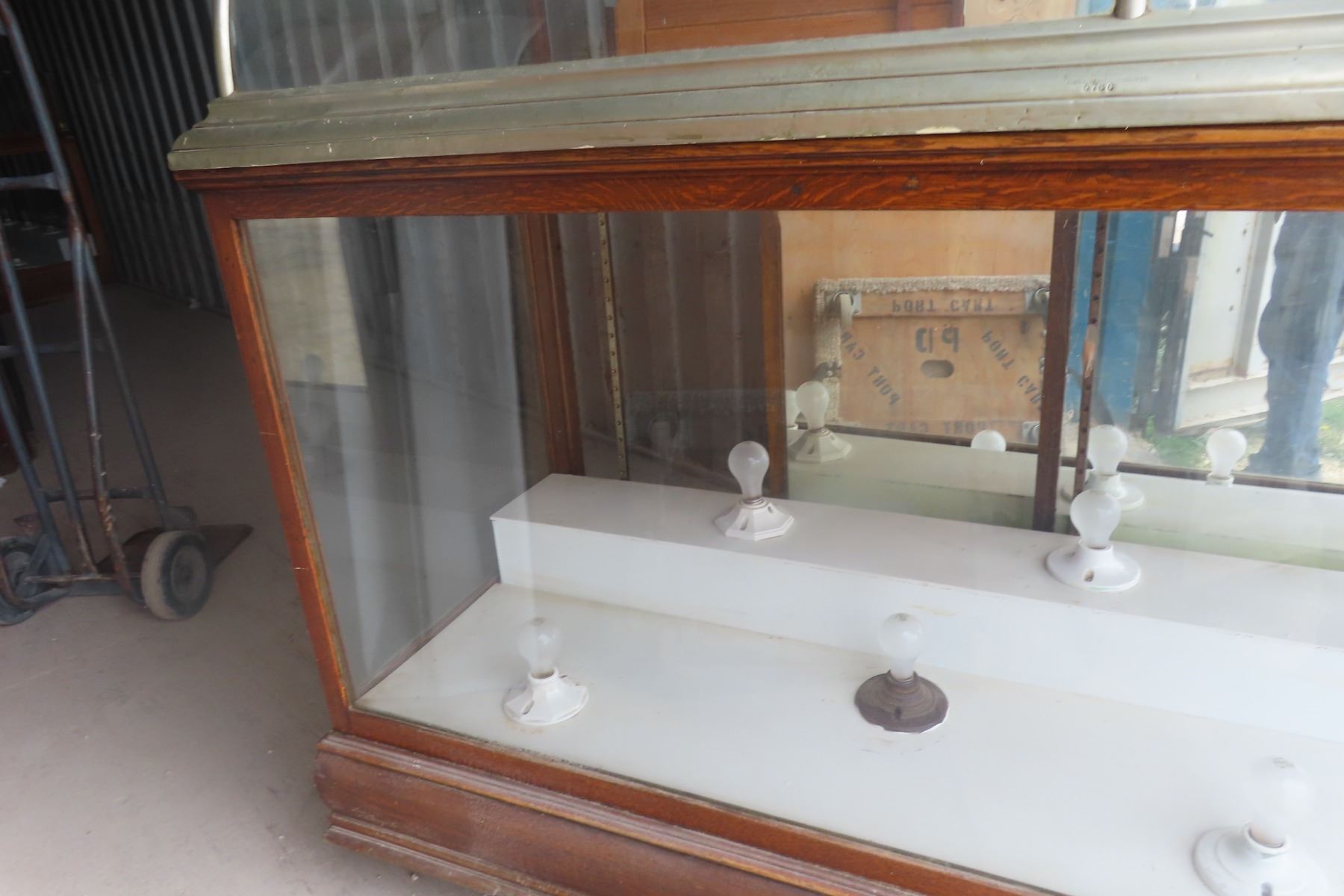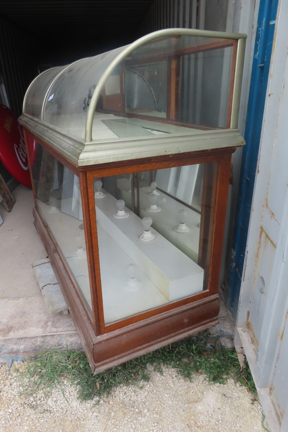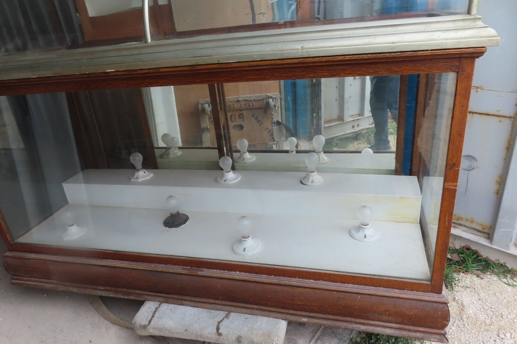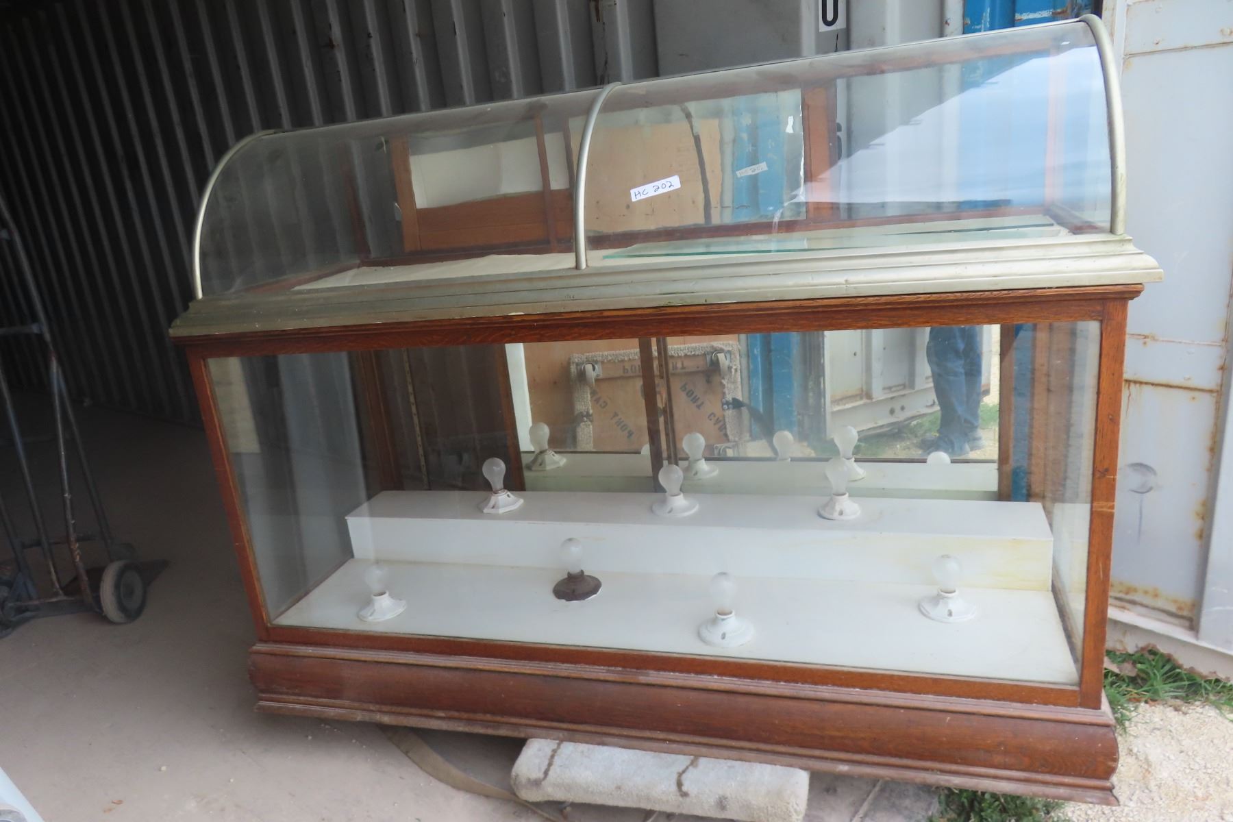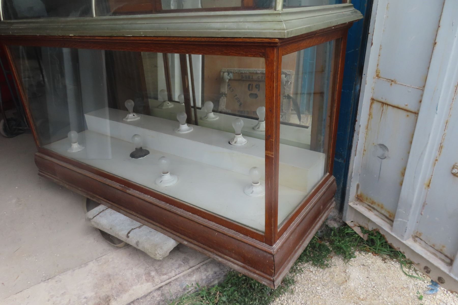 Oak Framed Display Store Case 71"x27"x52" Set up for Displaying Gas Pump Globes