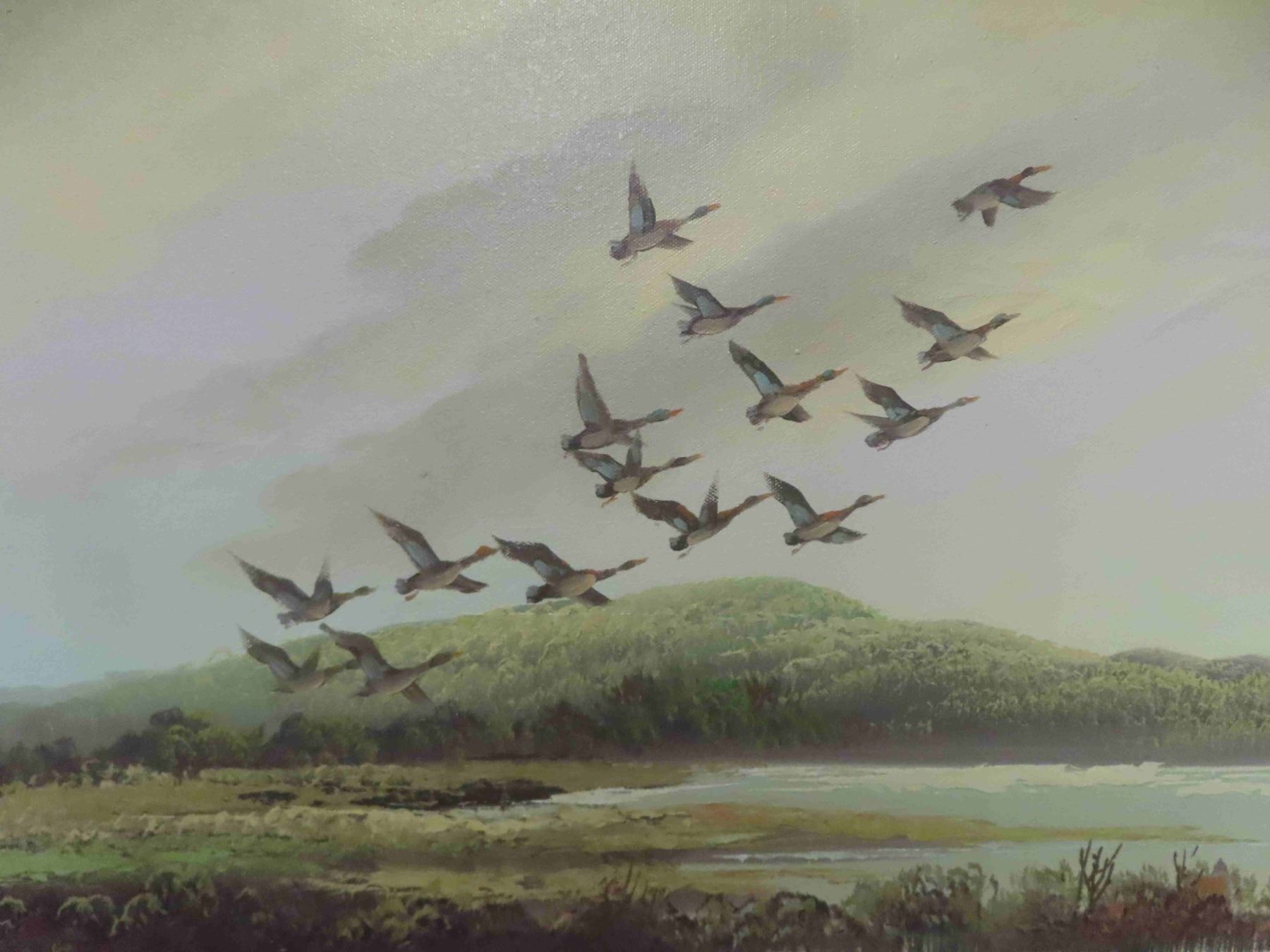 Oak Framed Oil Painting 30" x 54" - damage shown in last picture