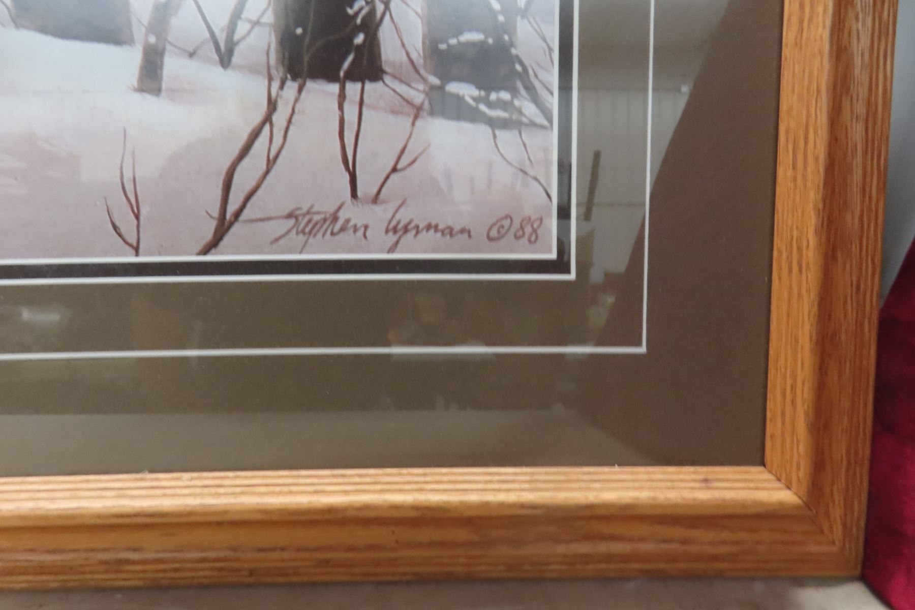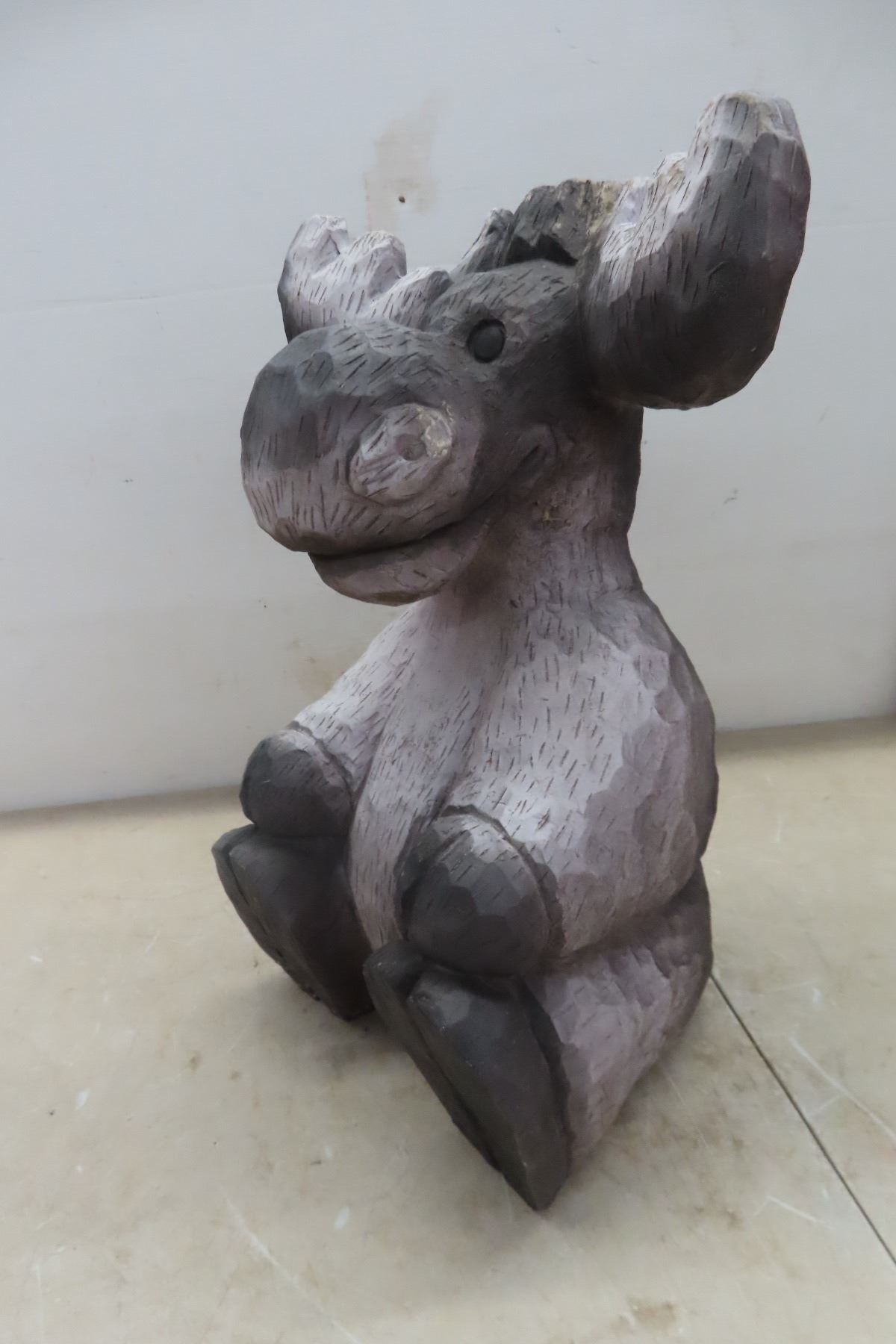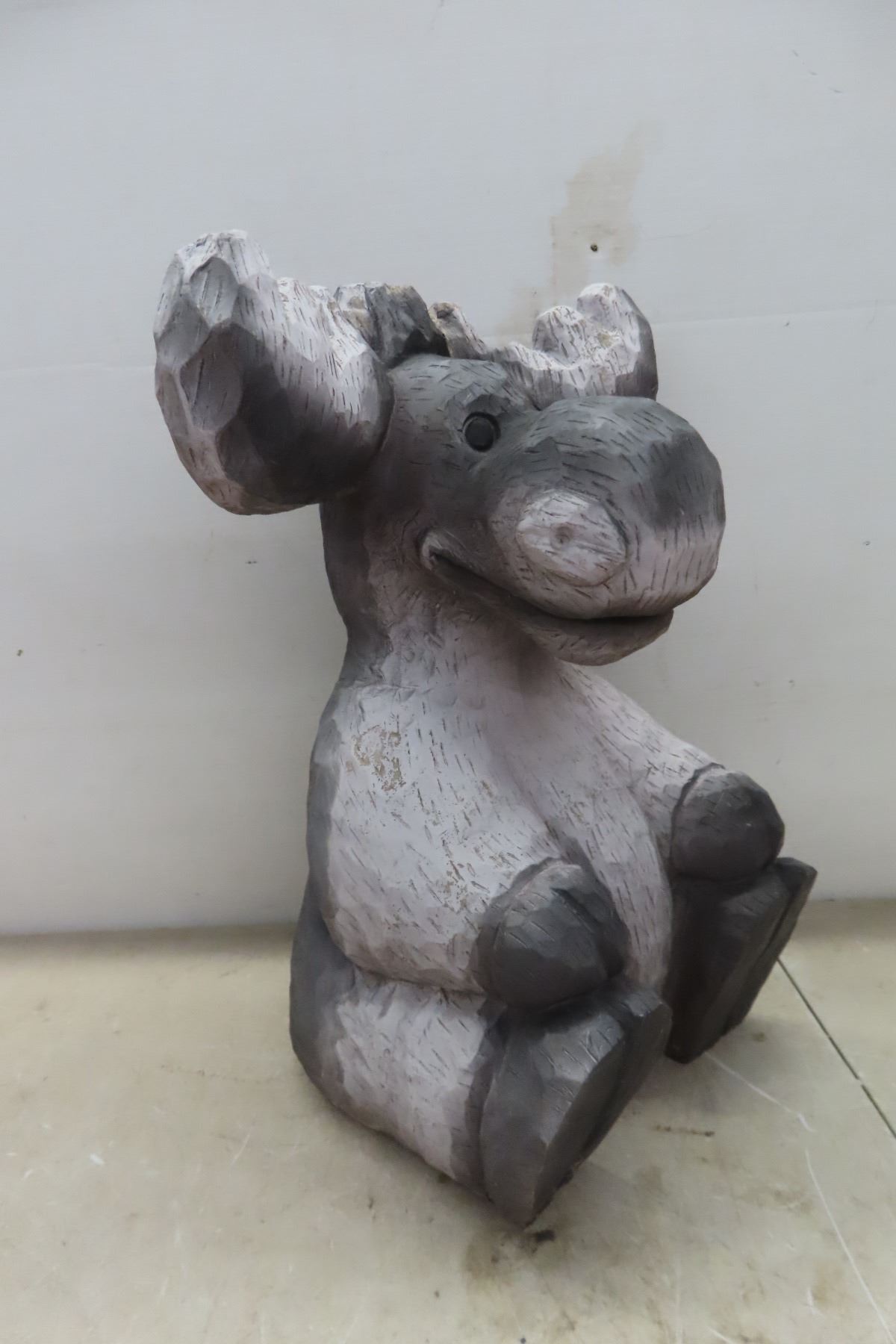 Oak Framed Picture 31 1/2x41 and Wood Carved Moose 16'' Tall Great for The Cabin