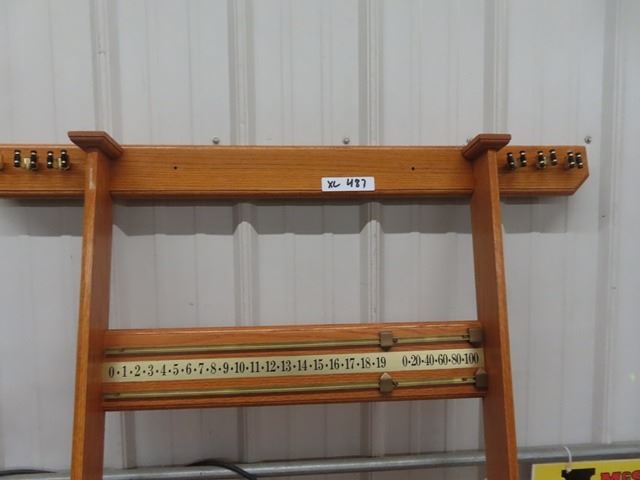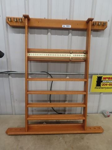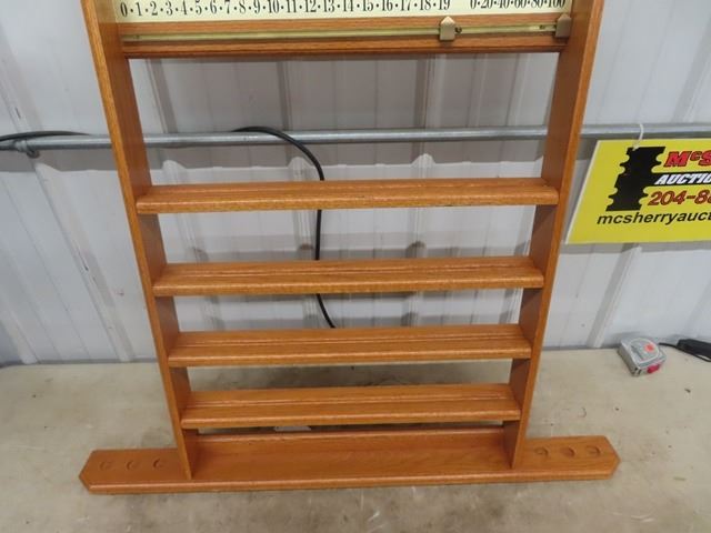 Oak Pool Cue Rack/Ball Rack/Scoreboard Combo