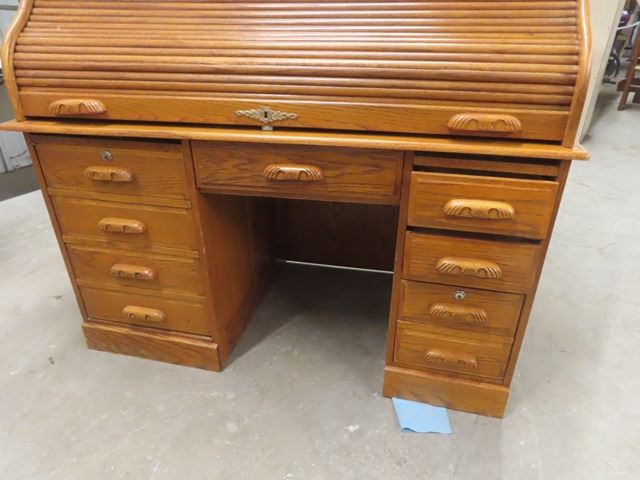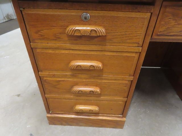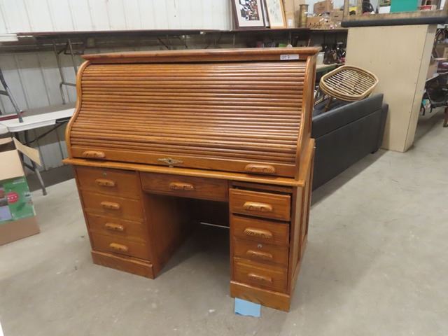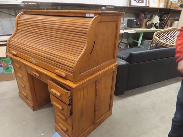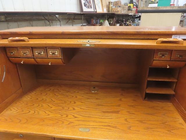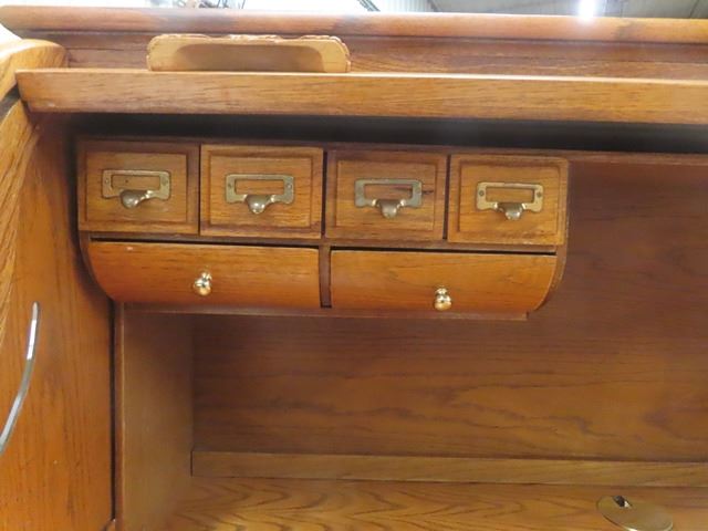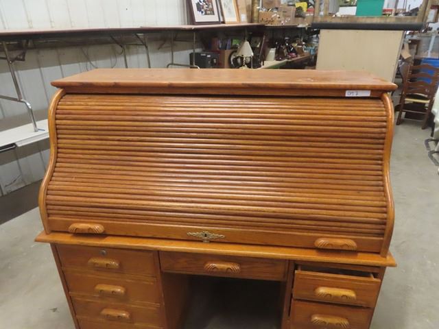 Oak 'S' Curve Roll Top Desk with Keys 29"x52"x54"