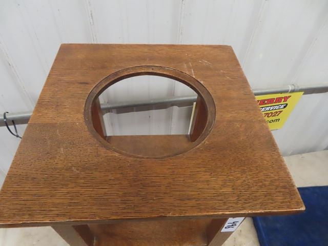 Oak Stand with Fitted Hole on Top for ?Basin? but probably ashtray - leaning towards humidore