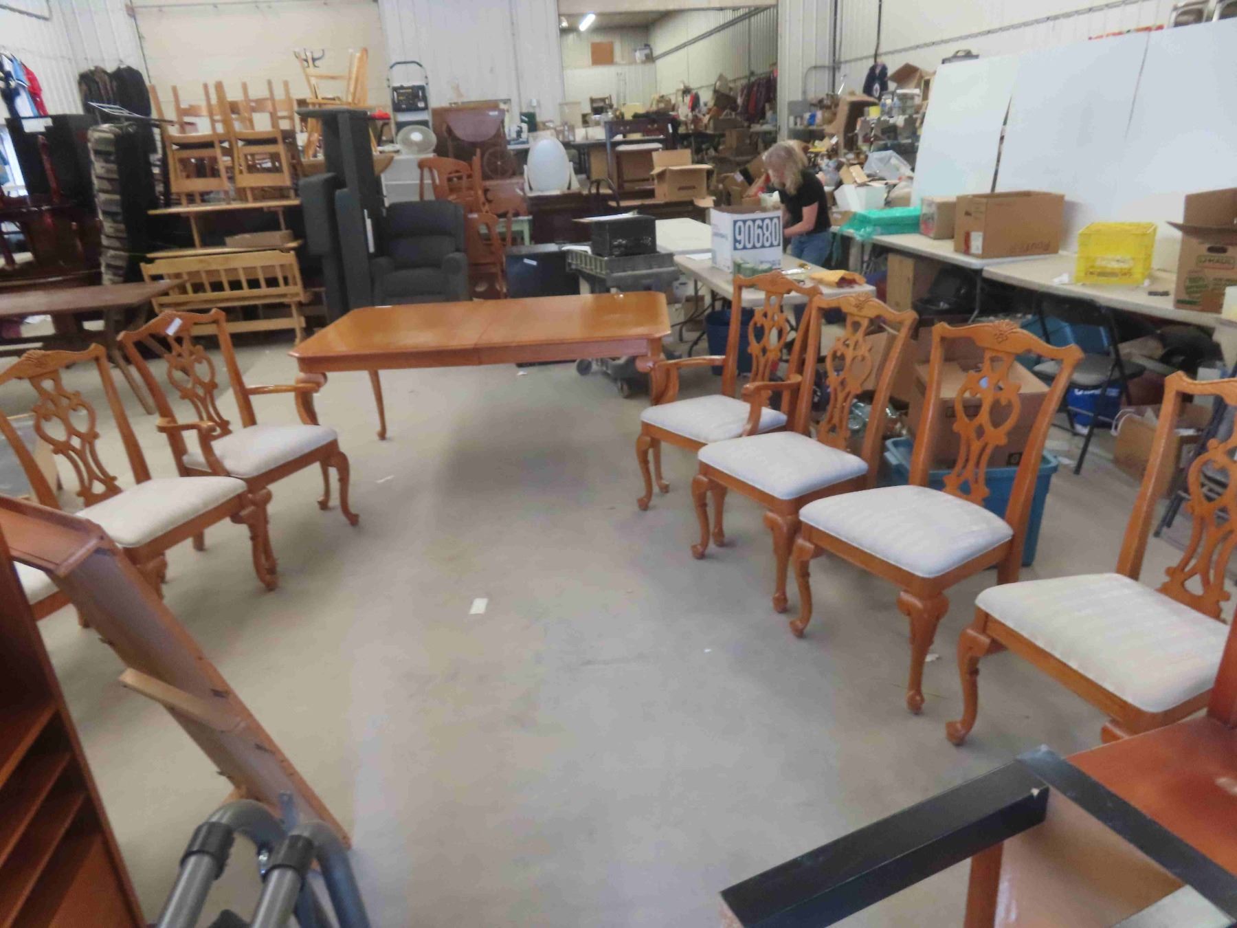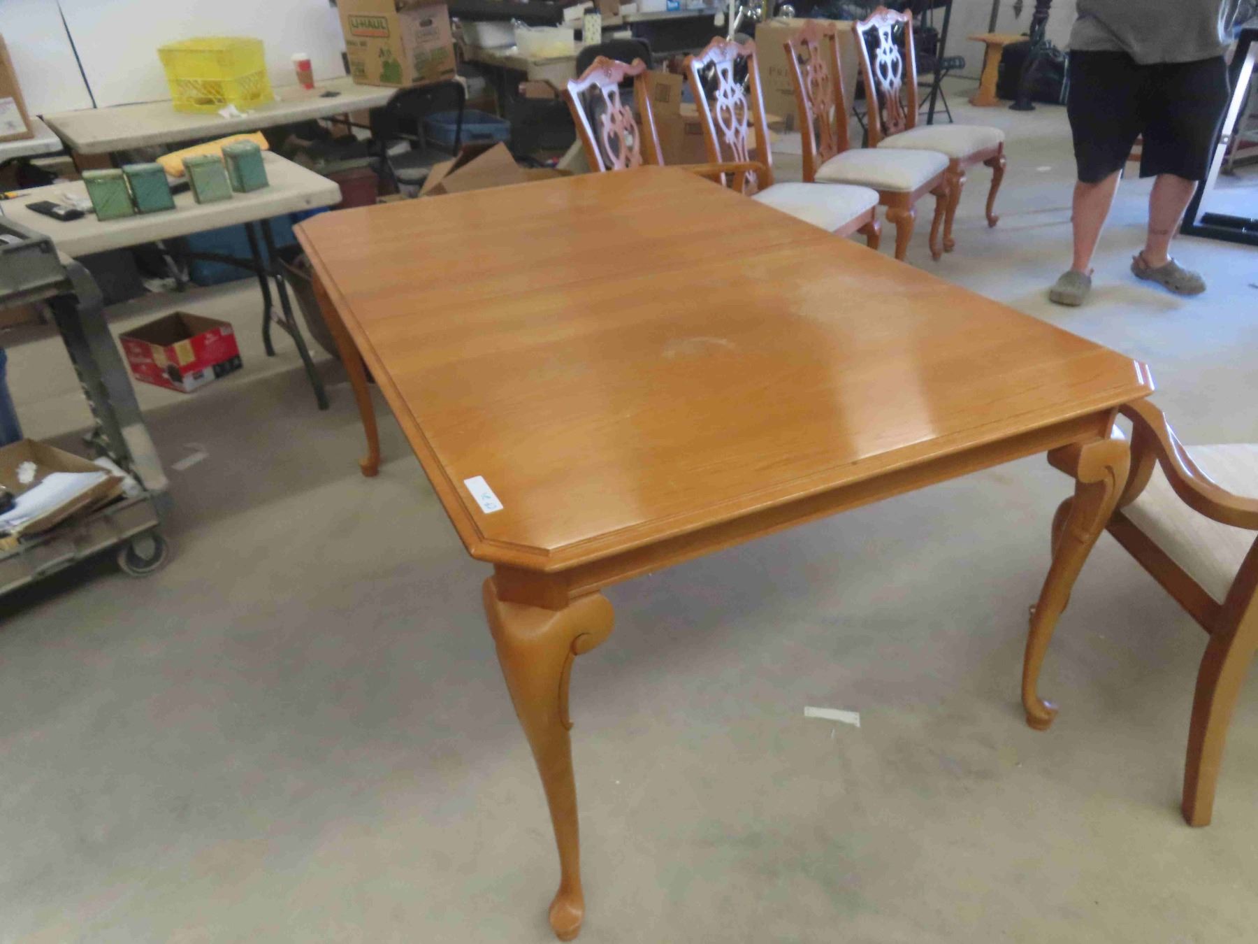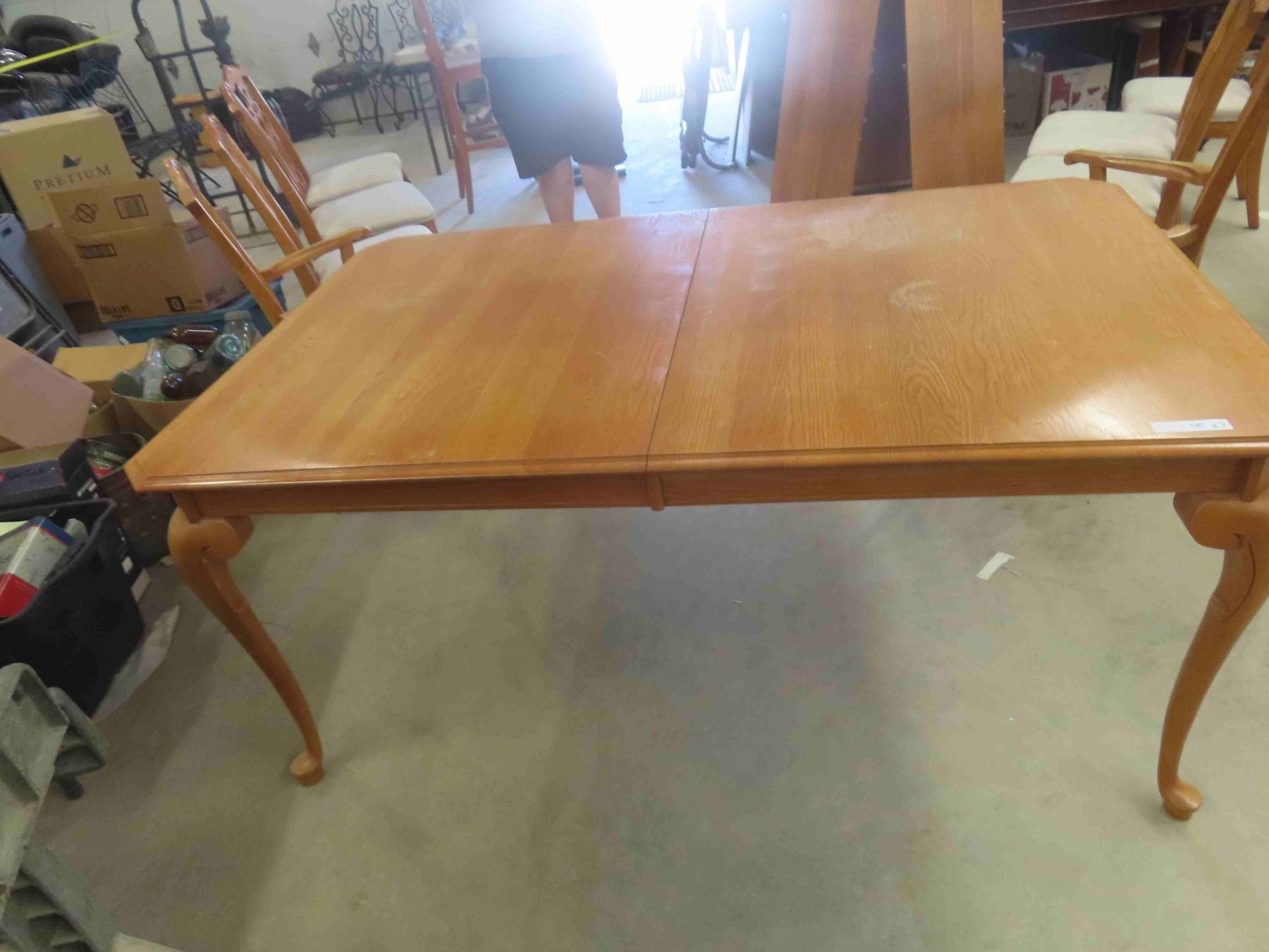 Oak Table 30'' x 67'' x 44'', (2) 15 1/2'' Leaves & 8 Chairs -Solid Set, Has Water Damage in One Spot See Last Photo