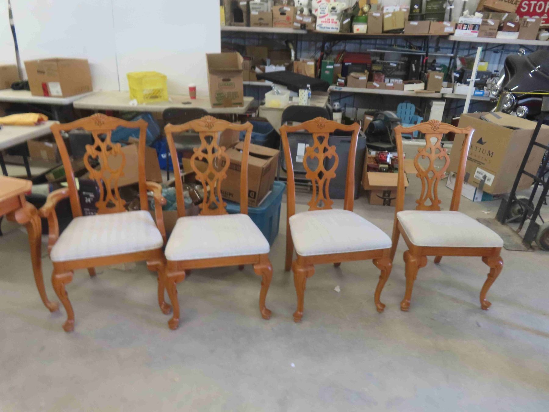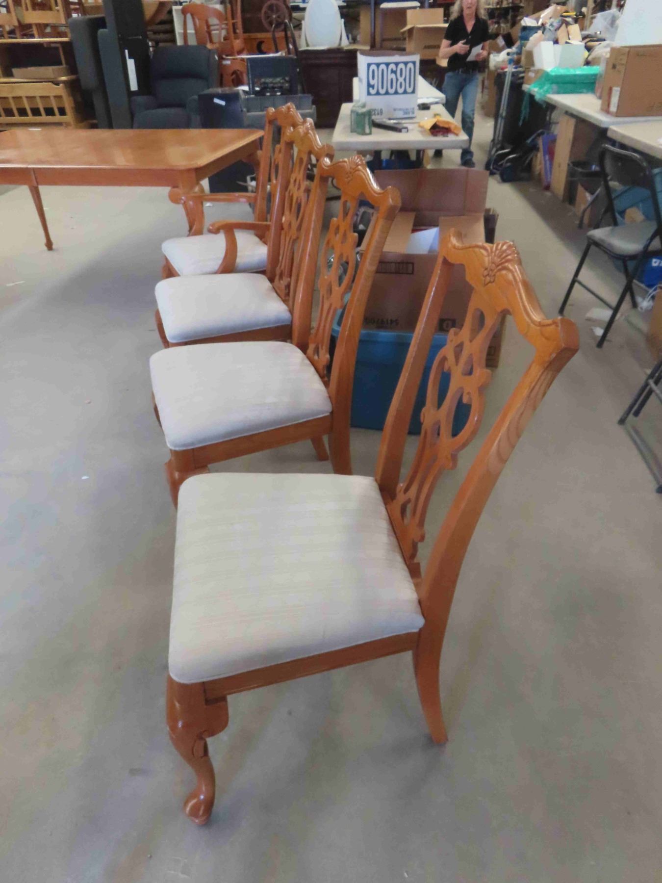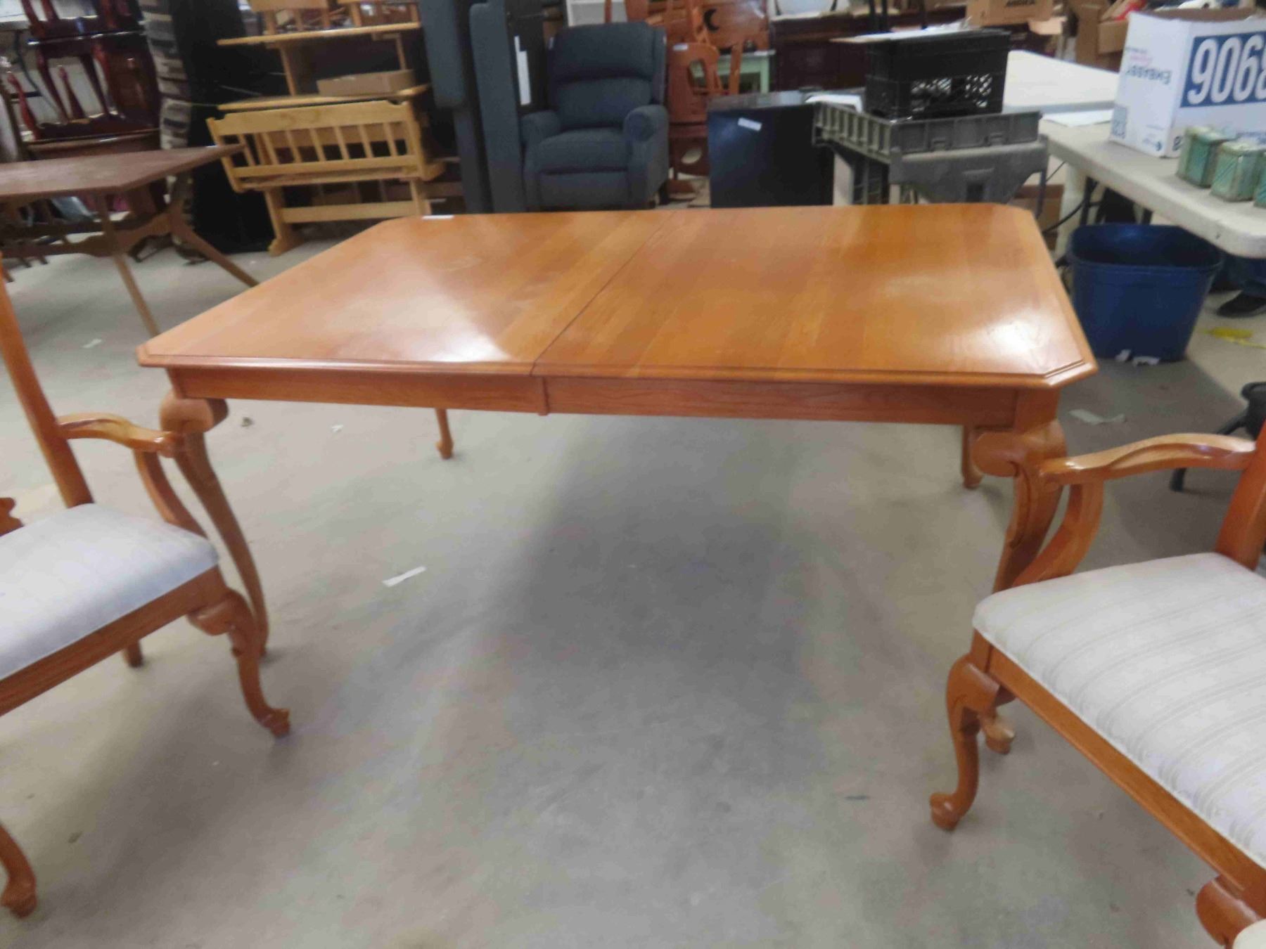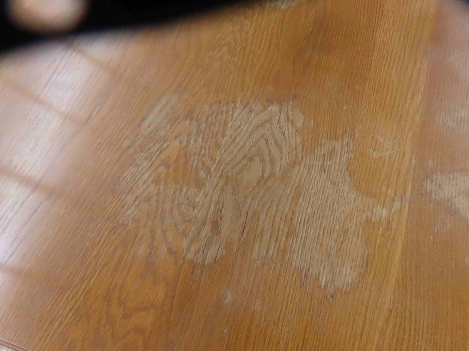 Oak Table 30'' x 67'' x 44'', (2) 15 1/2'' Leaves & 8 Chairs -Solid Set, Has Water Damage in One Spot See Last Photo