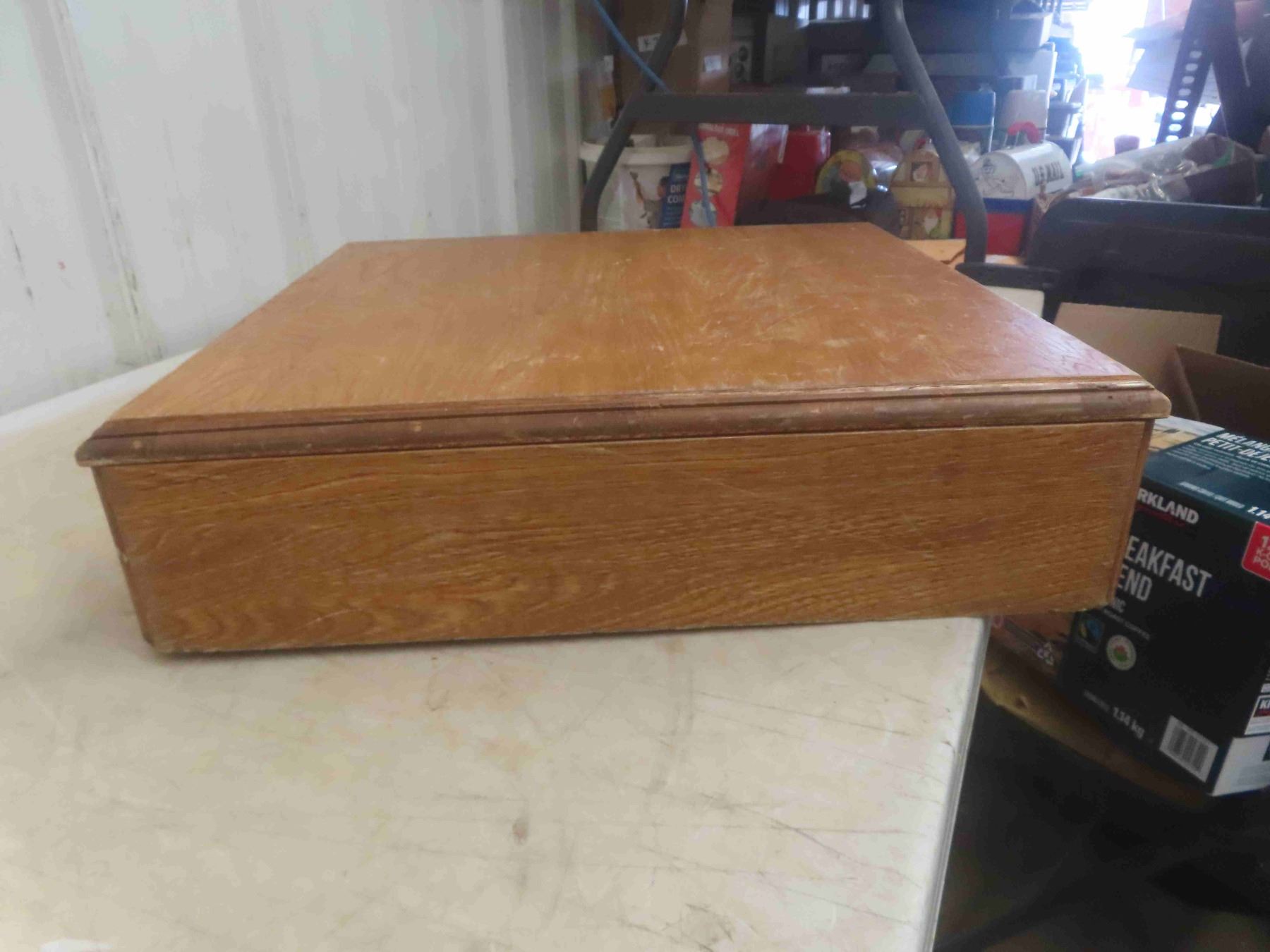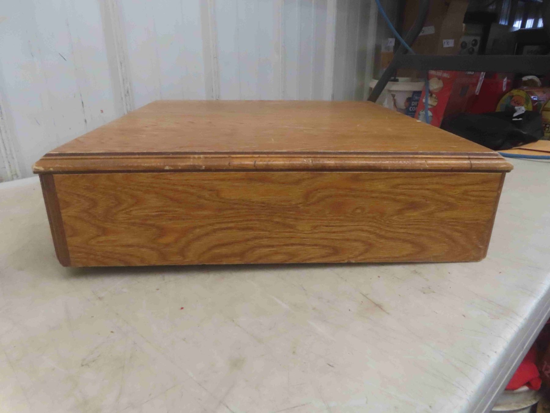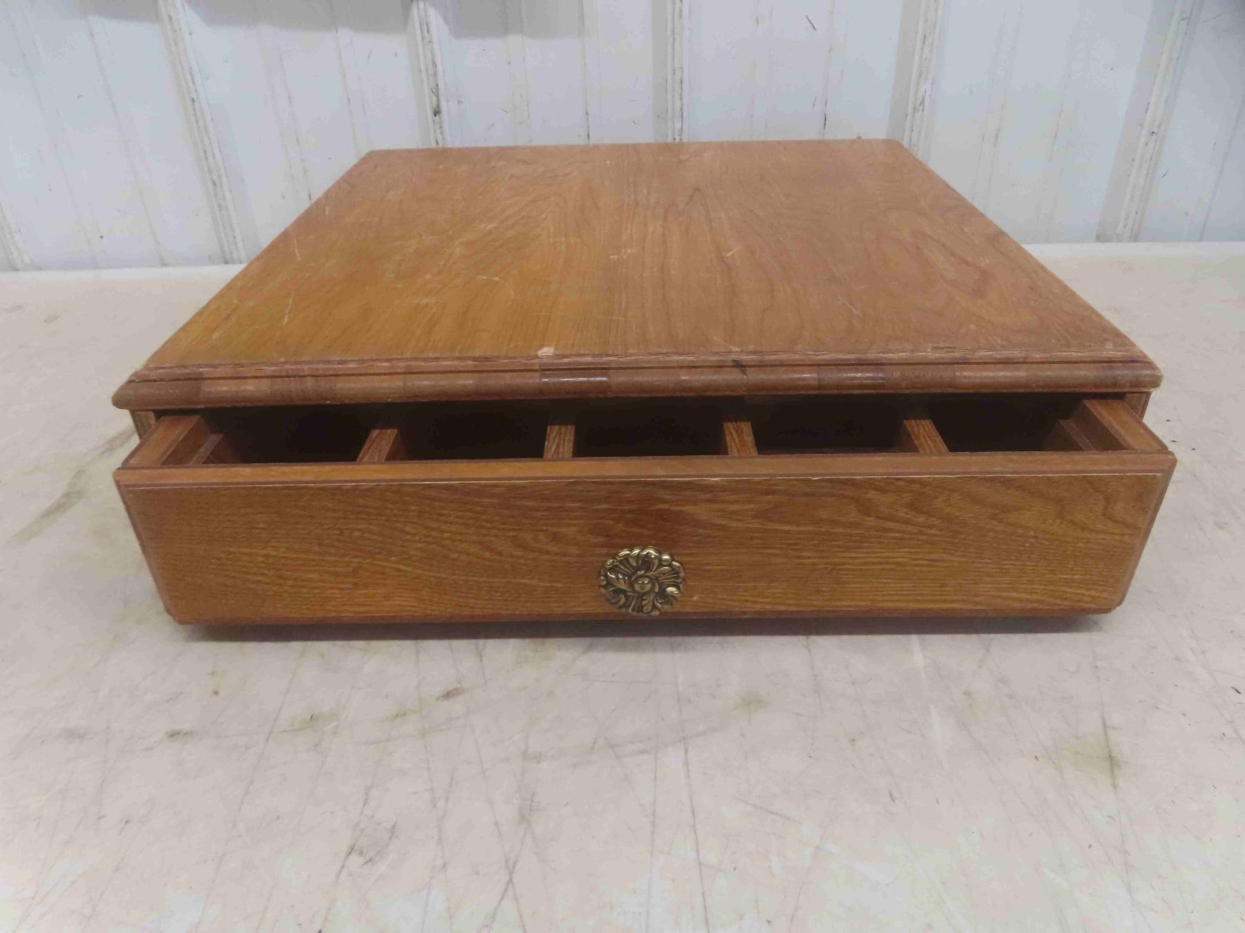 Oak Table Top Cash Box 18 3/4'' x 19 1/2'' Great for Shows or Store to Conceal Your Money and Display Things on Top