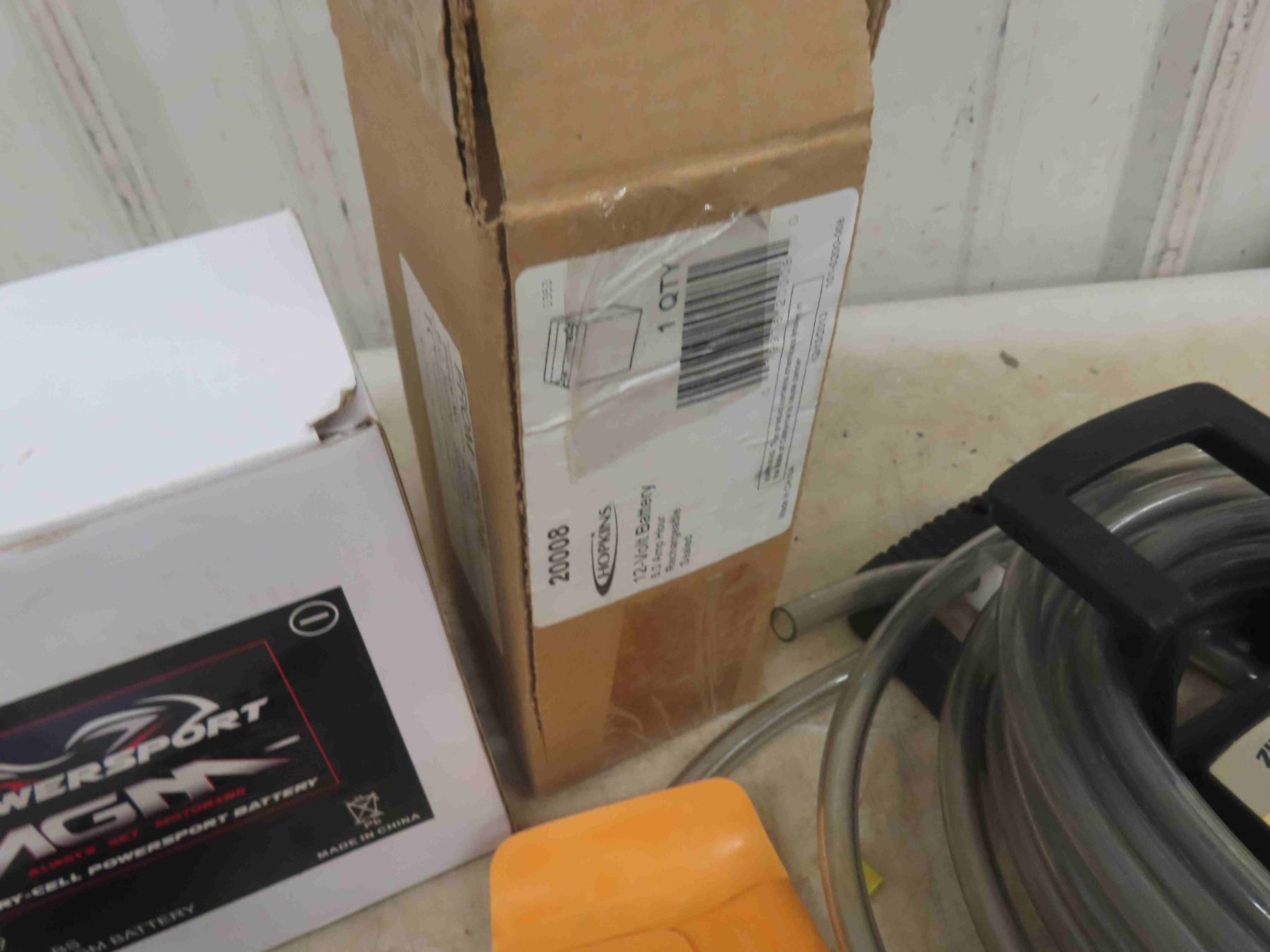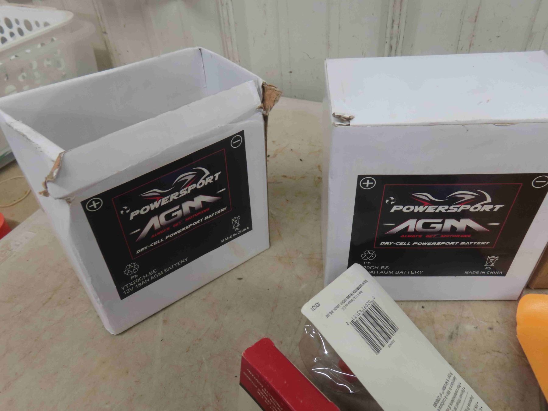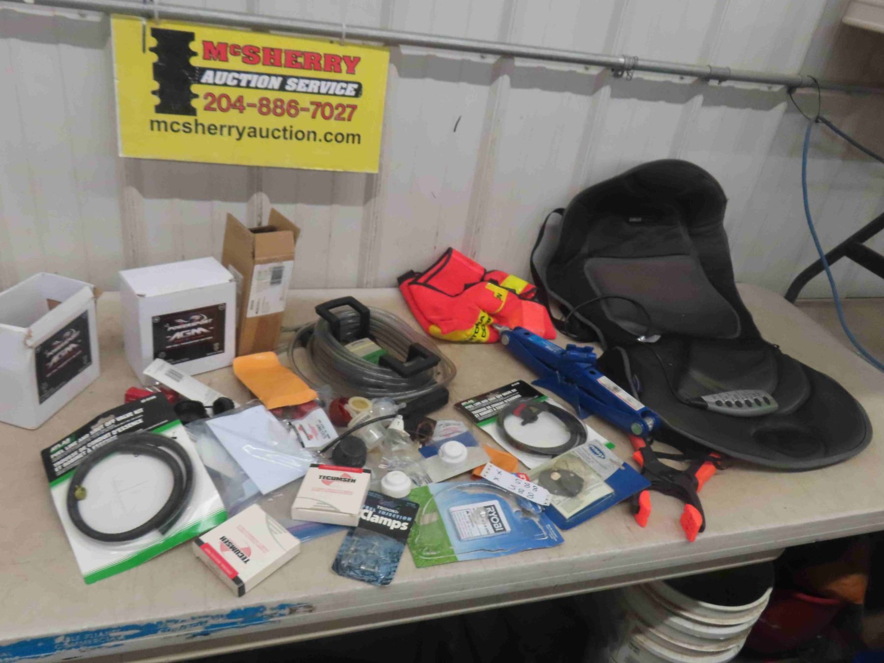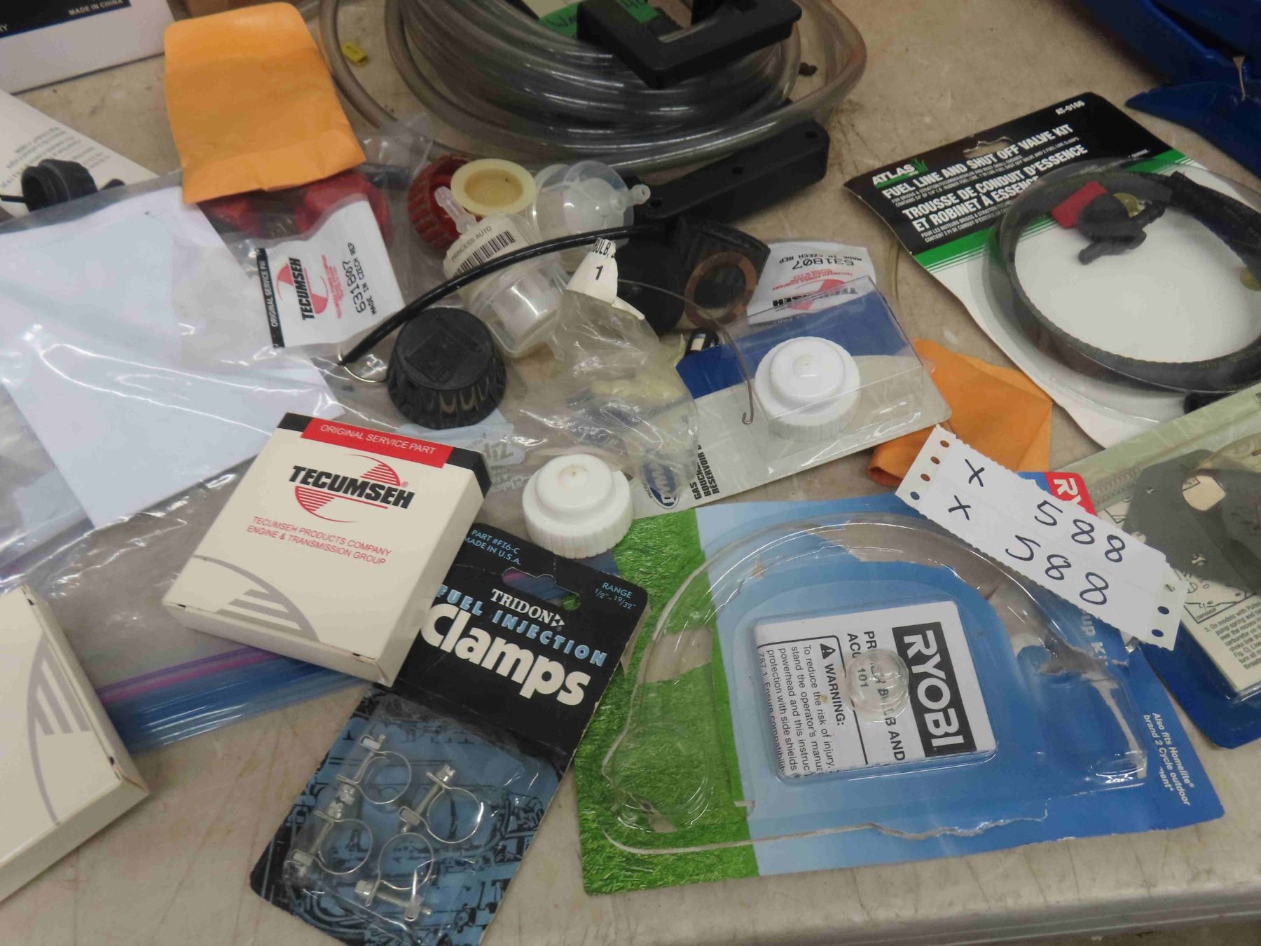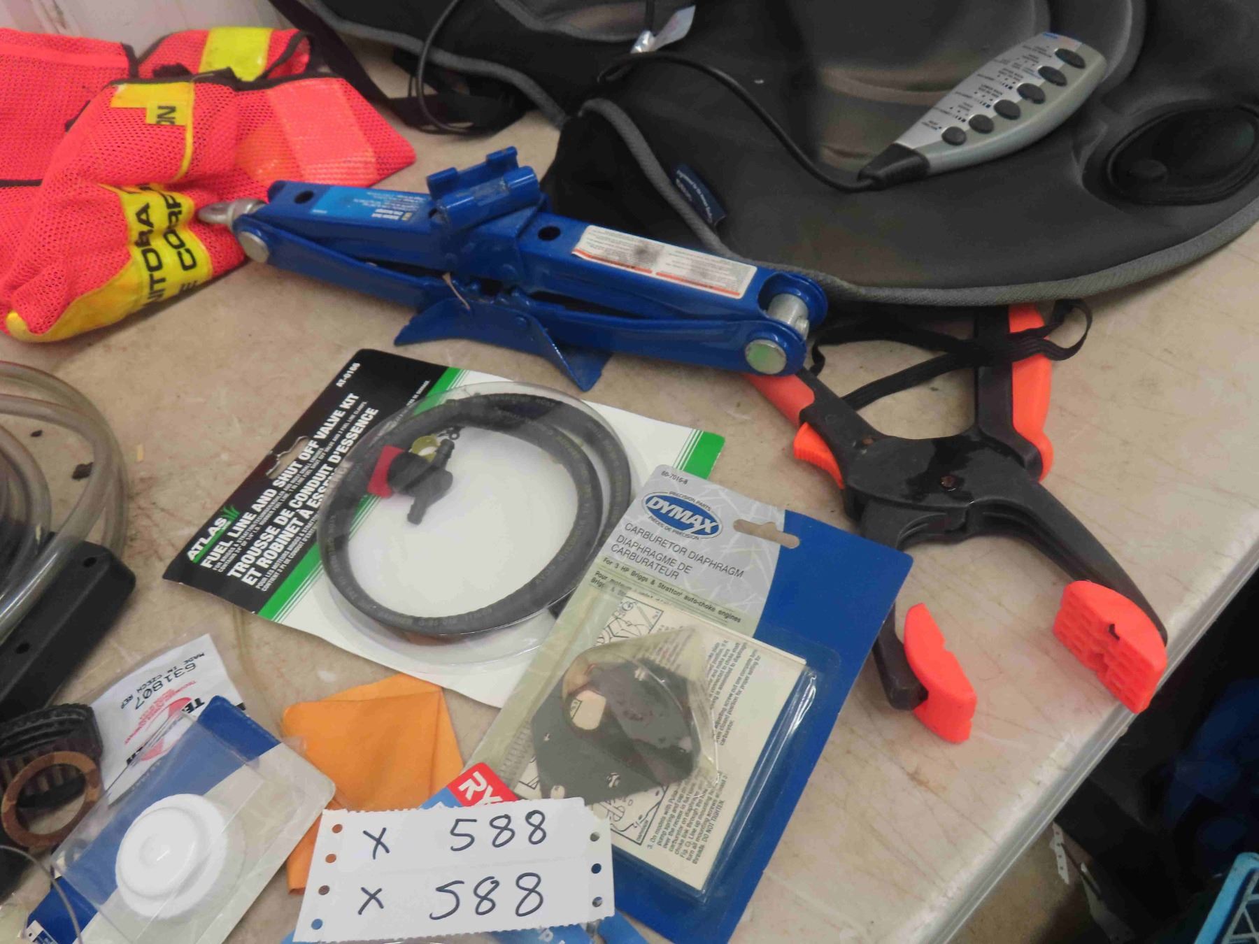 Obus Forme Massage Auto Seat, Car Screen tool, 3 Small Engine Batteries - condition unknown, Small Engine Parts, Filter Fuel Line, Service Parts