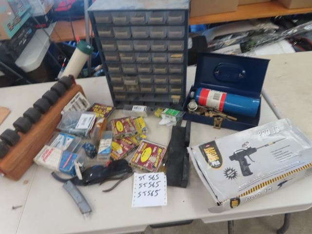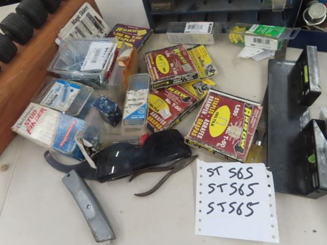 OddsnEnds of Tools ; Air Gauge, Wrenches, Scissors Propane Torch, Organizer, Staples, Stud FInder pl