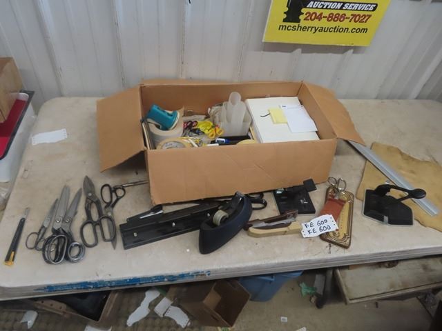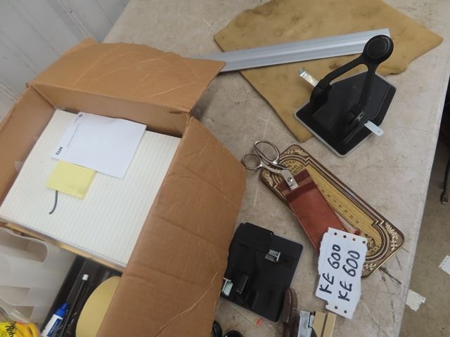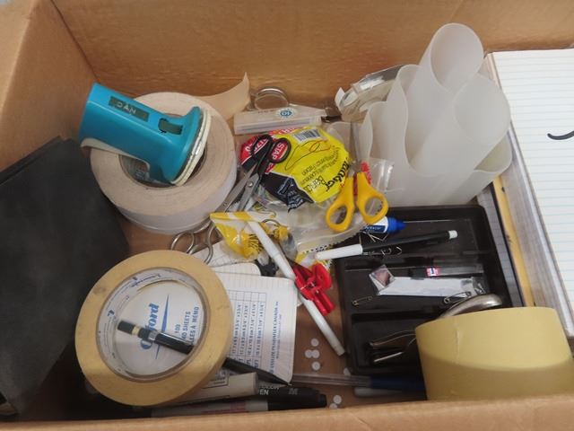 Office Items ; Stapler, Hole Punch, Paper, Markers Tape Dispenser Scissors plus  more