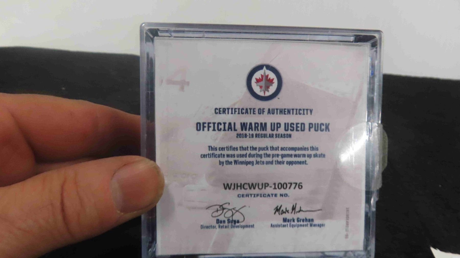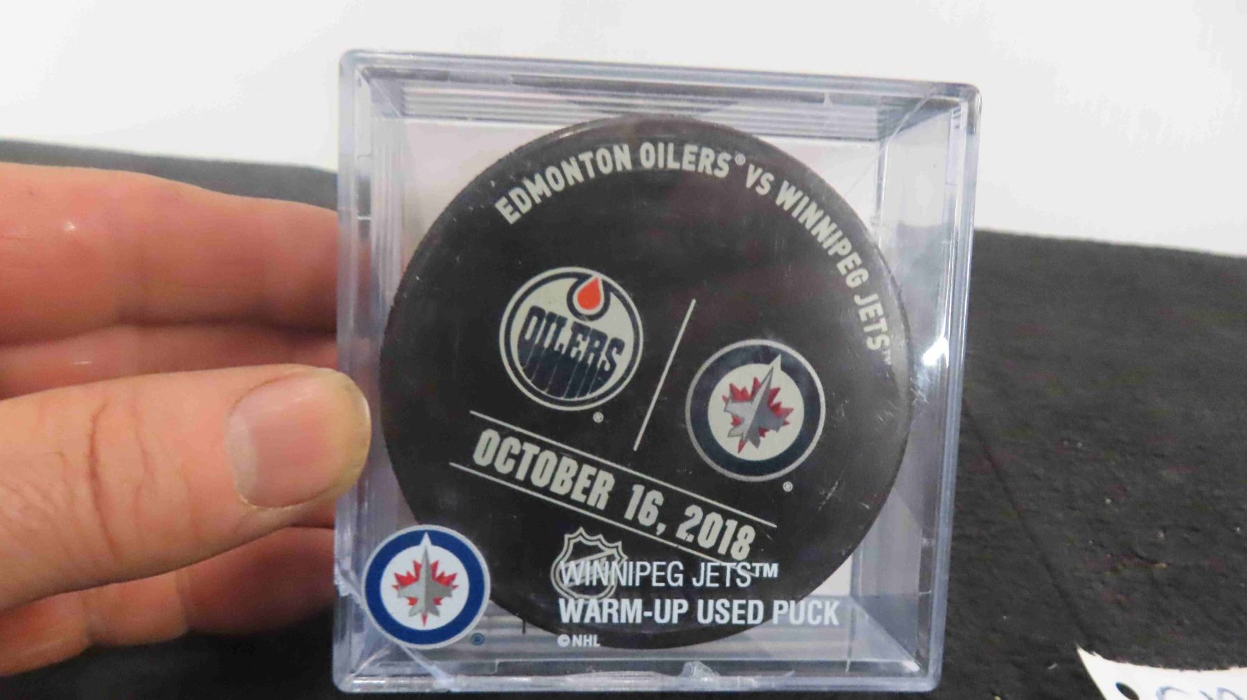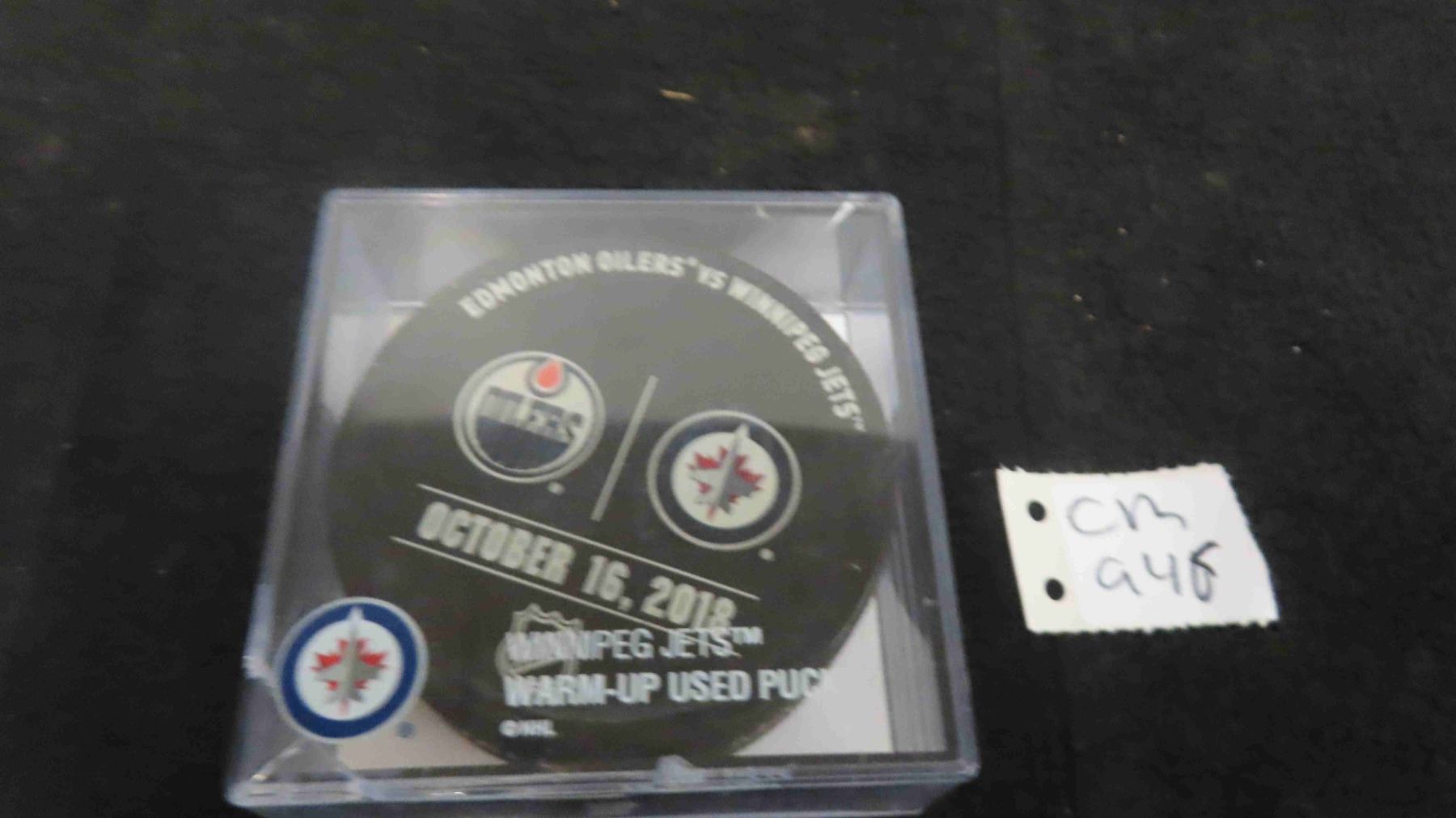 Official Winnipeg Jets vs Edmonton Oilers Warm Up Puck