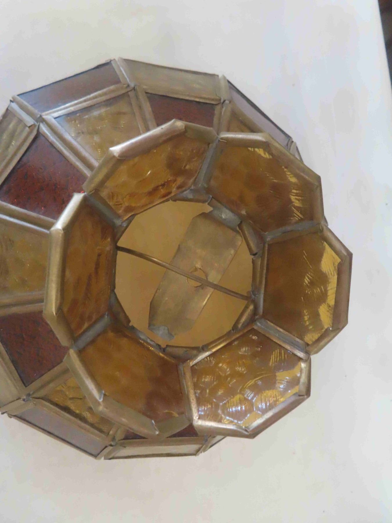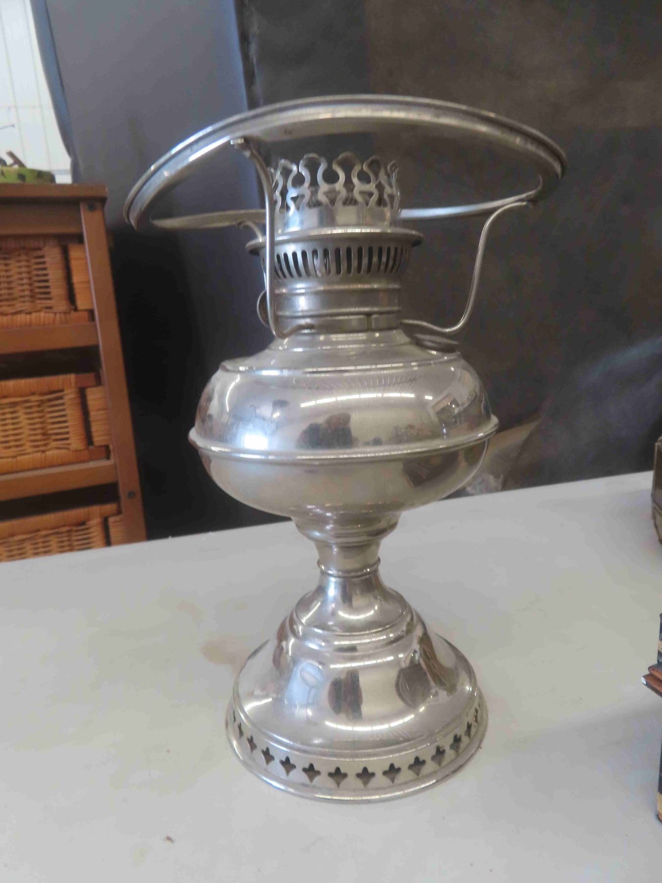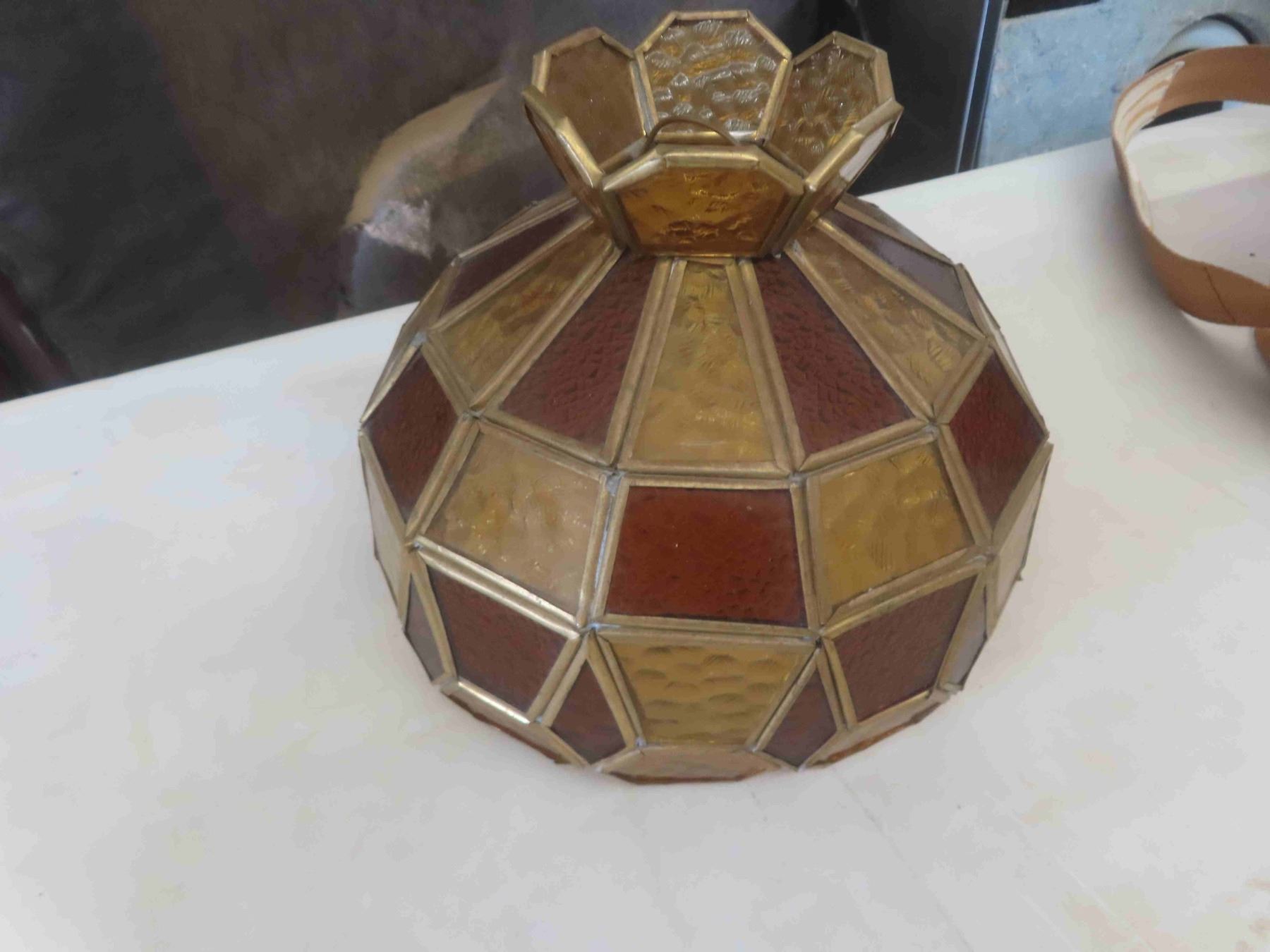 Oil Lamp No Chimney, Stained Glass Style Shade, Glass Chimney, Vintage Metal Lock Box