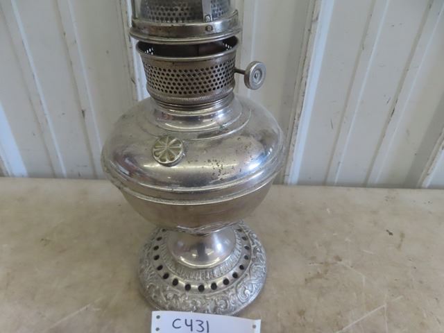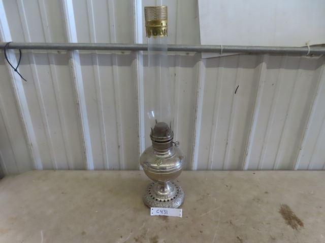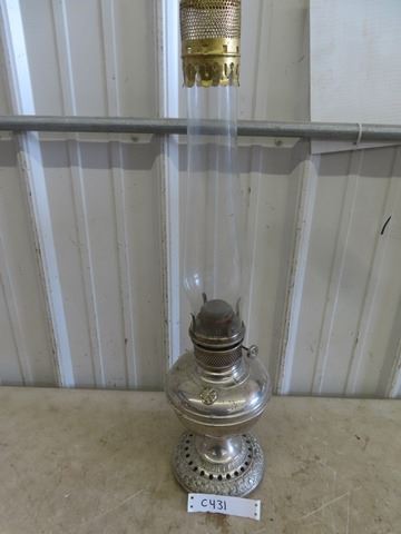 Oil Lamp with Tin/siler Tone Base with Chimney