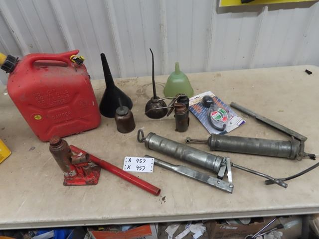 Oil Squirt Cans, Grease Guns, Antifreeze Tester, & Hyd Jack