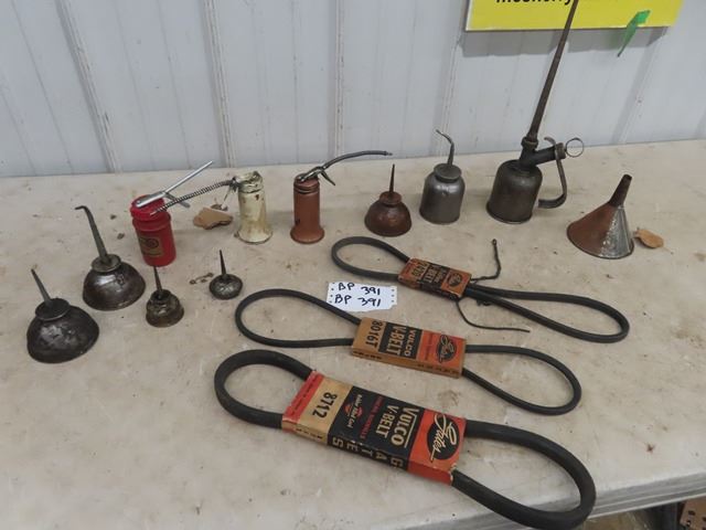Oil Squirt Cans- Some Labelled, ,V Belts & More