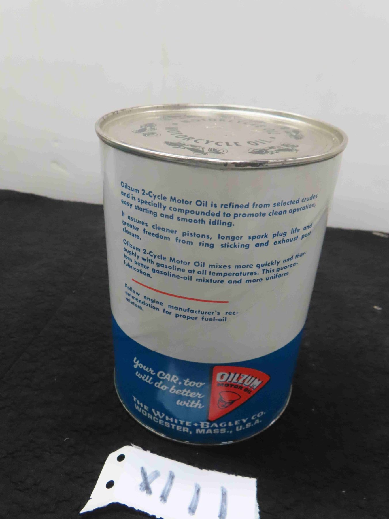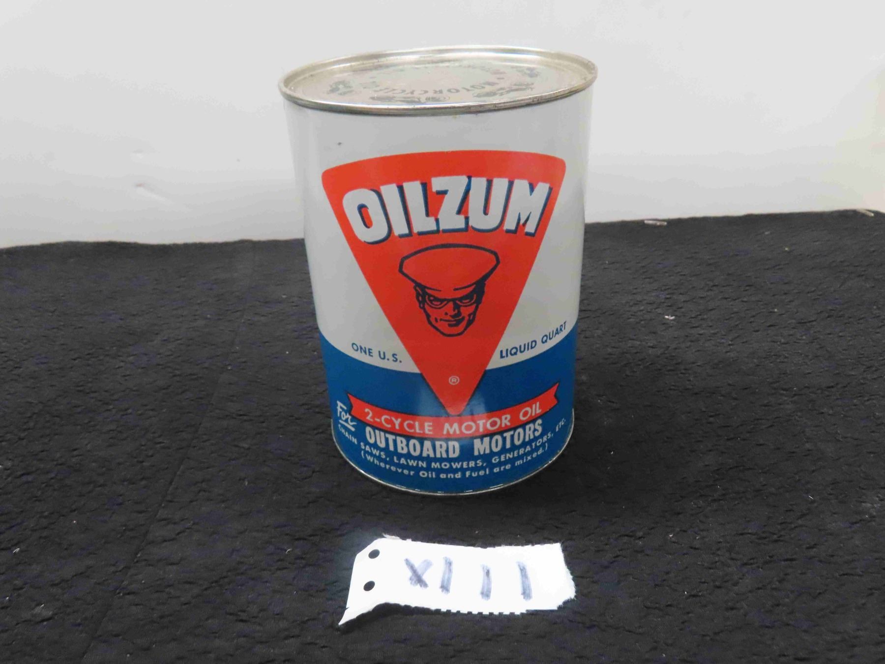 Oilzum 2 Cycle Motor Oil Tin + Cardboard Can with Product