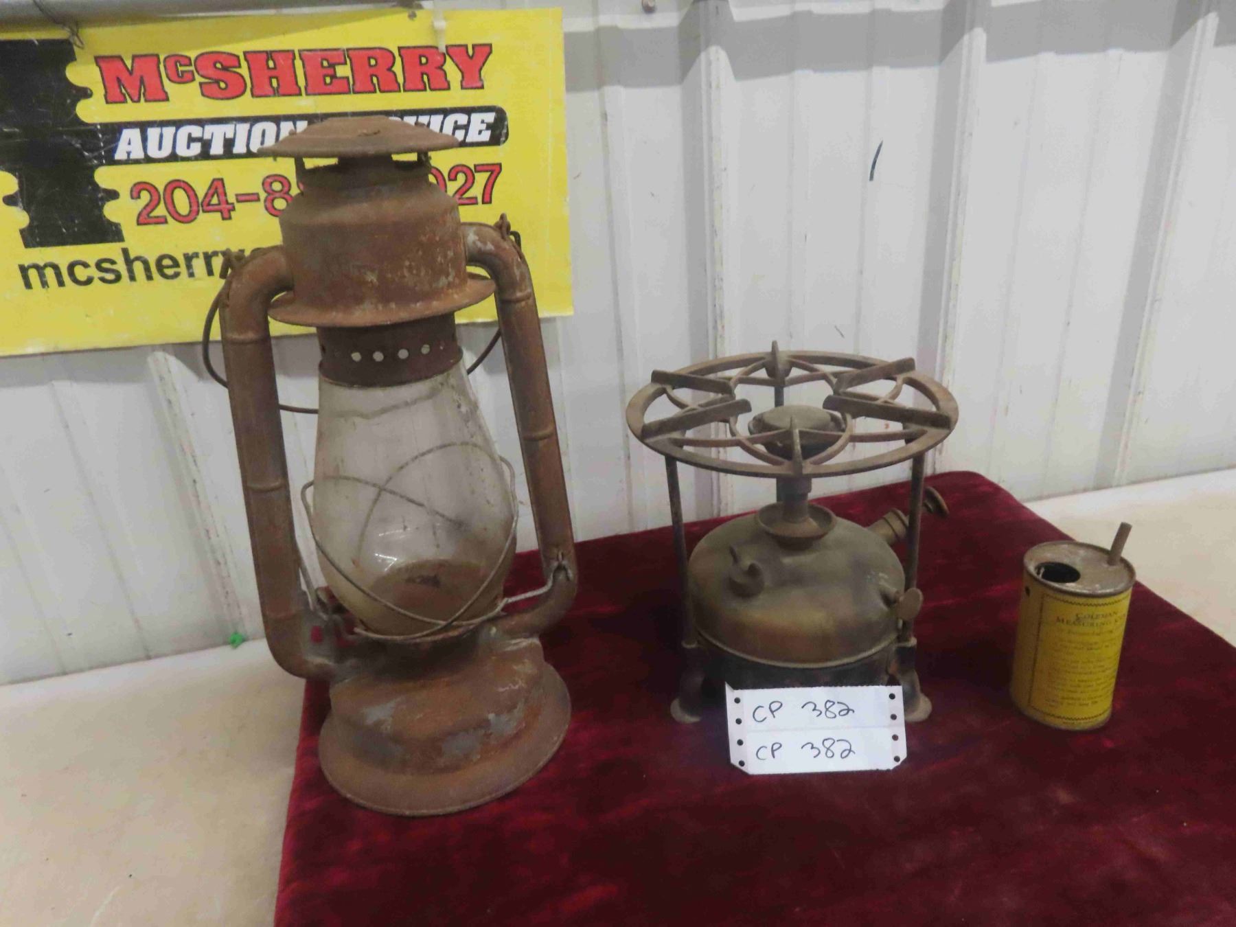 Old Camping Cooker, Barn Lantern, Coleman Funnel Can