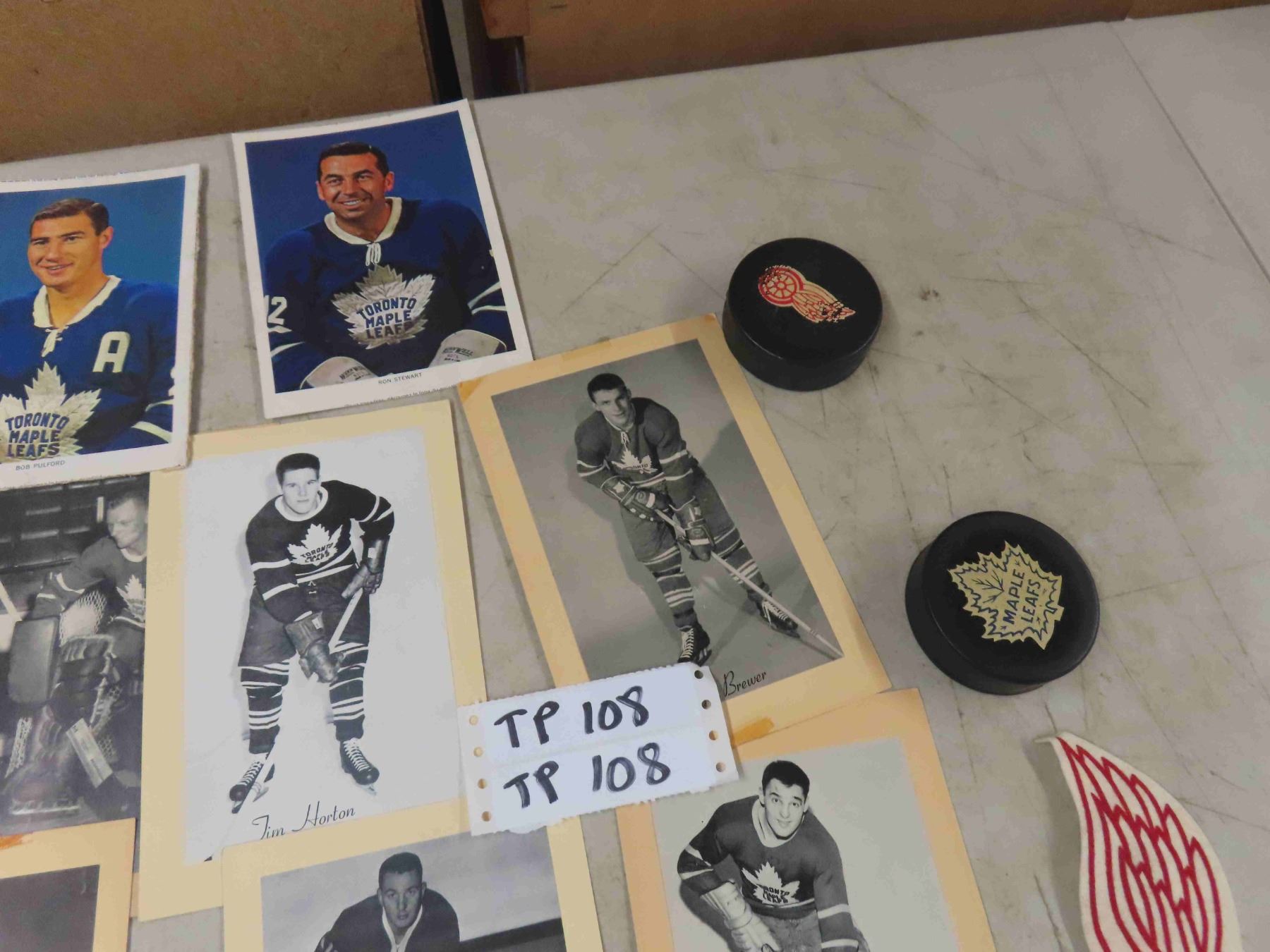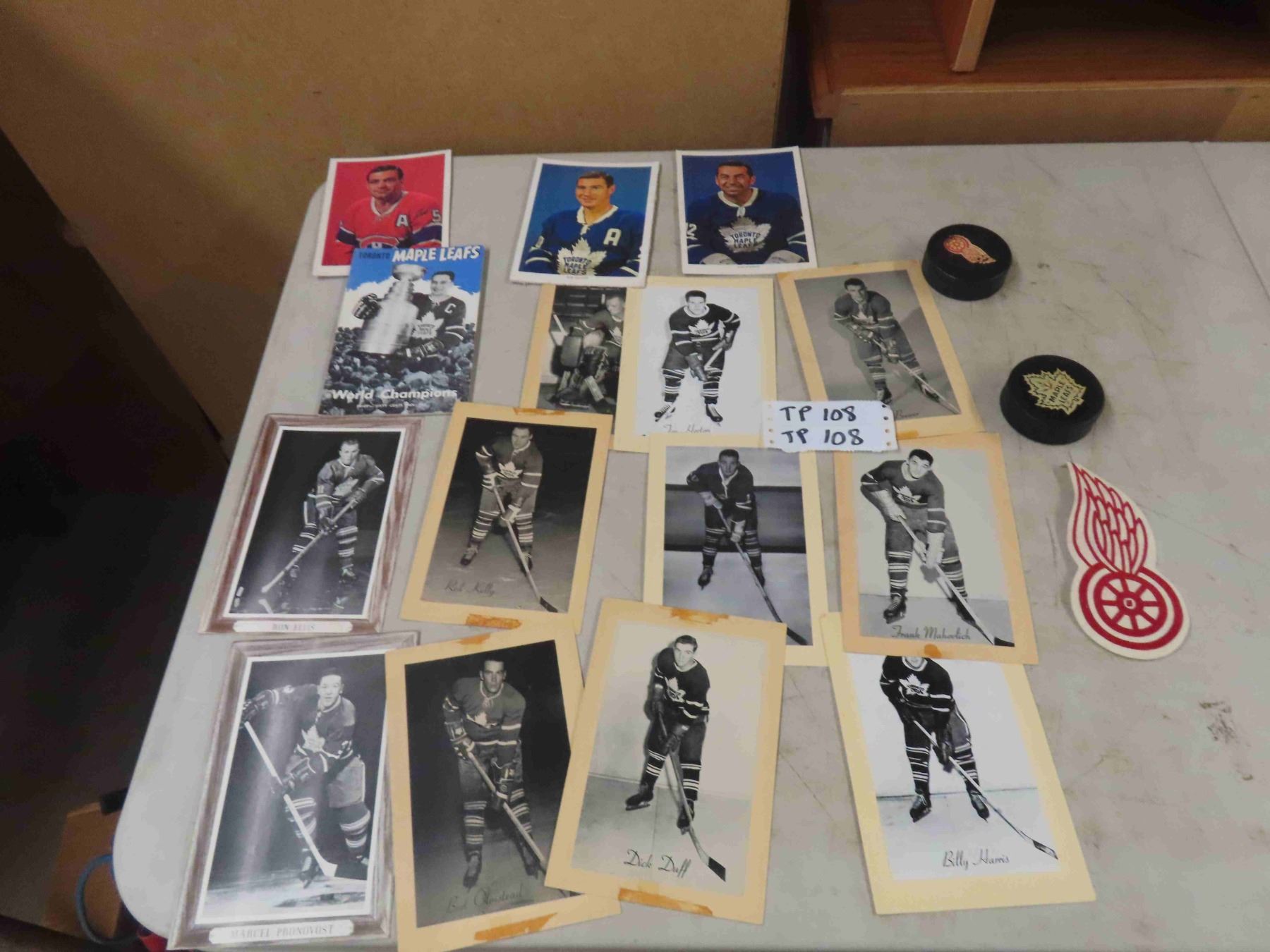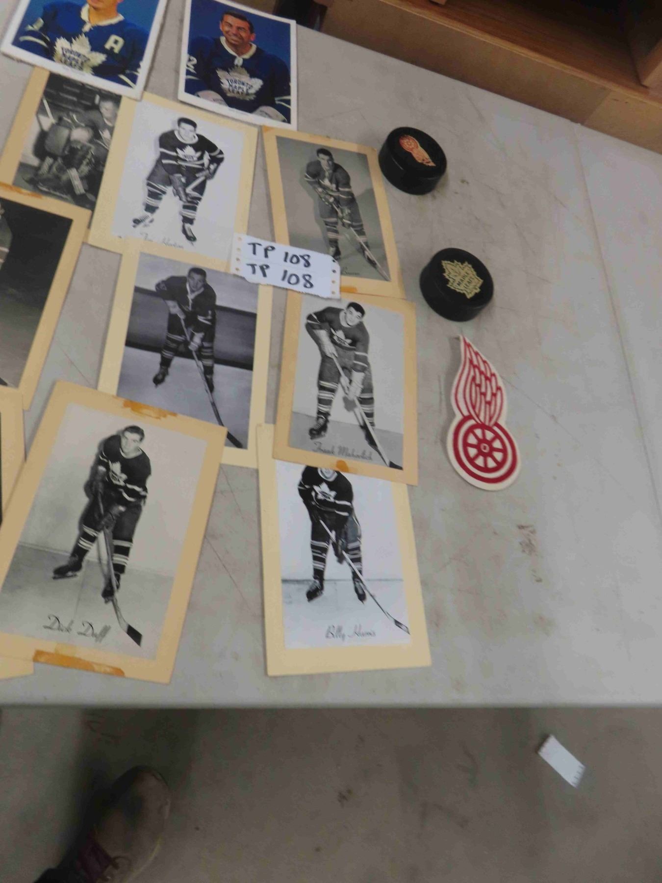 Old Hockey Photo, Detroit Red Wing Crest, Hockey Pucks