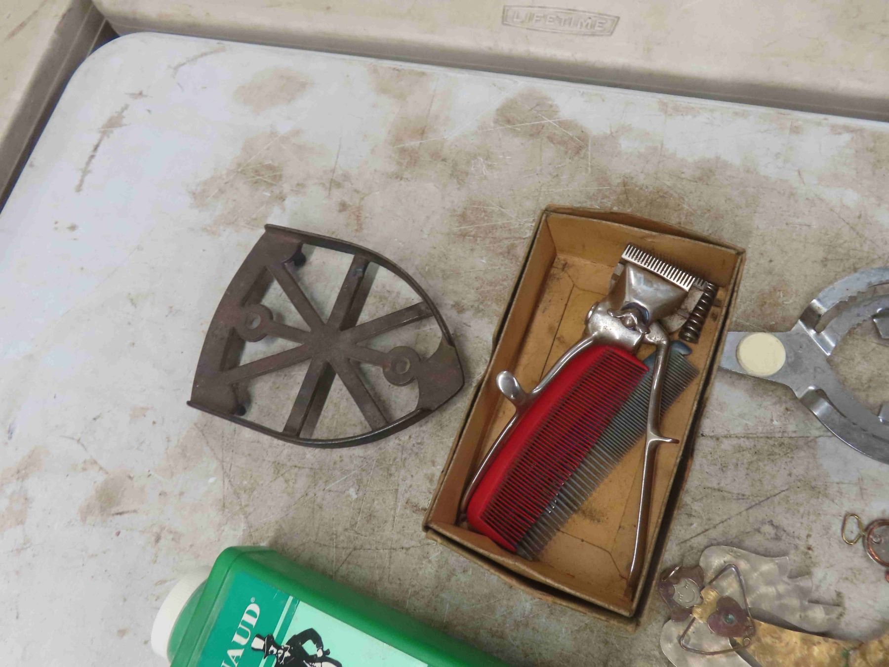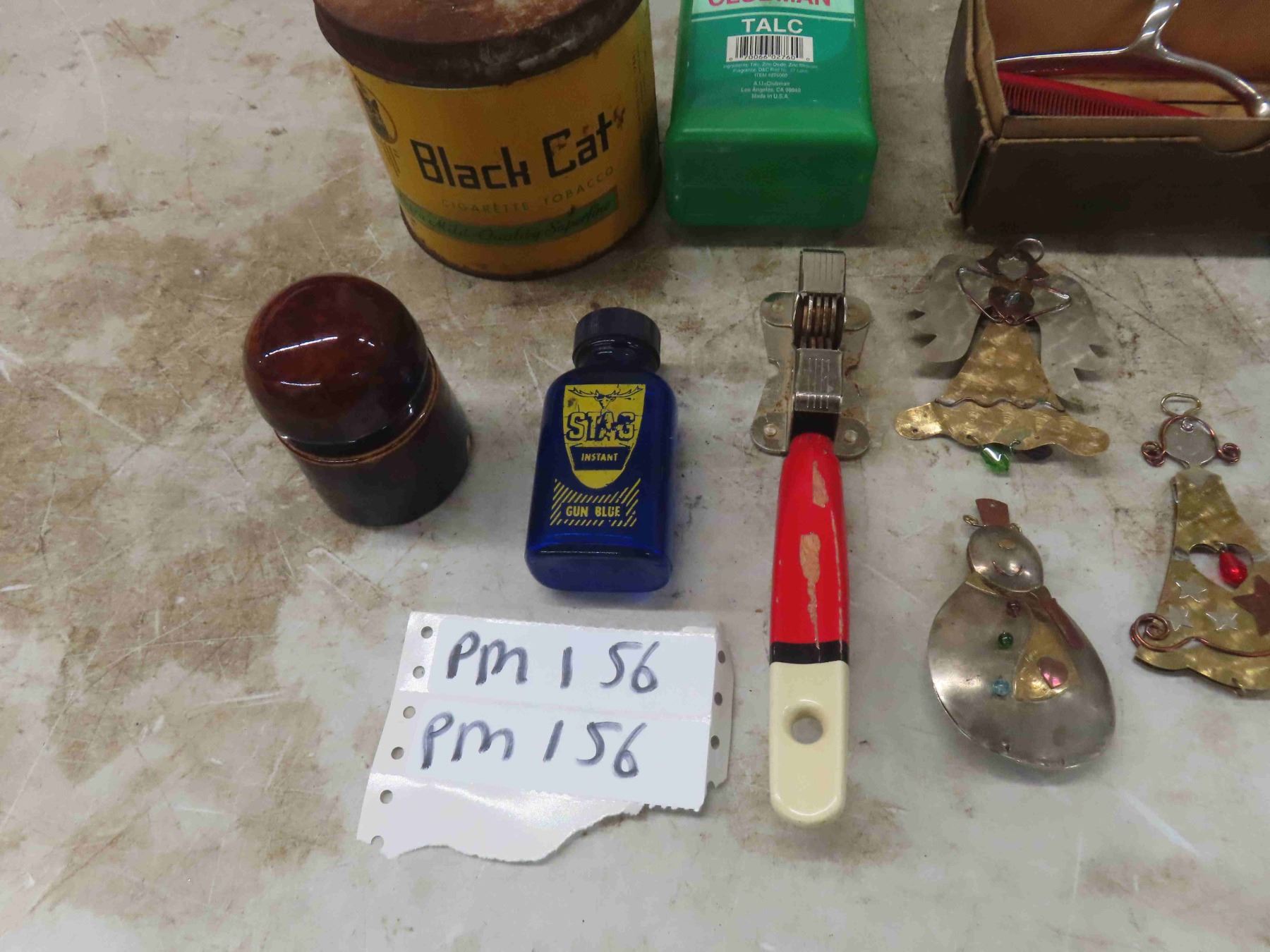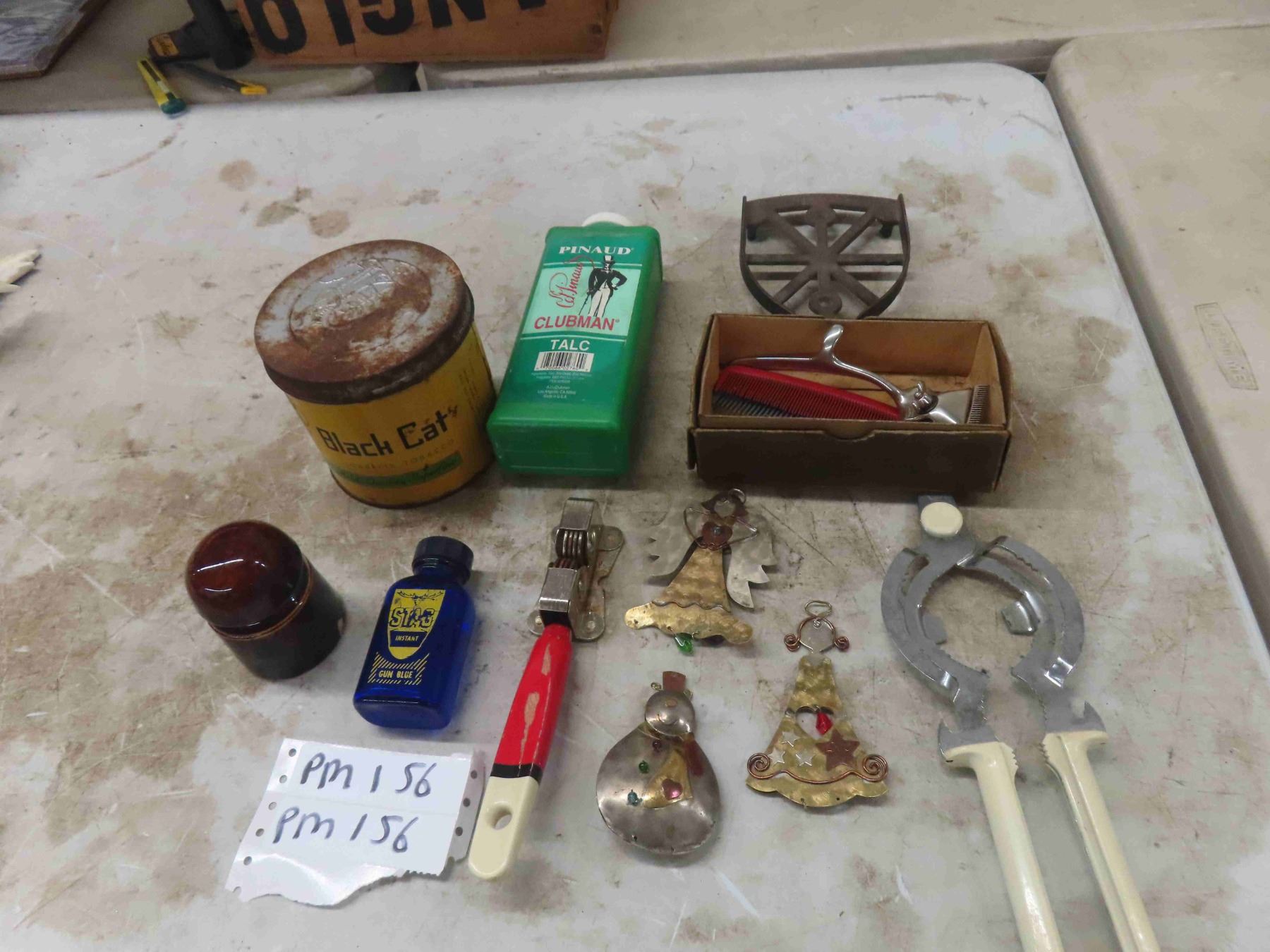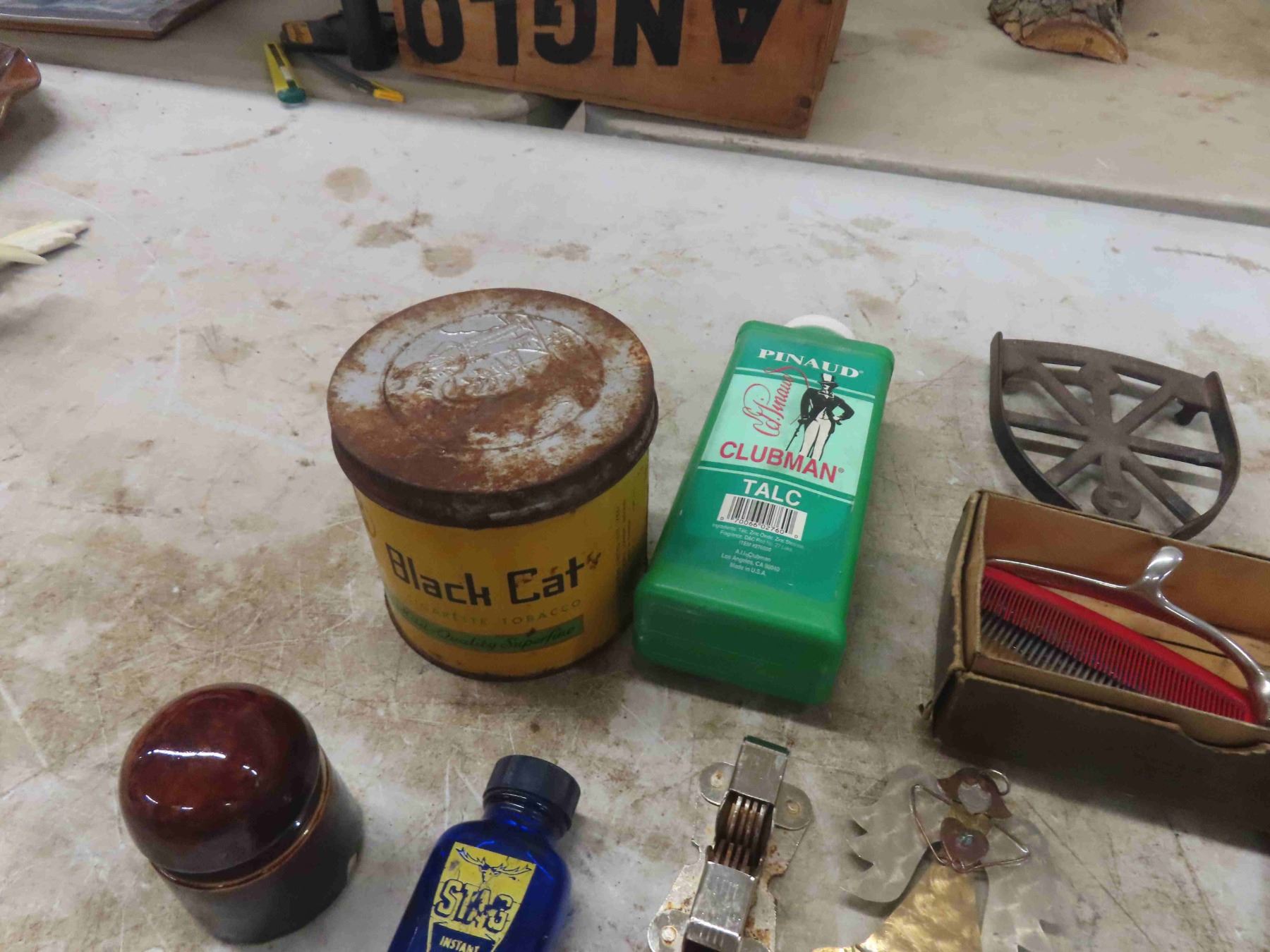 Old Kitchen Utensils, Black Cat Tobacco Can, Insulator, Iron Rest, Clippers, plus more