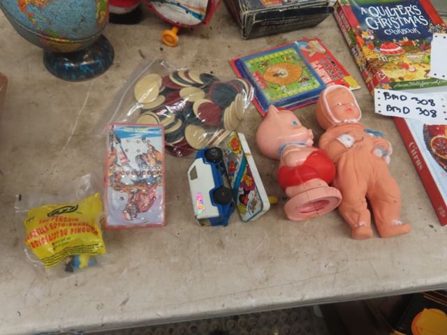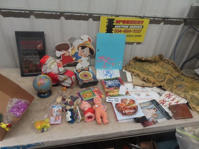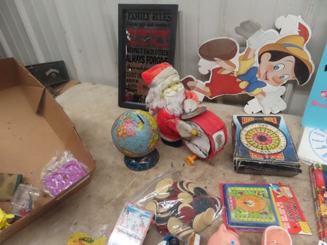 Old Santa Drum Toy, McDonaldsBatman Toy, Globe Bank, Tapestry, Stationary plus more