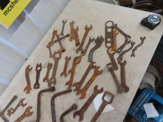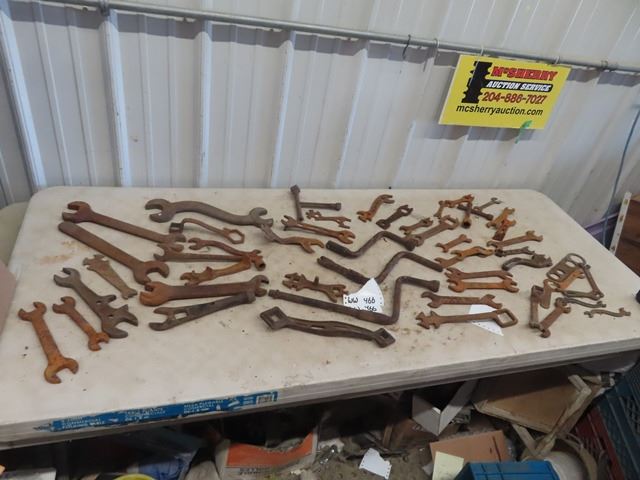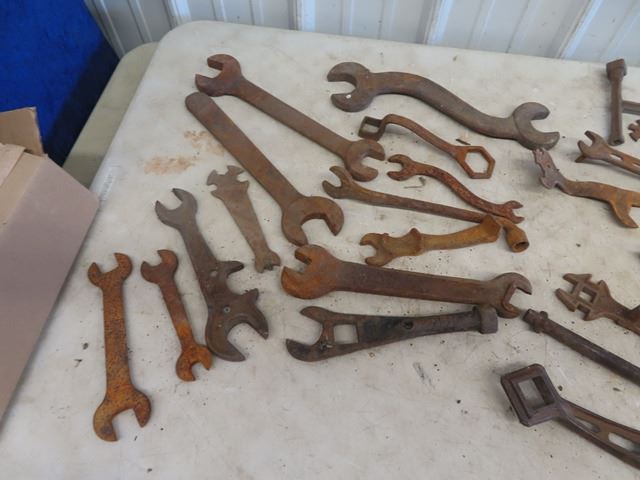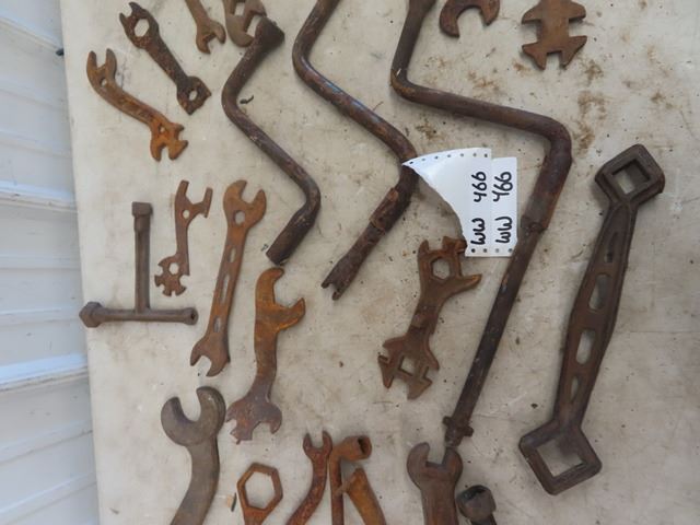 Old Wrenches, Some Labelled, Tractor Starter Cranks