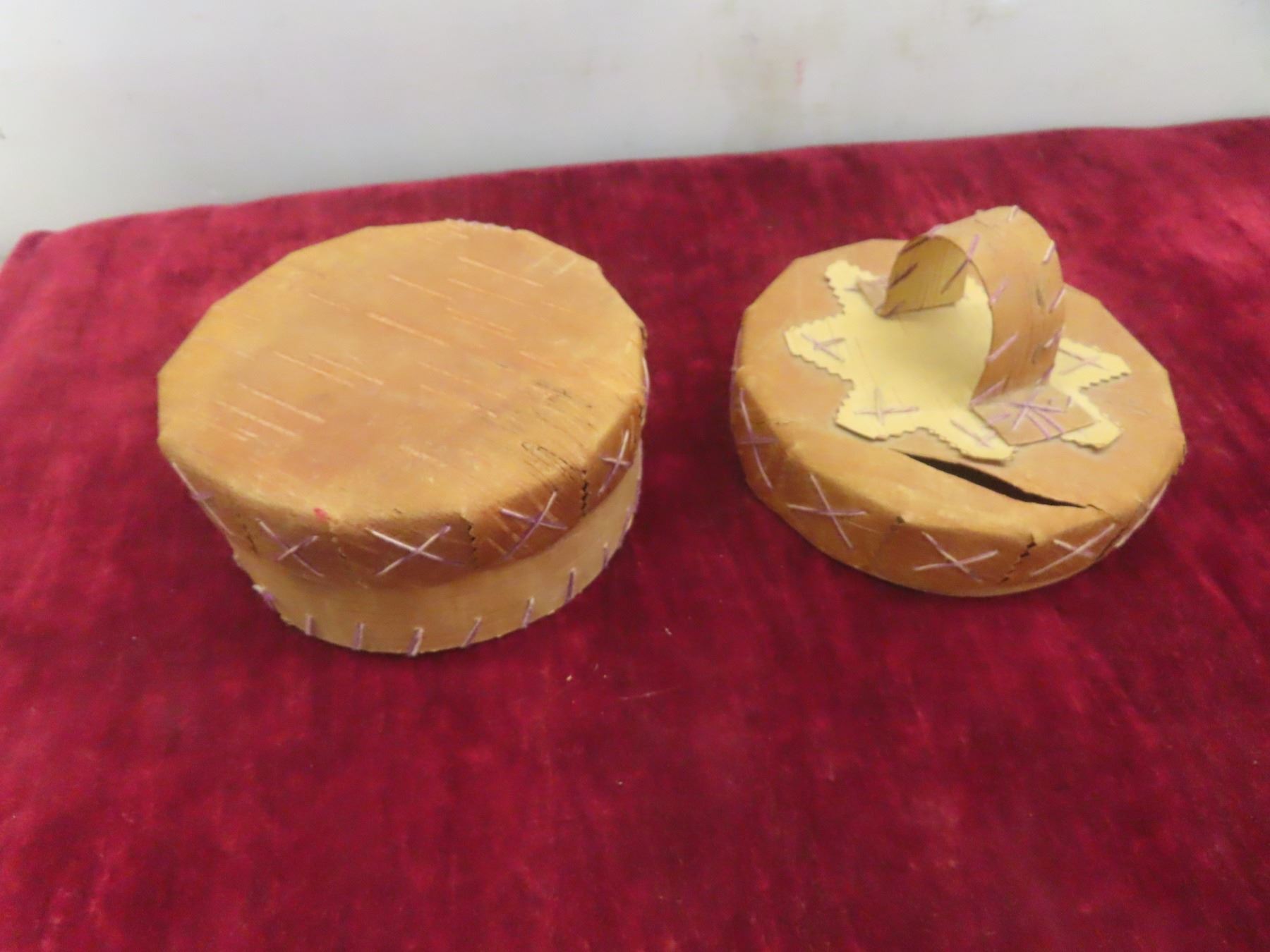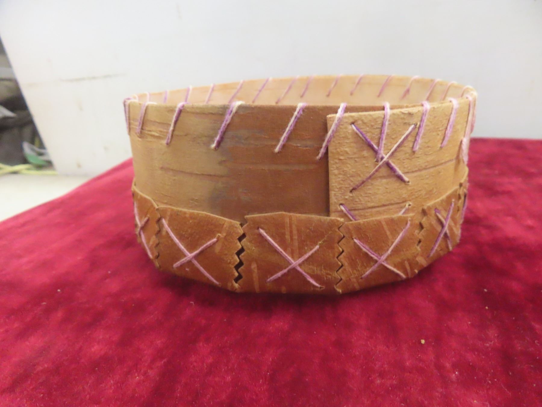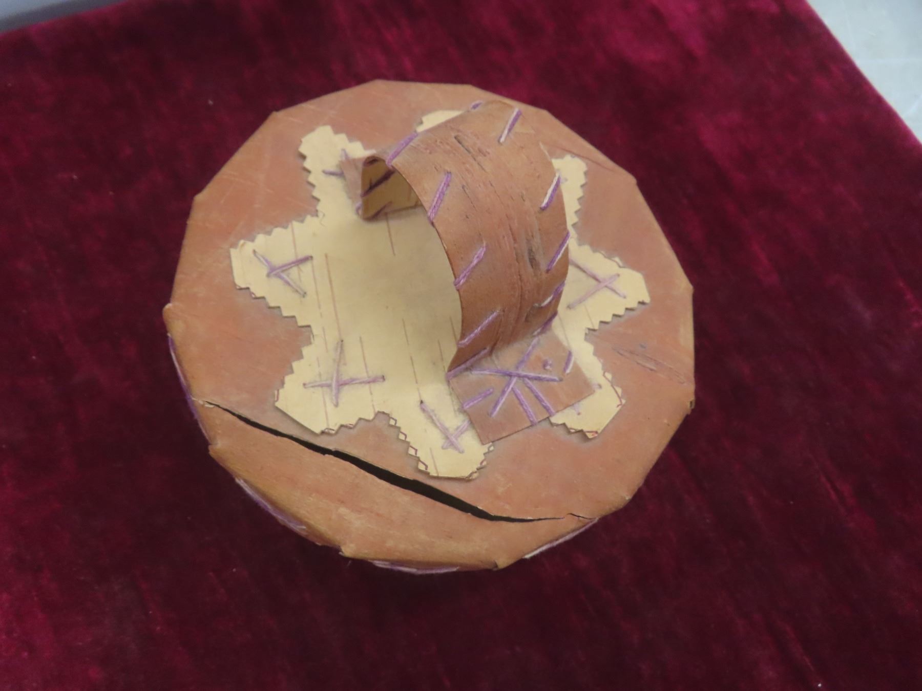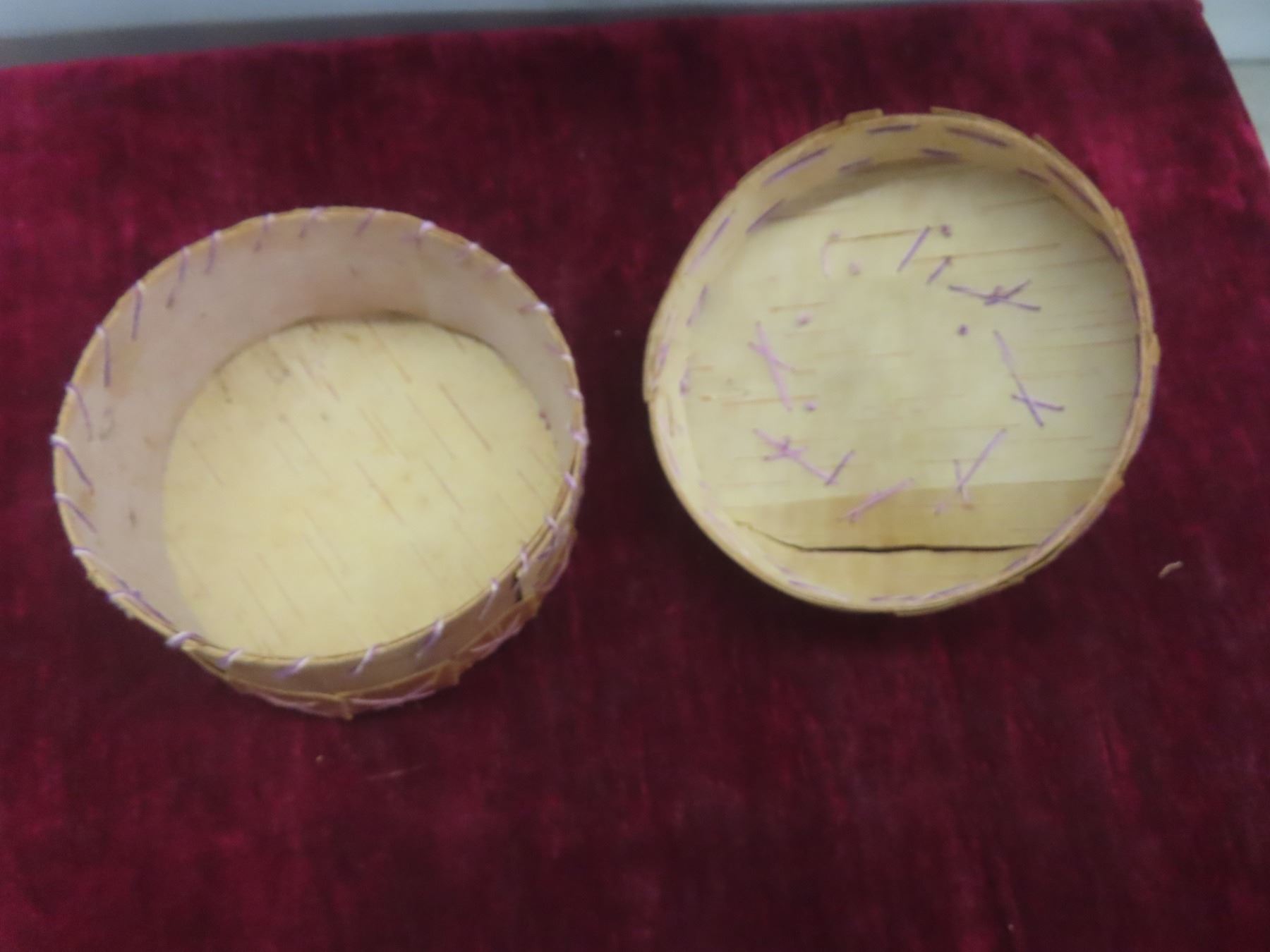 Older Cree Traditional Birch Bark Star Box from Red Deer River
