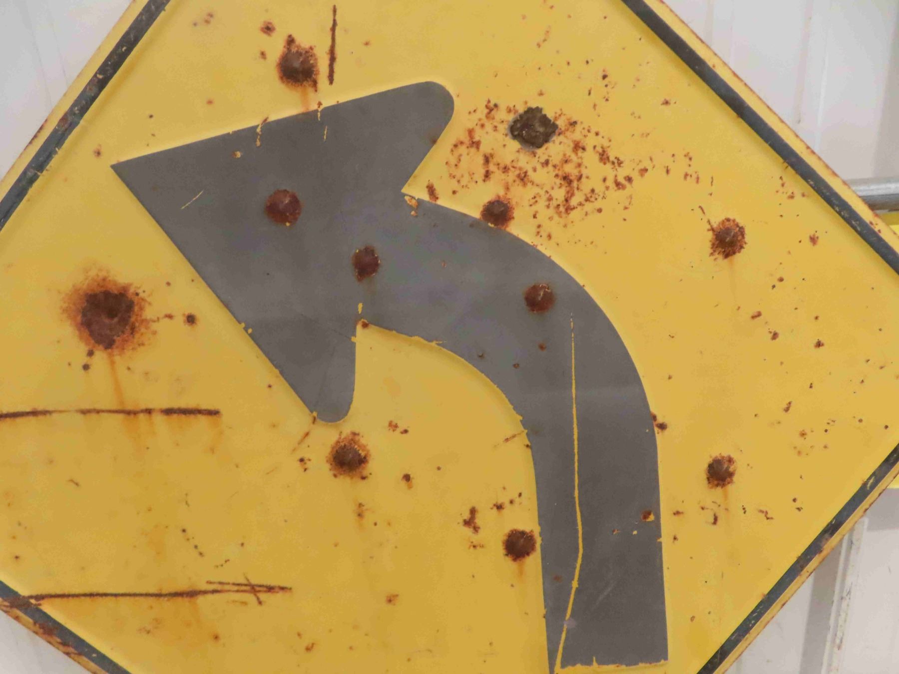 Older Metal Embossed Traffic Curve Sign 24" x 24"