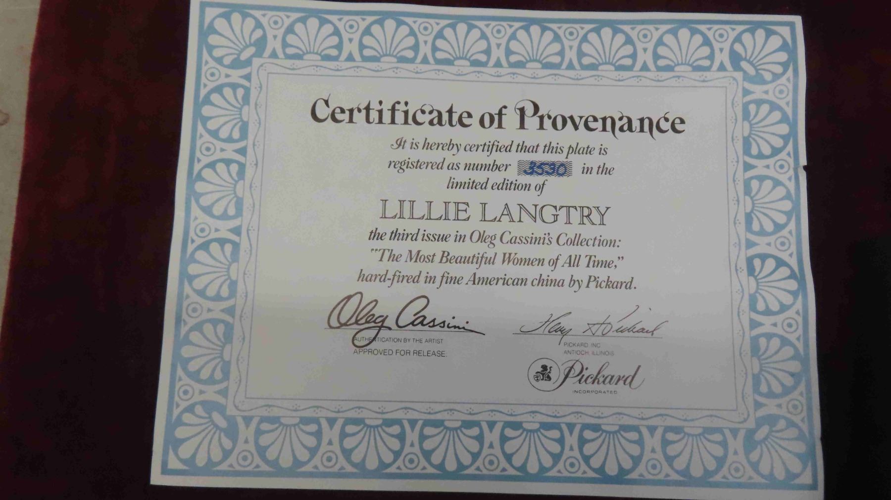 Oleg Cassini's The Most Beautiful Woman of All Time Series Featuring ''Lillie Langtry'' , Plate Number 3530 , 10.25'' Diameter Only Available During Year 1983