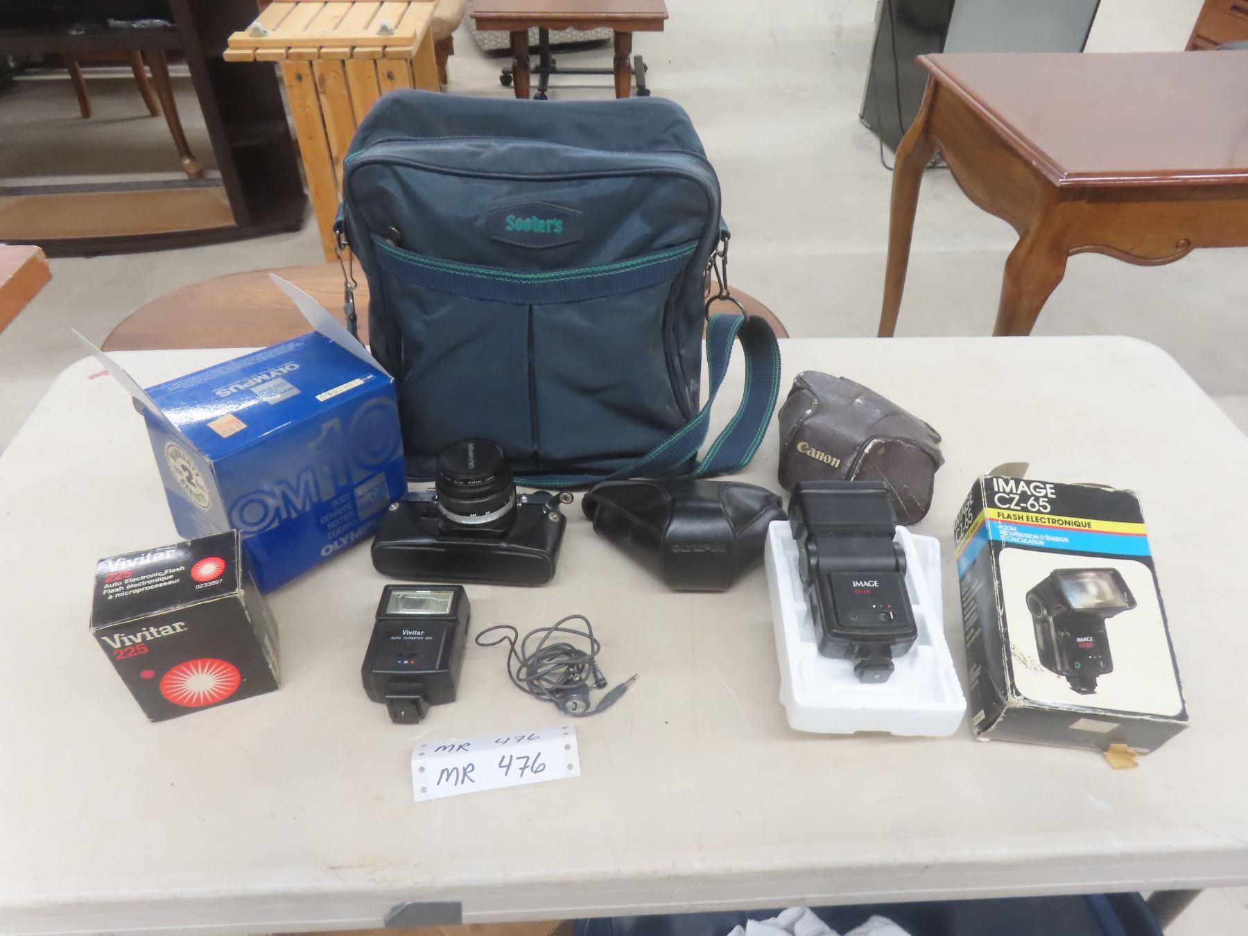 Olympus Camera, Vivitar Flashes, Carry Bag, and More