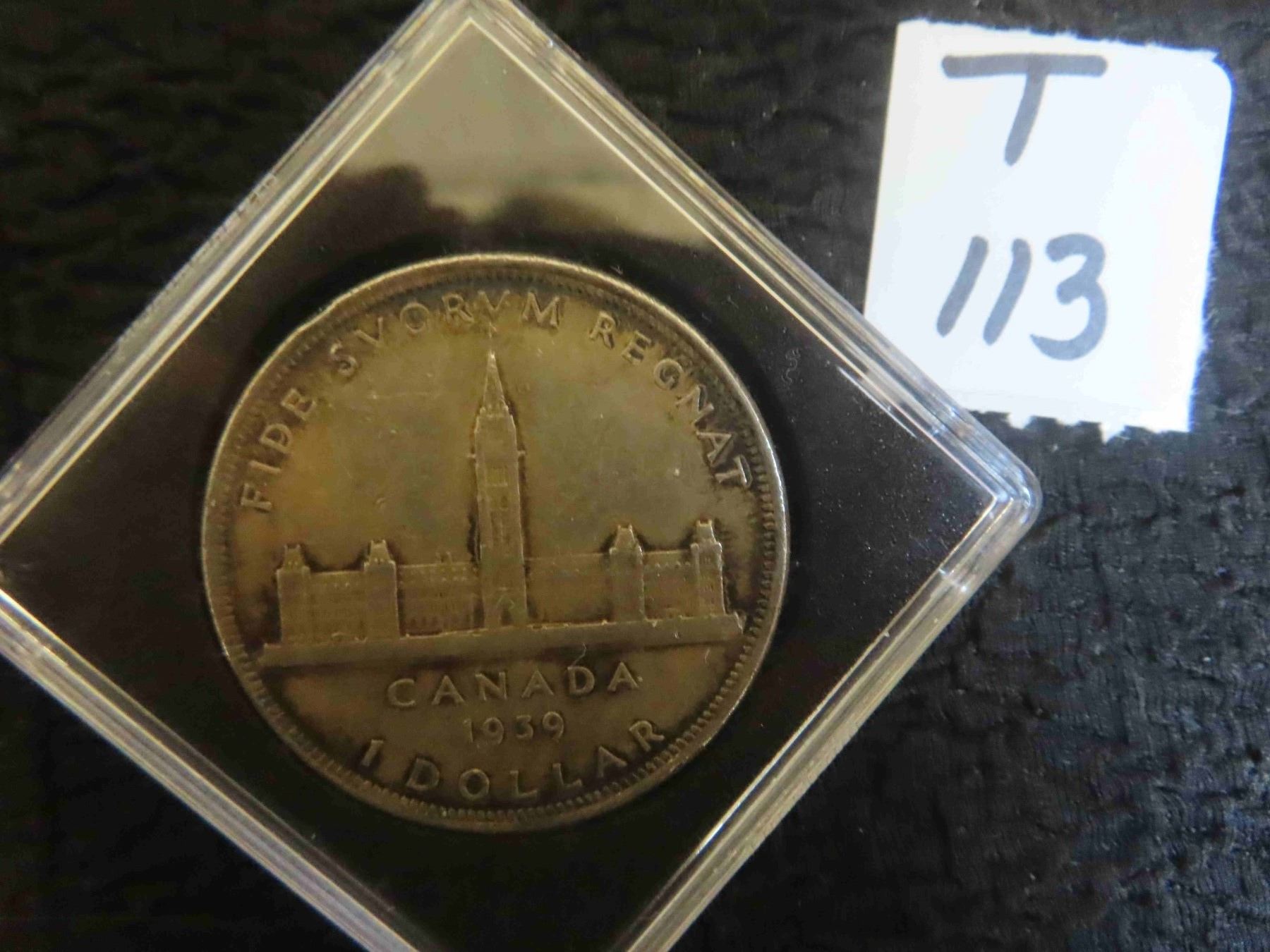 One 1939 Canadian 80% silver dollar, sealed in its own case, even toning both sides, lightly circulated, ungraded. Nice coin