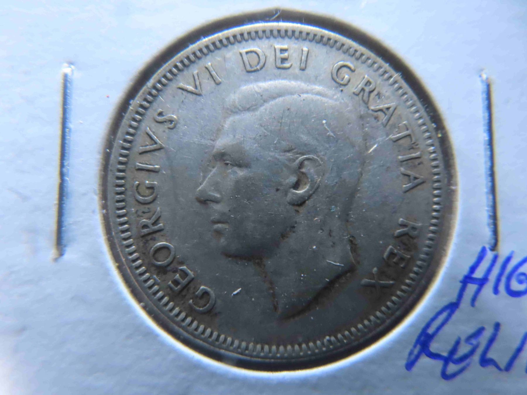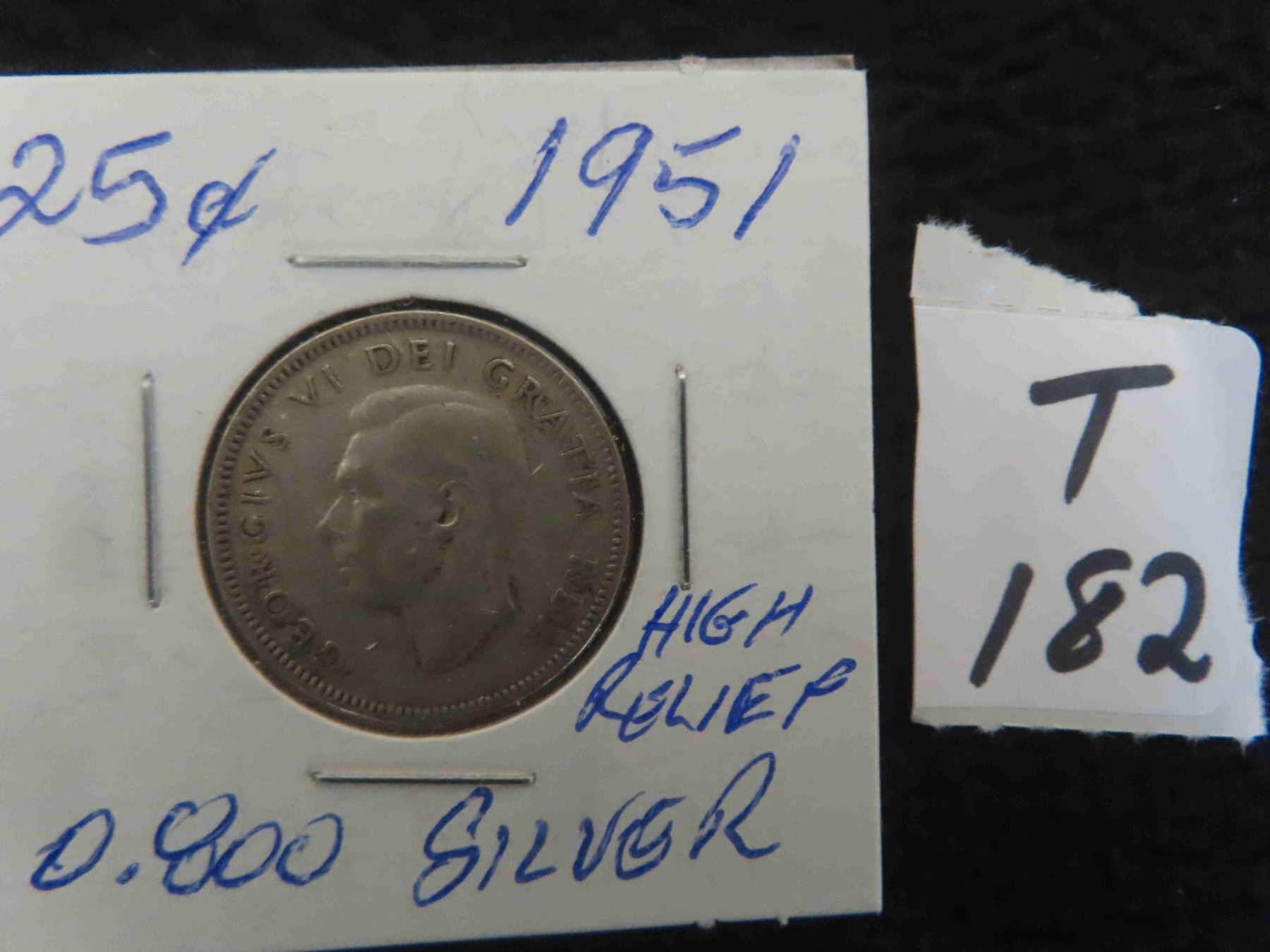 One 1951 Canadian 80% silver 25 cent coin, circulated, ungraded, high relief