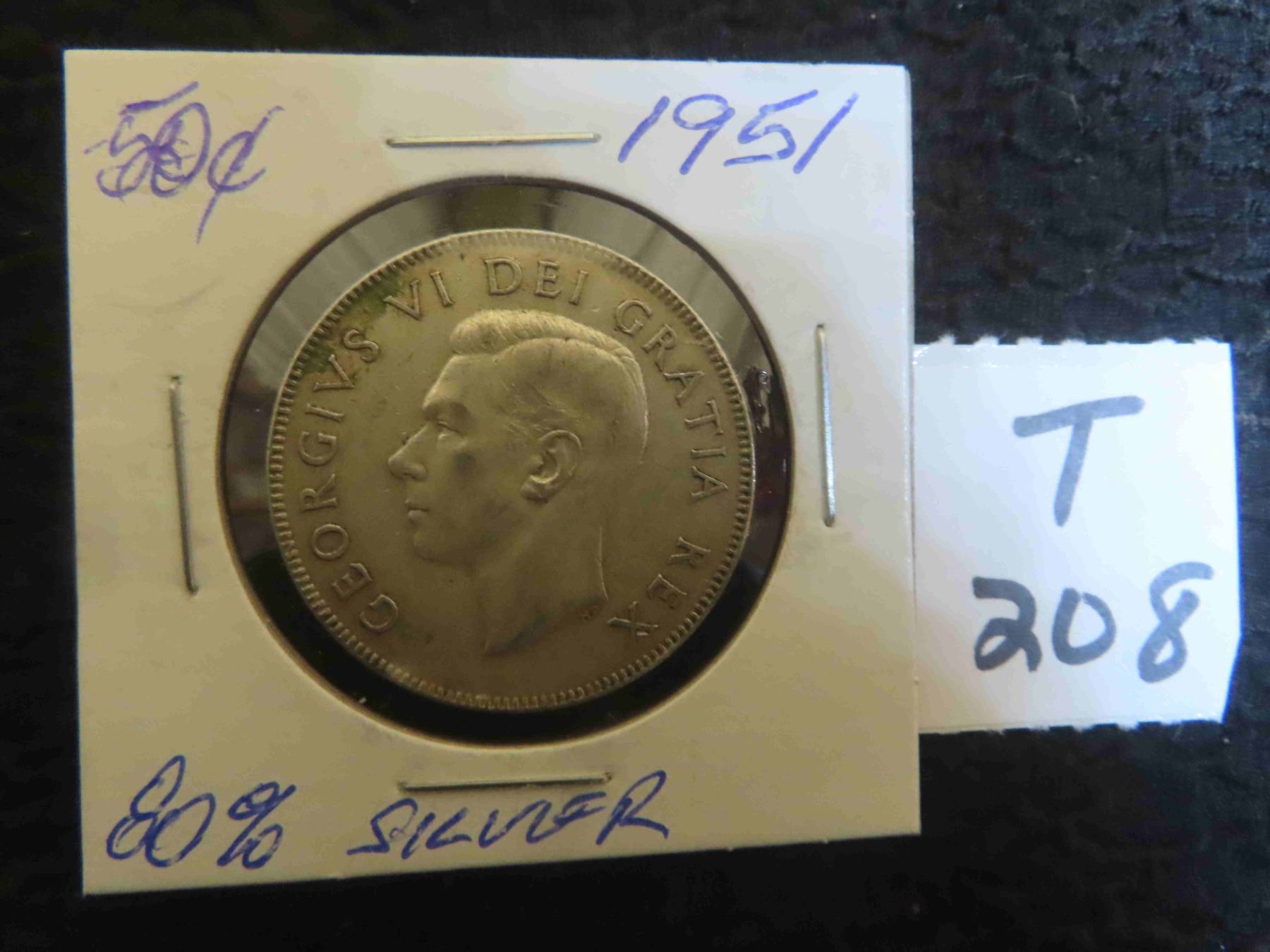 One 1951 Canadian 80% silver 50 cent coin, circulated ungraded.