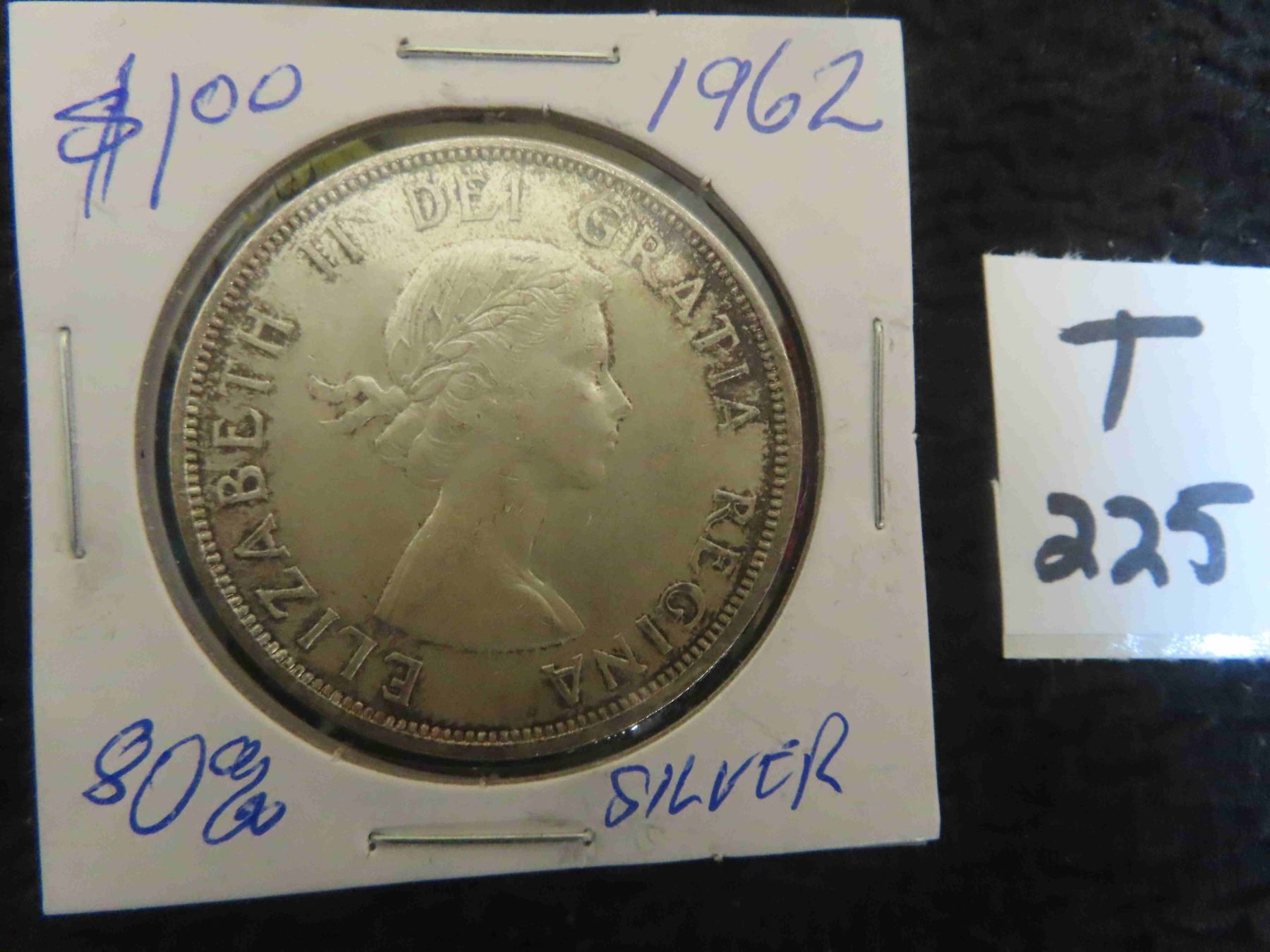One 1962 Canadian 80% Canadian dollar coin, uncirculated, ungraded, nice coin