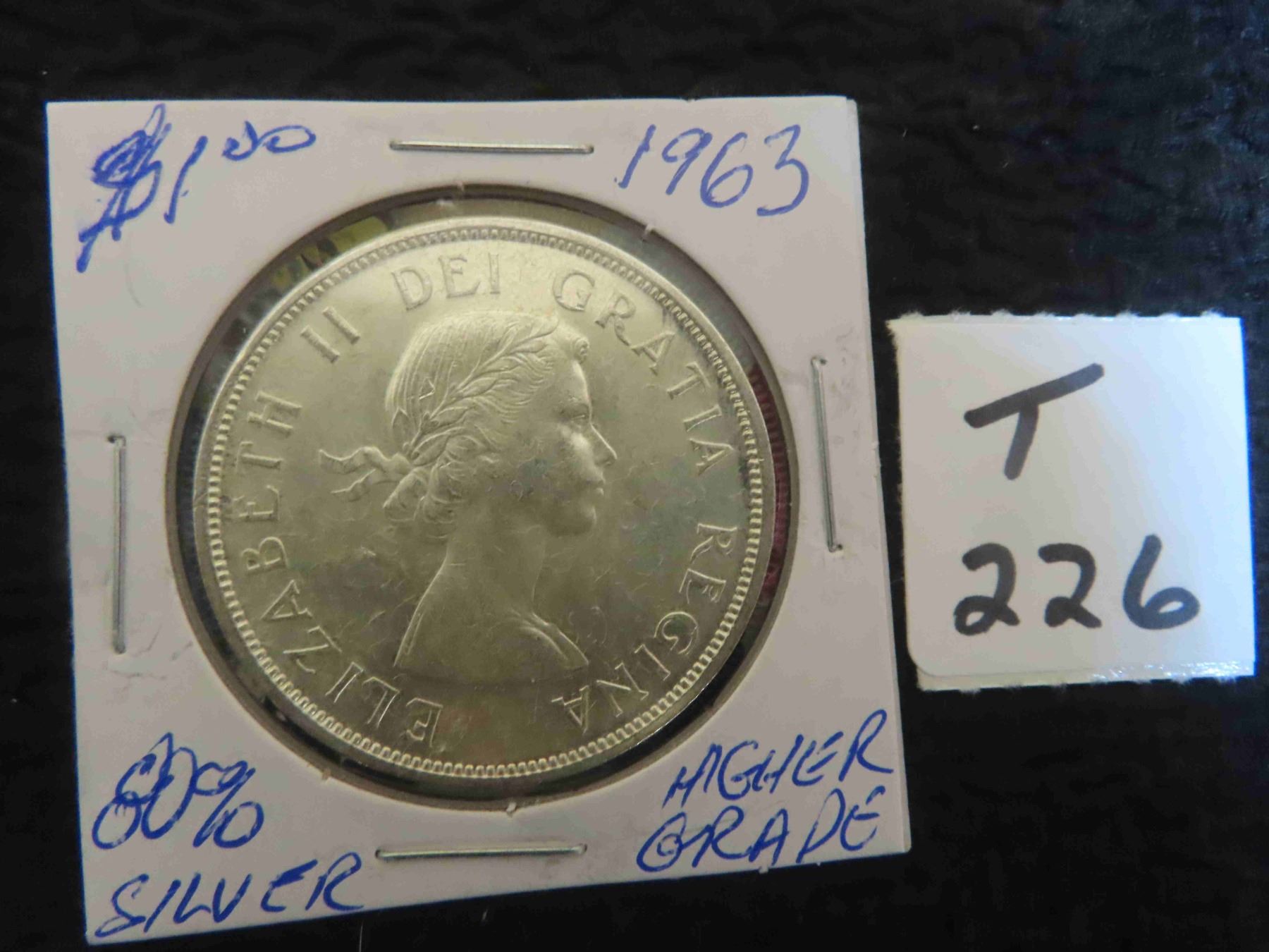 One 1963 Canadian 80% Canadian dollar coin, uncirculated, ungraded, very nice coin
