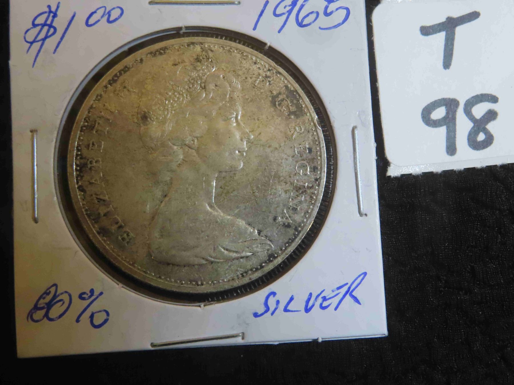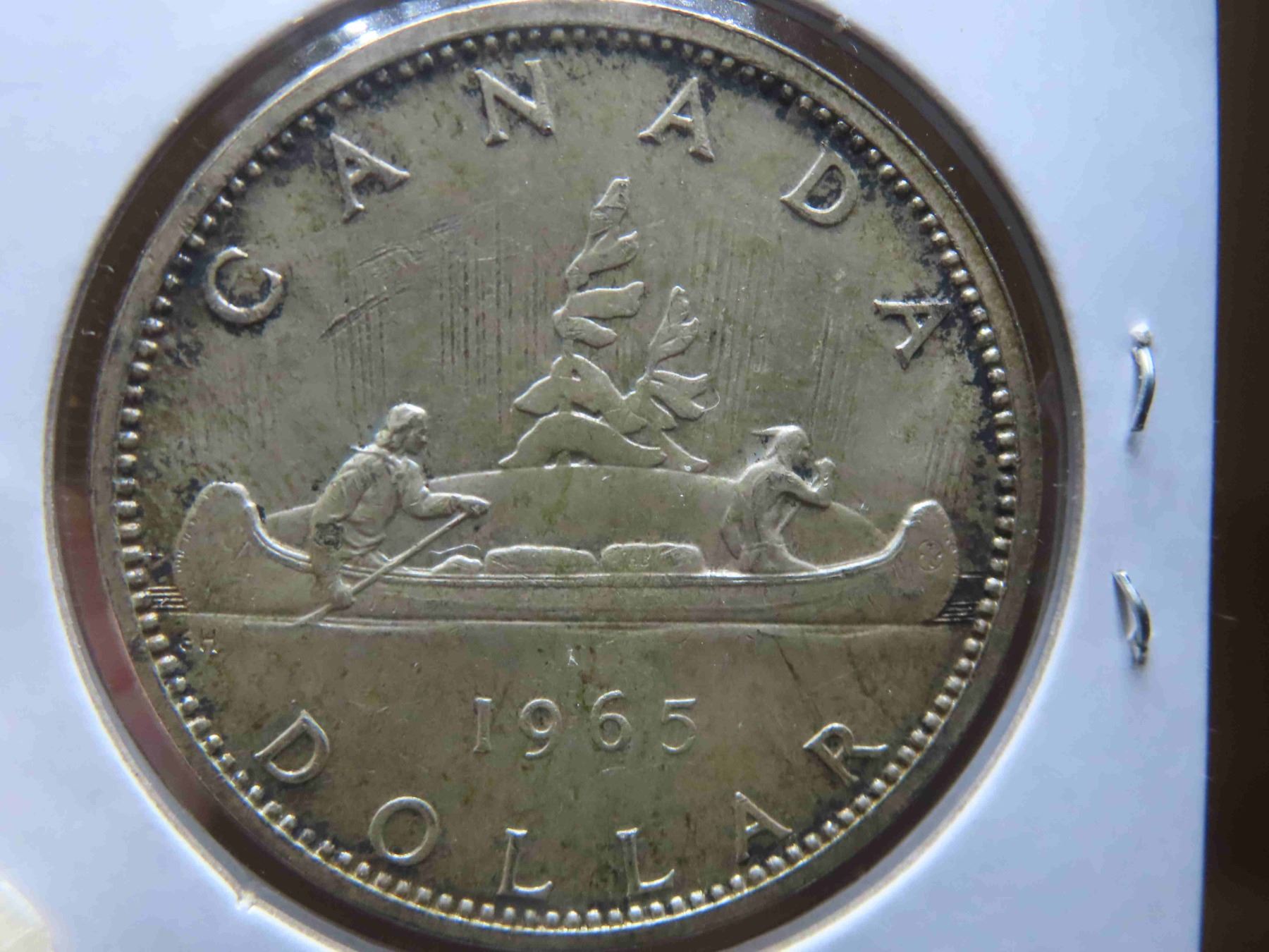 One 1965 Canadian Dollar coin, 80% silver, uncirculated, ungraded