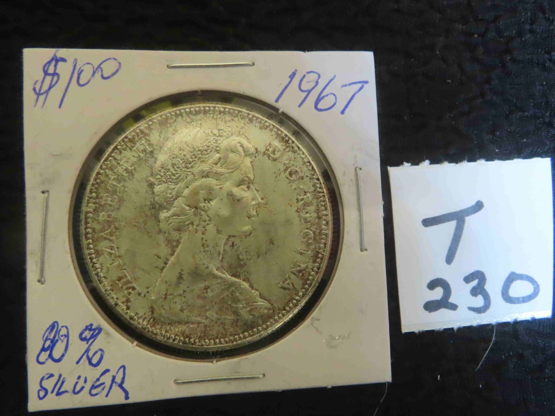 One 1967 Canadian 80% Canadian dollar coin, uncirculated, ungraded,