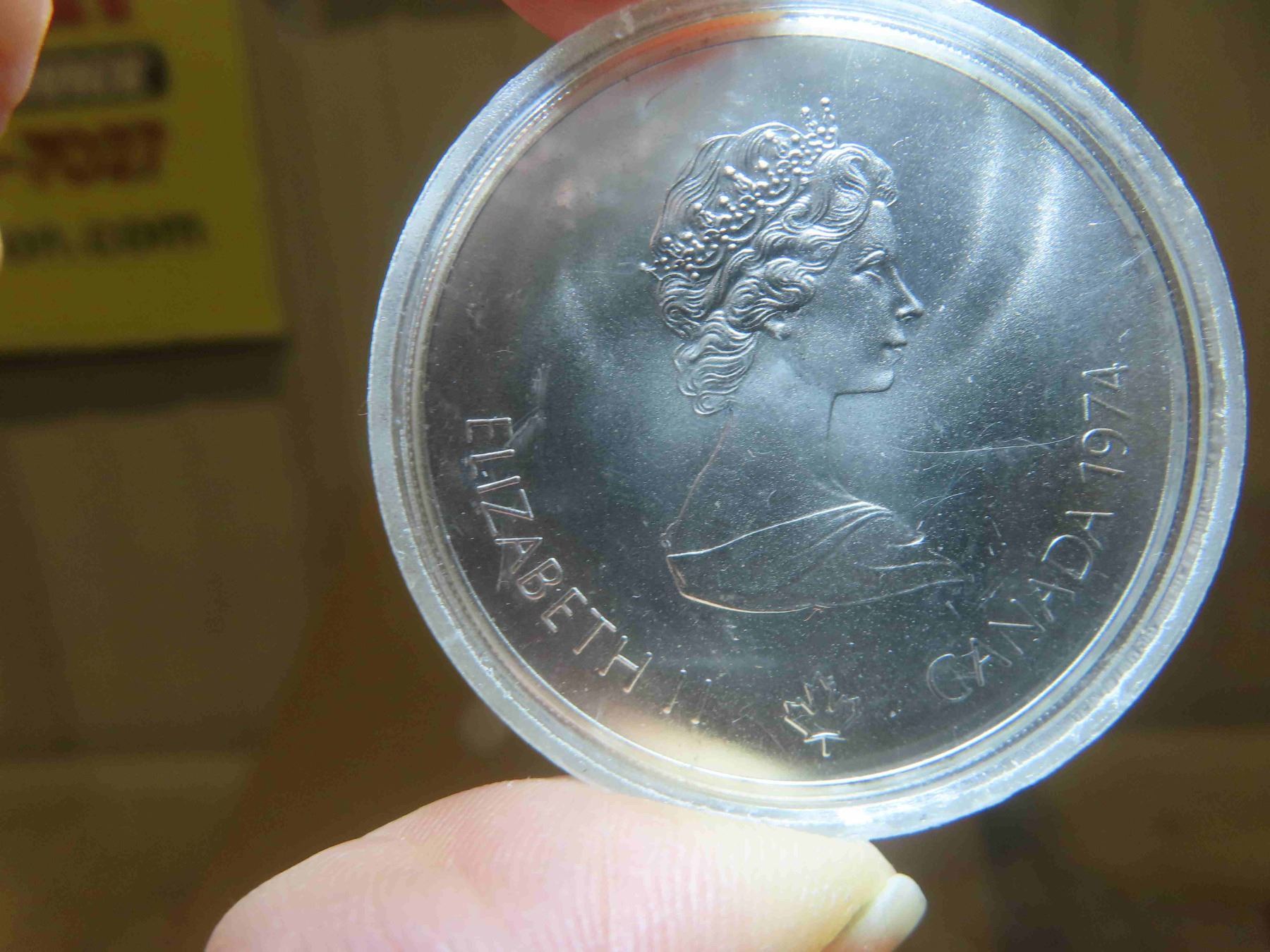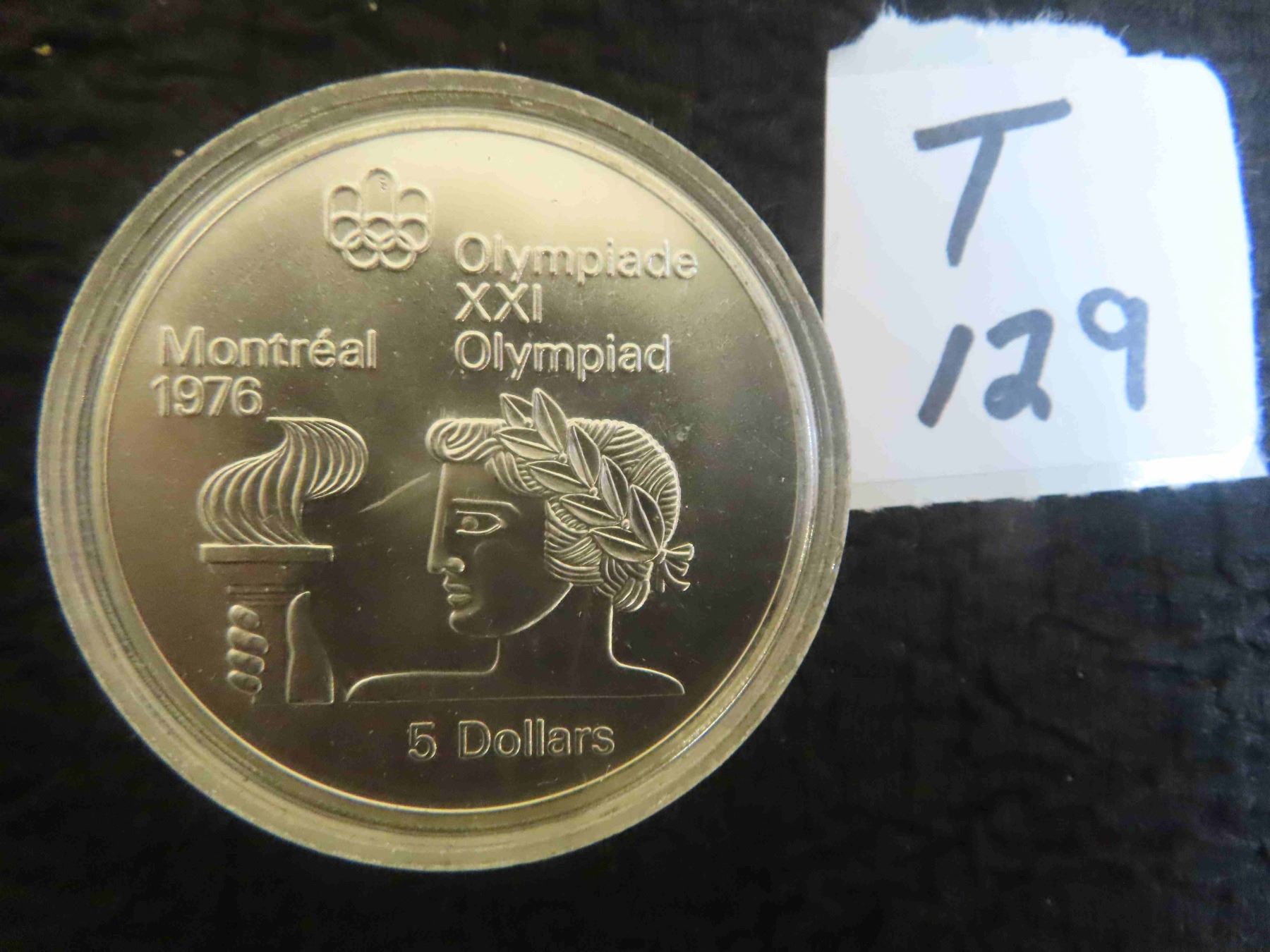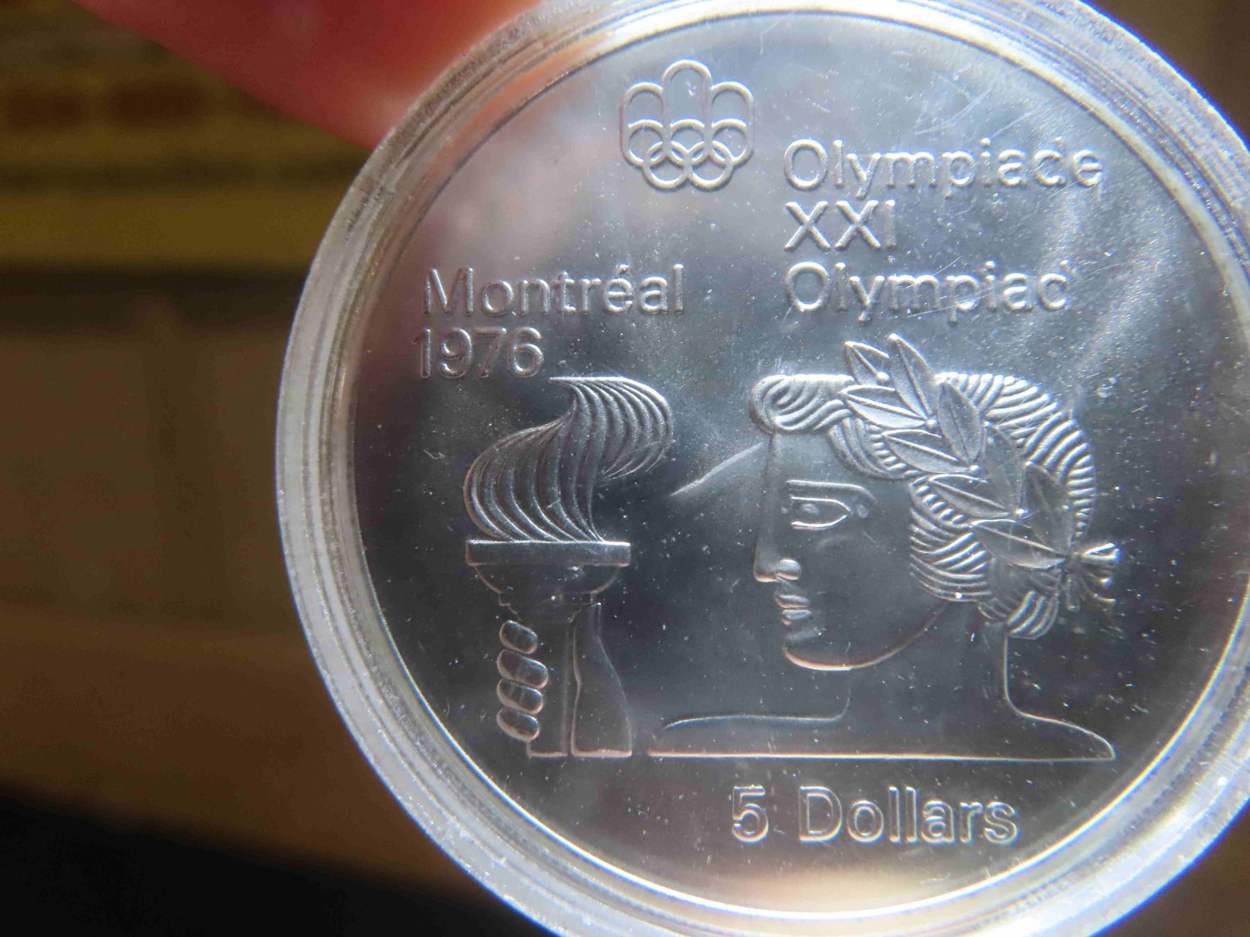 One 1976 $5 Montreal Olympic Silver bullion coin, (Olympic torch) ( 0.723 troy ounces of pure silver ) untouched proof, sealed in capsule