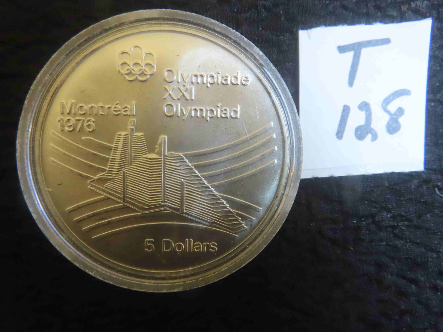 One 1976 $5 Montreal Olympic Silver bullion coin, (torch steps) ( 0.723 troy ounces of pure silver ) untouched proof, sealed in capsule