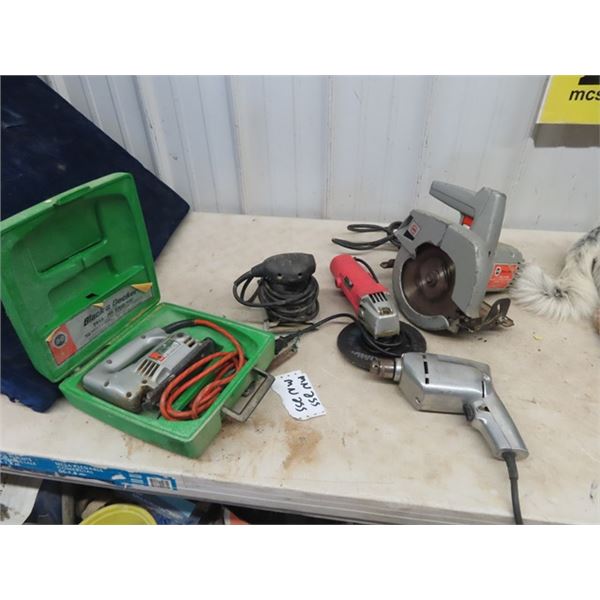 255 - (MN) 5 Power Tools, Circ Saw, Angle Grinder, Sander, Jig Saw, & DrillMcSherry Auction Service Ltd.