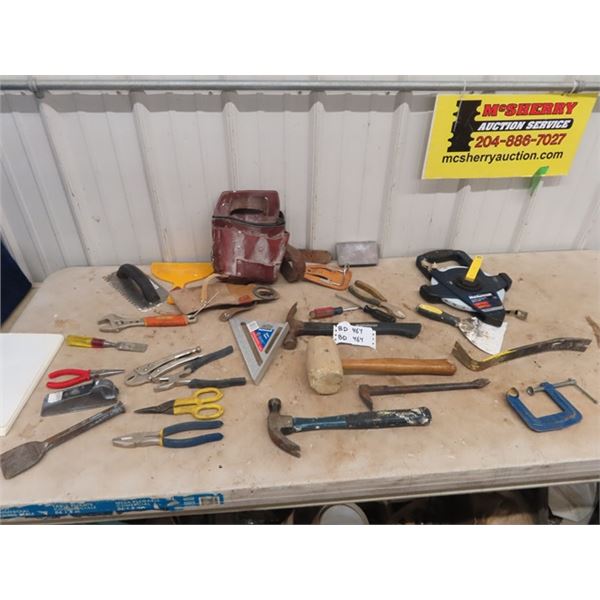 464 - (BD)Various Tools, Hammer, Tape Measure, Vice Grip, Crescent Wrenches, Tool Belt, Cutters PlusMcSherry Auction Service Ltd.
