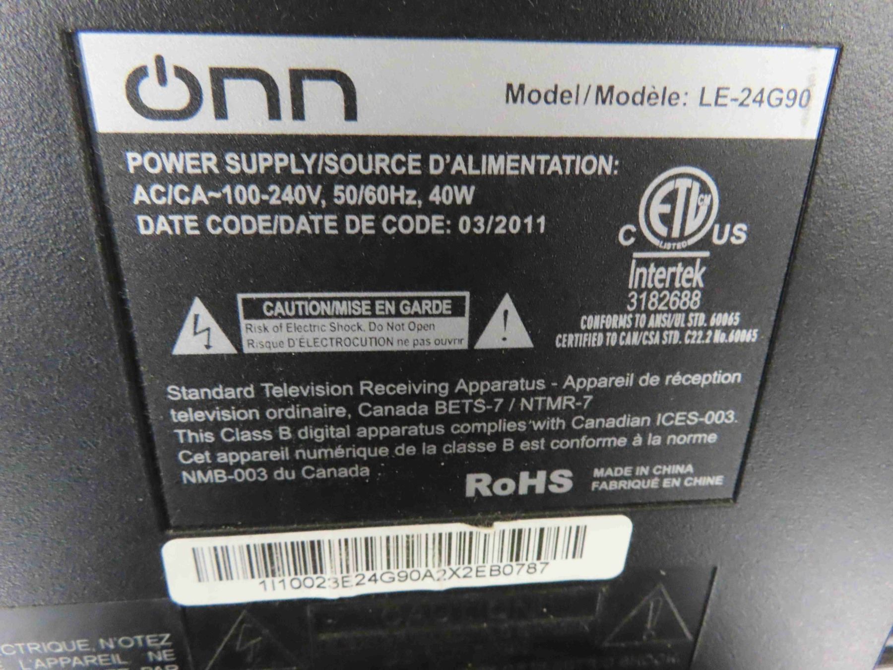 Onn Model LE-24G90 TV No Stand