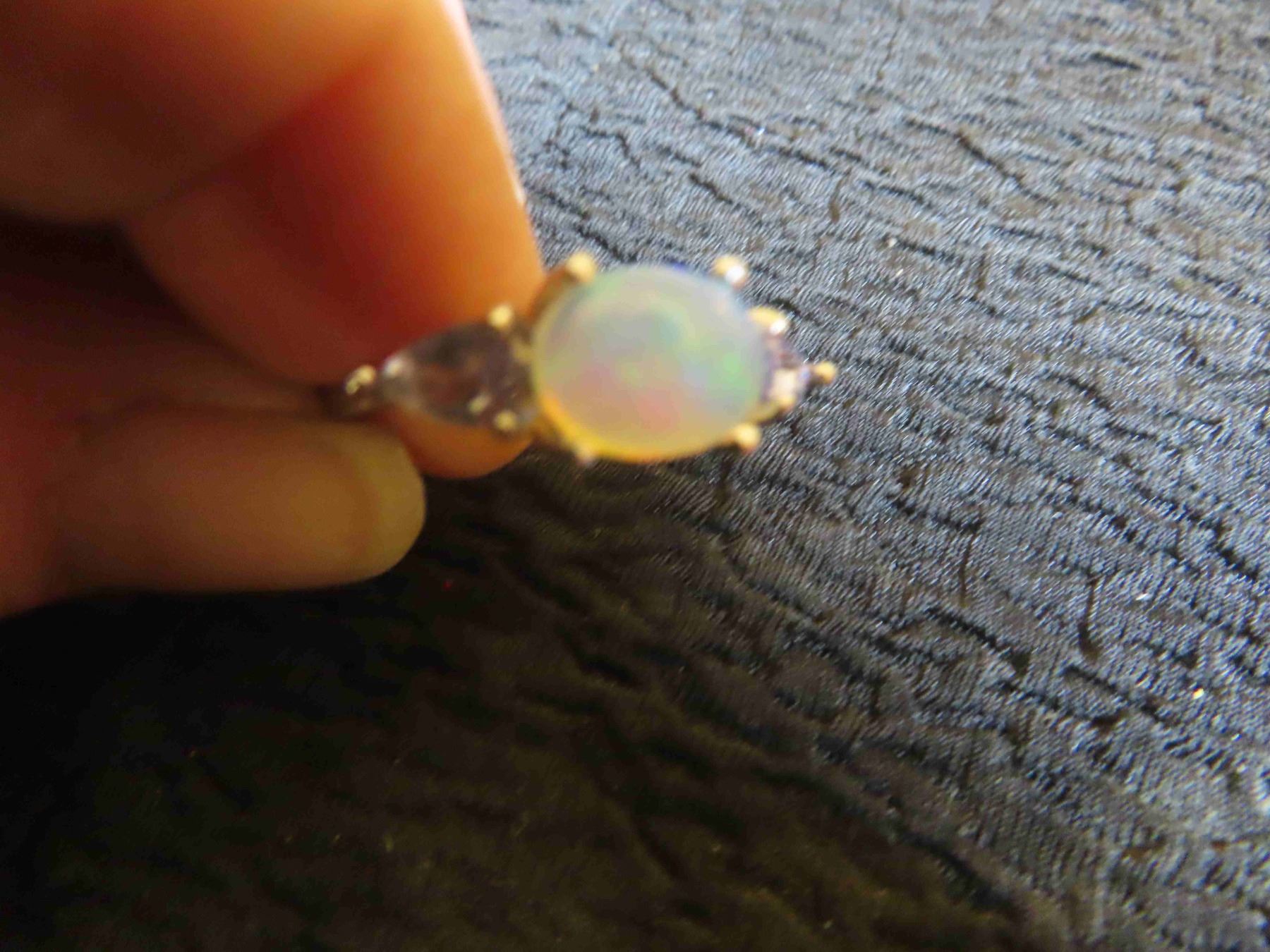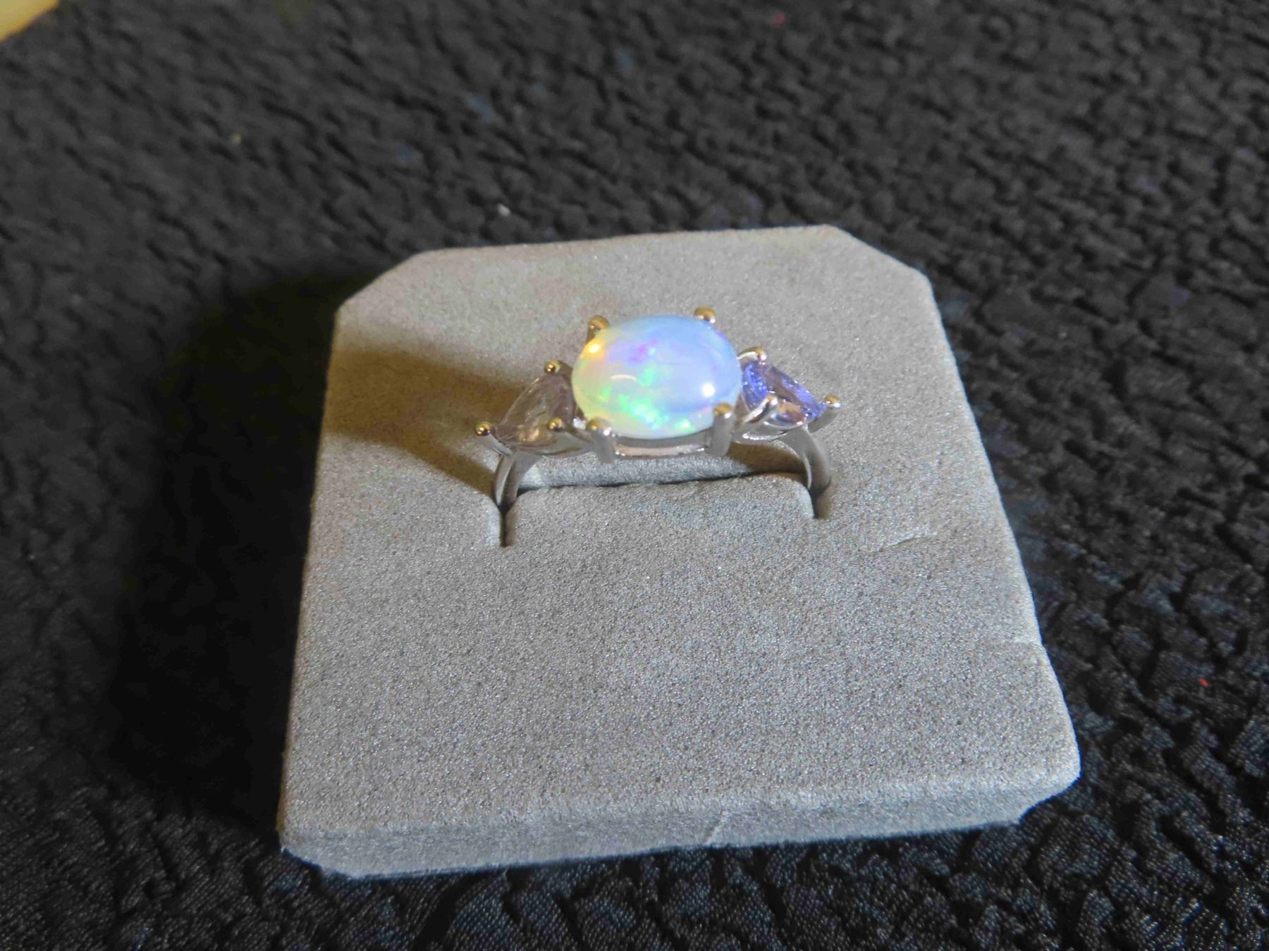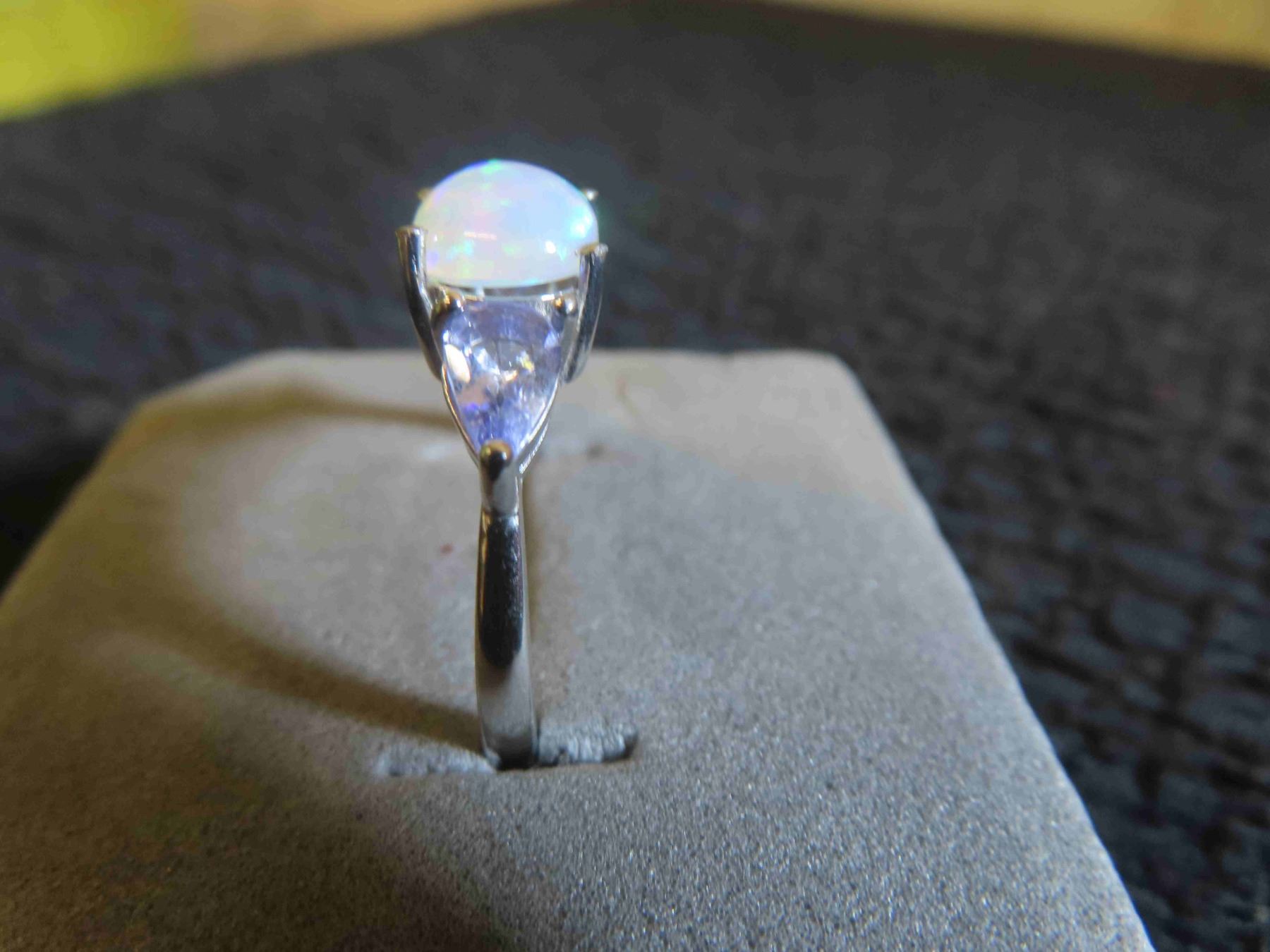 Opal 9x7 mm + Tanzanite 14k Gold Plated Sterling Silver 2.4 Grams - Sz 9