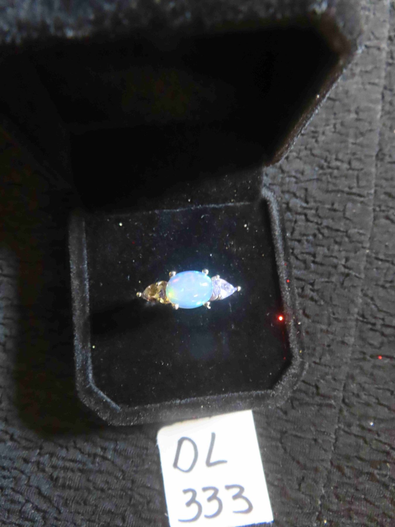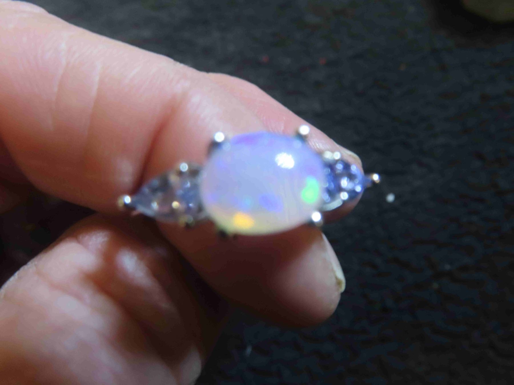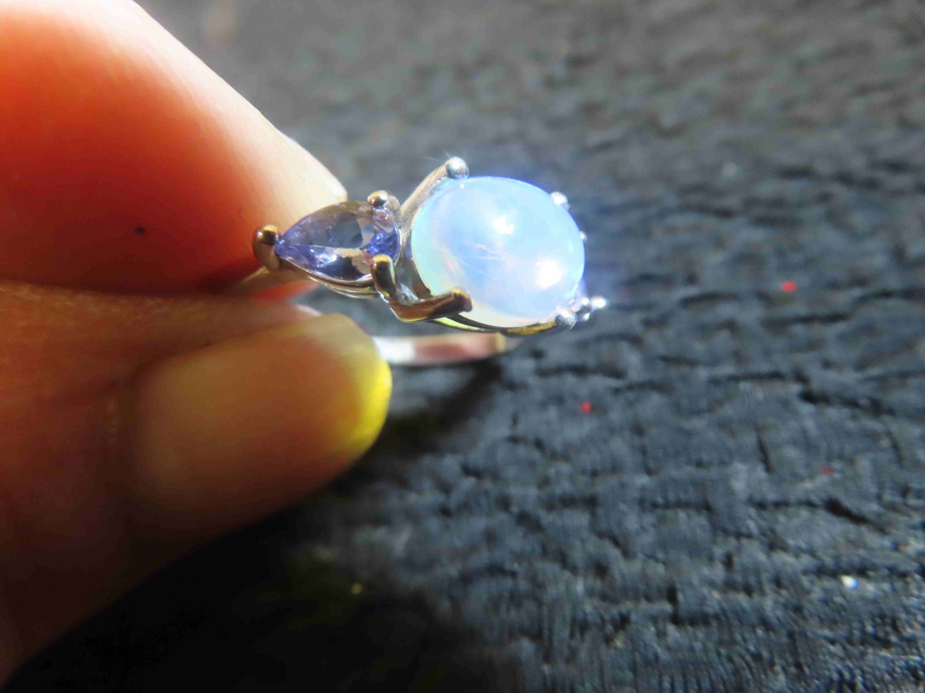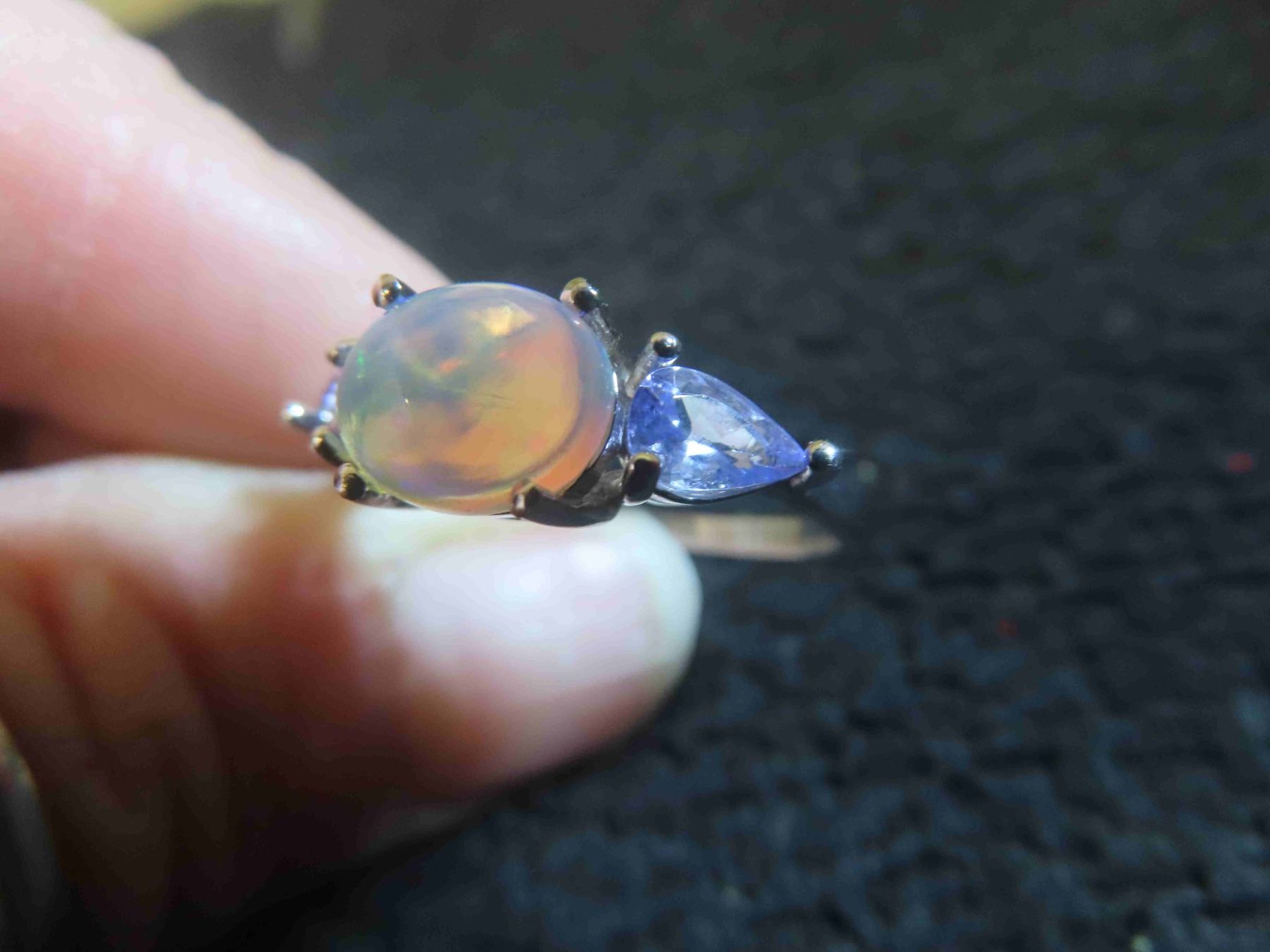Opal 9x7 mm + Tanzanite 14k Gold Plated Sterling Silver 2.4 Grams - Sz 9